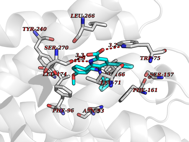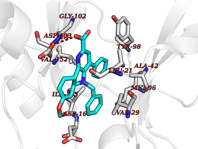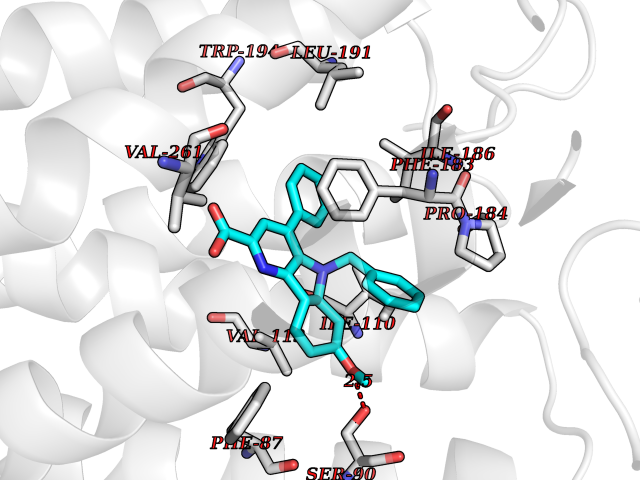 | Target general information Gen name GPBAR1 Organism Homo sapiens (Human) Uniprot ID TTD ID Synonyms hGPCR19; hBG37; TGR5; Membrane-type receptor for bile acids; M-BAR; G-protein coupled receptor GPCR19; BG37 Protein family G-protein coupled receptor 1 family Biochemical class GPCR rhodopsin Function Bile acid-binding induces its internalization, activation of extracellular signal-regulated kinase and intracellular cAMP production. May be involved in the suppression of macrophage functions by bile acids. Receptor for bile acid. Related diseases Dystonia 34, myoclonic (DYT34) [MIM:619724]: A form of dystonia, a disorder defined by the presence of sustained involuntary muscle contraction, often leading to abnormal postures. DYT34 is an autosomal dominant form characterized by childhood-onset dystonia predominantly affecting hands and neck, with a fast tremor with superimposed myoclonus and, in some individuals, subtle cerebellar signs. {ECO:0000269|PubMed:32212350}. The disease may be caused by variants affecting the gene represented in this entry.; DISEASE: Neurodevelopmental disorder with or without variable movement or behavioral abnormalities (NEDMAB) [MIM:619725]: An autosomal dominant disorder characterized by motor and language developmental delay, intellectual disability often associated with early-onset movement disorders comprising cerebellar ataxia and/or extrapyramidal symptoms. Other variable features include autism spectrum disorder or autistic features and epilepsy. {ECO:0000269|PubMed:33242881}. The disease is caused by variants affecting the gene represented in this entry. Drugs (DrugBank ID) DB06777; DB02659; DB03619 Interacts with P38646 EC number NA Uniprot keywords 3D-structure; Cell membrane; Disulfide bond; G-protein coupled receptor; Glycoprotein; Membrane; Proteomics identification; Receptor; Reference proteome; Transducer; Transmembrane; Transmembrane helix Protein physicochemical properties Chain ID R Molecular weight (Da) 29418.5 Length 273 Aromaticity 0.1 Instability index 40.15 Isoelectric point 9.83 Charge (pH=7) 9.97 3D Binding mode Sequence LSLALASLIITANLLLALGIAWDRRLRSPPAGCFFLSLLLAGLLTGLALPTLPGLWNQSRRGYWSCLLVYLAPNFSFLSLLANLLLVHGERYMAVLRPLQPPGSIRLALLLTWAGPLLFASLPALGWNHWTPGANCSSQAIFPAPYLYLEVYGLLLPAVGAAAFLSVRVLATAHRQLQDICRLERAVCRDEPSALARALTWRQARAQAGAMLLFGLCWGPYVATLLLSVLAYEQRPPLGPGTLLSLLSLGSASAAAVPVAMGLGDQRYTAPWR Hydrogen bonds contact Hydrophobic contact | ||||