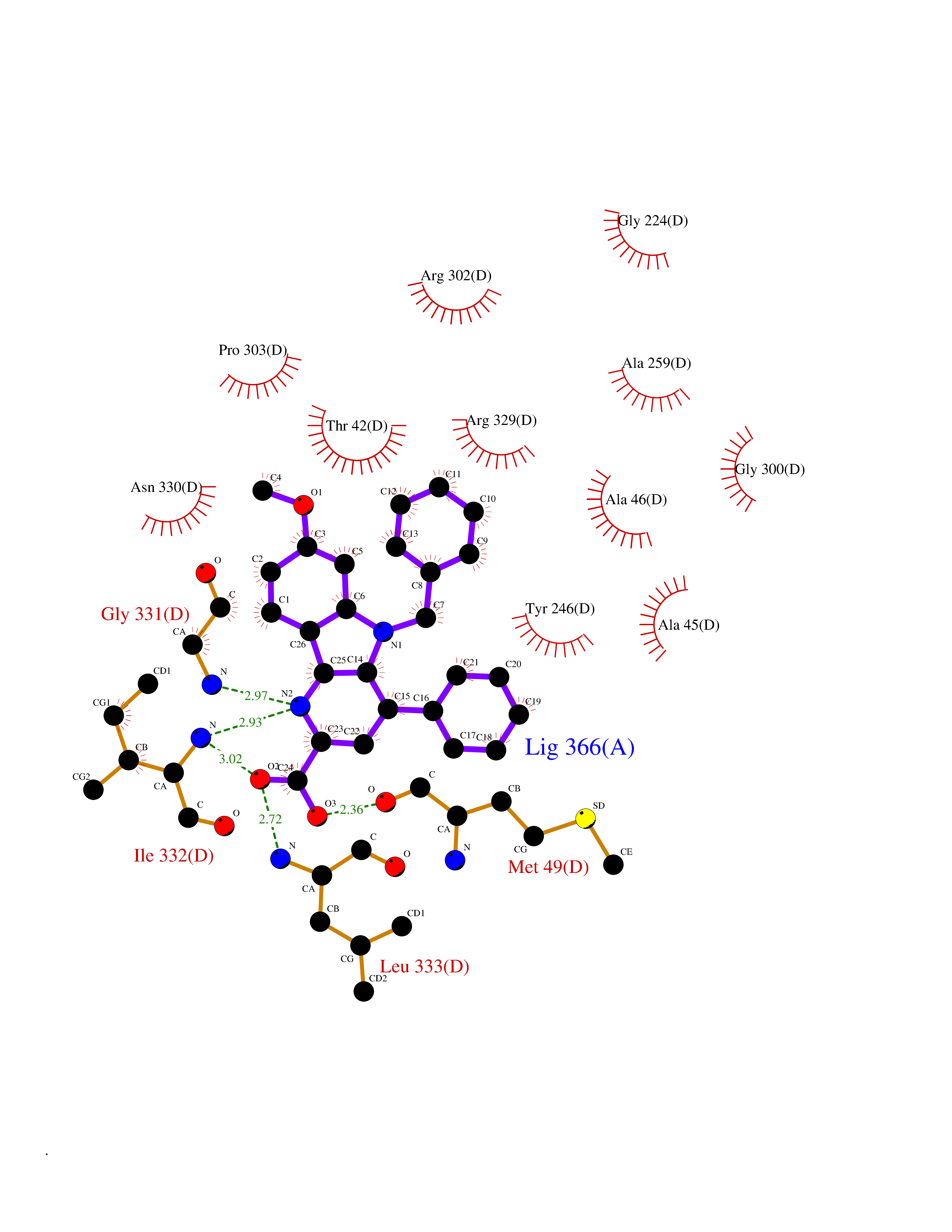 | Target general information Gen name MMP10 Organism Homo sapiens (Human) Uniprot ID TTD ID Synonyms Transin-2; Stromelysin-2; STMY2; SL-2 Protein family Peptidase M10A family Biochemical class Peptidase Function Activates procollagenase. Can degrade fibronectin, gelatins of type I, III, IV, and V; weakly collagens III, IV, and V. Related diseases Orthostatic hypotension 1 (ORTHYP1) [MIM:223360]: A form of orthostatic hypotension due to congenital dopamine beta-hydroxylase deficiency. Orthostatic hypotension, also known as postural hypotension, is a finding defined as a 20-mm Hg decrease in systolic pressure or a 10-mm Hg decrease in diastolic pressure occurring 3 minutes after a person has risen from supine to standing. Symptoms include dizziness, blurred vision, and sometimes syncope. ORTHYP1 is an autosomal recessive condition apparent from infancy or early childhood and characterized by low plasma and urinary levels of norepinephrine and epinephrine, and episodic hypoglycemia. {ECO:0000269|PubMed:11857564}. The disease is caused by variants affecting the gene represented in this entry. Drugs (DrugBank ID) DB00786; DB08271 Interacts with NA EC number EC 3.4.24.22 Uniprot keywords 3D-structure; Calcium; Collagen degradation; Disulfide bond; Extracellular matrix; Hydrolase; Metal-binding; Metalloprotease; Protease; Proteomics identification; Reference proteome; Repeat; Secreted; Signal; Zinc; Zymogen Protein physicochemical properties Chain ID A,B,C Molecular weight (Da) 52822 Length 471 Aromaticity 0.12 Instability index 21.13 Isoelectric point 4.83 Charge (pH=7) -35.32 3D Binding mode Sequence MPKWRKTHLTYRIVNYTPDLPRDAVDSAIEKALKVWEEVTPLTFSRLYEGEADIMISFAVKEHGDNYSFDGPGHSLAHAYPPGPGLYGDIHFDDDEKWTEDASGTNLFLVAAHELGHSLGLFHSANTEALMYPLYNSLAQFRLSQDDVNGIQSLYGPKWRKTHLTYRIVNYTPDLPRDAVDSAIEKALKVWEEVTPLTFSRLYEGEADIMISFAVKEHGDNYSFDGPGHSLAHAYPPGPGLYGDIHFDDDEKWTEDASGTNLFLVAAHELGHSLGLFHSANTEALMYPLYNSLAQFRLSQDDVNGIQSLYGGMPKWRKTHLTYRIVNYTPDLPRDAVDSAIEKALKVWEEVTPLTFSRLYEGEADIMISFAVKEHGDNYSFDGPGHSLAHAYPPGPGLYGDIHFDDDEKWTEDASGTNLFLVAAHELGHSLGLFHSANTEALMYPLYNSFTELAQFRLSQDDVNGIQSLYG Hydrogen bonds contact Hydrophobic contact | ||||