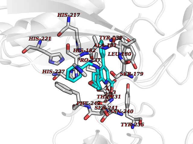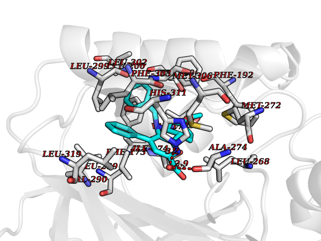 | Target general information Gen name TH Organism Homo sapiens (Human) Uniprot ID TTD ID Synonyms Tyrosine 3-hydroxylase; TH Protein family Biopterin-dependent aromatic amino acid hydroxylase family Biochemical class Paired donor oxygen oxidoreductase Function Plays an important role in the physiology of adrenergic neurones. Related diseases Segawa syndrome autosomal recessive (ARSEGS) [MIM:605407]: A form of DOPA-responsive dystonia presenting in infancy or early childhood. Dystonia is defined by the presence of sustained involuntary muscle contractions, often leading to abnormal postures. Some cases present with parkinsonian symptoms in infancy. Unlike all other forms of dystonia, it is an eminently treatable condition, due to a favorable response to L-DOPA. {ECO:0000269|PubMed:10585338, ECO:0000269|PubMed:11196107, ECO:0000269|PubMed:11246459, ECO:0000269|PubMed:15505183, ECO:0000269|PubMed:15747353, ECO:0000269|PubMed:16049992, ECO:0000269|PubMed:17696123, ECO:0000269|PubMed:18058633, ECO:0000269|PubMed:18554280, ECO:0000269|PubMed:19491146, ECO:0000269|PubMed:20056467, ECO:0000269|PubMed:20430833, ECO:0000269|PubMed:21940685, ECO:0000269|PubMed:22264700, ECO:0000269|PubMed:22815559, ECO:0000269|PubMed:23762320, ECO:0000269|PubMed:23939262, ECO:0000269|PubMed:24753243, ECO:0000269|PubMed:7814018, ECO:0000269|PubMed:8528210, ECO:0000269|PubMed:8817341, ECO:0000269|PubMed:9613851, ECO:0000269|PubMed:9703425}. The disease is caused by variants affecting the gene represented in this entry.; DISEASE: May play a role in the pathogenesis of Parkinson disease (PD). A genome-wide copy number variation analysis has identified a 34 kilobase deletion over the TH gene in a PD patient but not in any controls. {ECO:0000269|PubMed:20809526}. Drugs (DrugBank ID) DB03552; DB04400; DB00765; DB00120; DB00360; DB00135 Interacts with P29762; P61978-2; Q99750; P08651-5; O75928-2; Q9UHX1-2; P0DJD3-2; P07101-3; Q9UJ04; C9J7I0; Q5MCW4 EC number EC 1.14.16.2 Uniprot keywords 3D-structure; Alternative splicing; Catecholamine biosynthesis; Cell projection; Cytoplasm; Cytoplasmic vesicle; Disease variant; Dystonia; Iron; Metal-binding; Monooxygenase; Neurotransmitter biosynthesis; Nucleus; Oxidoreductase; Parkinson disease; Parkinsonism; Phosphoprotein; Proteomics identification; Reference proteome; Synapse Protein physicochemical properties Chain ID A,B,C,D Molecular weight (Da) 34997 Length 306 Aromaticity 0.12 Instability index 42.59 Isoelectric point 5.32 Charge (pH=7) -12.31 3D Binding mode Sequence VPWFPRKVSELDKCHHLVTKFDPDLDLDHPGFSDQVYRQRRKLIAEIAFQYRHGDPIPRVEYTAEEIATWKEVYTTLKGLYATHACGEHLEAFALLERFSGYREDNIPQLEDVSRFLKERTGFQLRPVAGLLSARDFLASLAFRVFQCTQYIRHASSPMHSPEPDCCHELLGHVPMLADRTFAQFSQDIGLASLGASDEEIEKLSTLYWFTVEFGLCKQNGEVKAYGAGLLSSYGELLHCLSEEPEIRAFDPEAAAVQPYQDQTYQSVYFVSESFSDAKDKLRSYASRIQRPFSVKFDPYTLAIDV Hydrogen bonds contact Hydrophobic contact | ||||