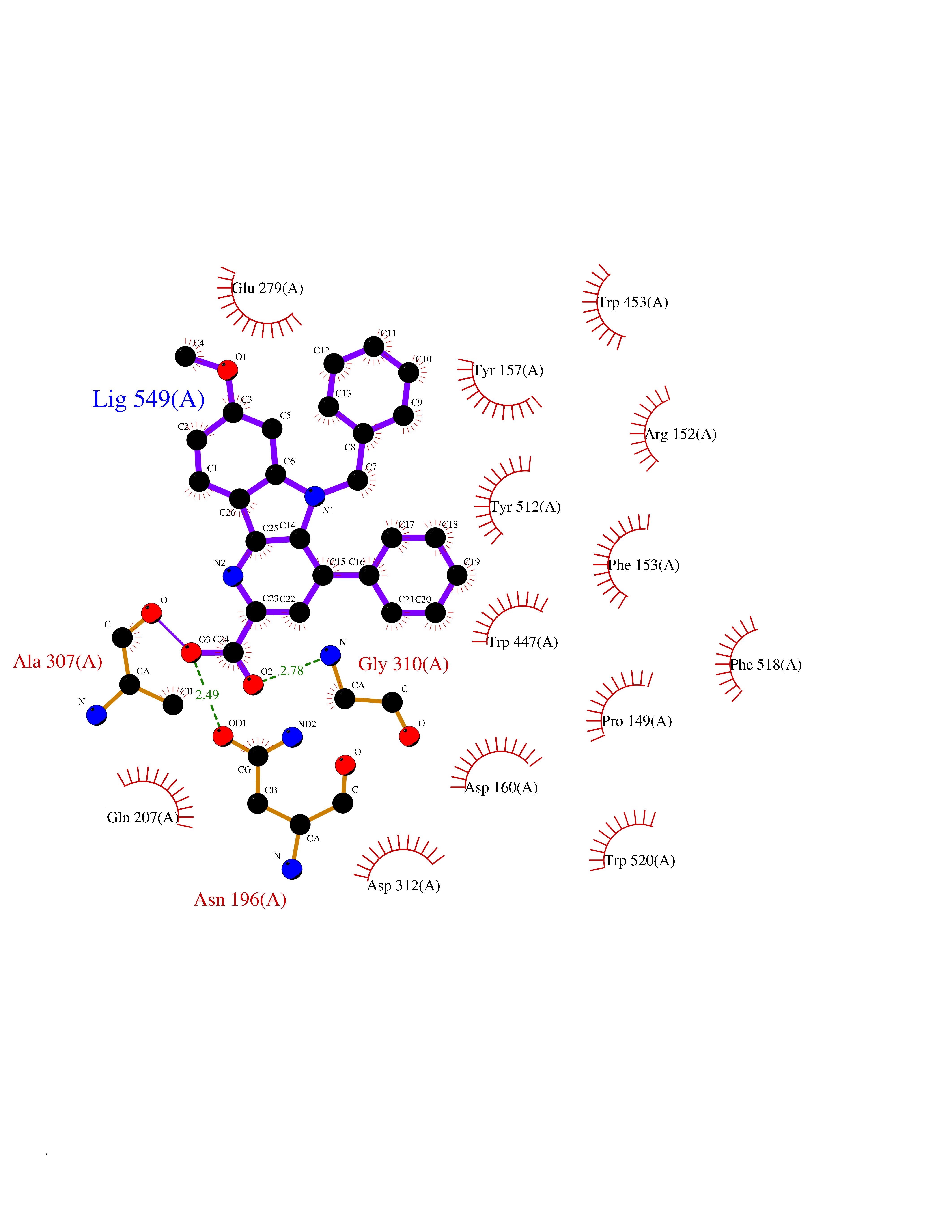 | Target general information Gen name KDM1A Organism Homo sapiens (Human) Uniprot ID TTD ID Synonyms Lysine-specific histone demethylase 1A; LSD1; KIAA0601; KDM1; Flavin-containing amine oxidase domain-containing protein 2; BRAF35-HDAC complex protein BHC110; AOF2 Protein family Flavin monoamine oxidase family Biochemical class CH-NH(2) donor oxidoreductase Function Histone demethylase that can demethylate both 'Lys-4' (H3K4me) and 'Lys-9' (H3K9me) of histone H3, thereby acting as a coactivator or a corepressor, depending on the context. Acts by oxidizing the substrate by FAD to generate the corresponding imine that is subsequently hydrolyzed. Acts as a corepressor by mediating demethylation of H3K4me, a specific tag for epigenetic transcriptional activation. Demethylates both mono- (H3K4me1) and di-methylated (H3K4me2) H3K4me. May play a role in the repression of neuronal genes. Alone, it is unable to demethylate H3K4me on nucleosomes and requires the presence of RCOR1/CoREST to achieve such activity. Also acts as a coactivator of androgen receptor (ANDR)-dependent transcription, by being recruited to ANDR target genes and mediating demethylation of H3K9me, a specific tag for epigenetic transcriptional repression. The presence of PRKCB in ANDR-containing complexes, which mediates phosphorylation of 'Thr-6' of histone H3 (H3T6ph), a specific tag that prevents demethylation H3K4me, prevents H3K4me demethylase activity of KDM1A. Demethylates di-methylated 'Lys-370' of p53/TP53 which prevents interaction of p53/TP53 with TP53BP1 and represses p53/TP53-mediated transcriptional activation. Demethylates and stabilizes the DNA methylase DNMT1. Required for gastrulation during embryogenesis. Component of a RCOR/GFI/KDM1A/HDAC complex that suppresses, via histone deacetylase (HDAC) recruitment, a number of genes implicated in multilineage blood cell development. Effector of SNAI1-mediated transcription repression of E-cadherin/CDH1, CDN7 and KRT8. Required for the maintenance of the silenced state of the SNAI1 target genes E-cadherin/CDH1 and CDN7. Related diseases Cleft palate, psychomotor retardation, and distinctive facial features (CPRF) [MIM:616728]: A syndrome characterized by cleft palate, developmental delay, psychomotor retardation, and facial dysmorphic features including a prominent forehead, slightly arched eyebrows, elongated palpebral fissures, a wide nasal bridge, thin lips, and widely spaced teeth. Cleft palate is a congenital fissure of the soft and/or hard palate, due to faulty fusion. {ECO:0000269|PubMed:23020937, ECO:0000269|PubMed:24838796, ECO:0000269|PubMed:26656649}. The disease is caused by variants affecting the gene represented in this entry. Drugs (DrugBank ID) DB16446 Interacts with Q9BYF1; Q99996; Q86SG2; Q13490; Q6P047; Q8TC20-4; Q9BWT7; Q49A88-3; Q99459; Q9BXL8; Q86XR8-3; Q8NHQ1; Q8TAP6; Q12873; P38432; Q96EY1; P26378-2; Q9UPT5-1; Q3B820; Q9H8W3; Q8IZU1; Q9BQS8; O95995; Q96CN9; Q08379; Q9NYA3; Q8NEC7; Q9BX10; Q16695; Q96CS2; O15379; Q9UBX0; Q9NSC5; Q16891; O75564-2; O60341; Q9BVG8-5; Q8TBB5; P19012; Q15323; Q14525; Q92764; Q6A163; Q6A162; Q96JB6; Q9Y250; O95983; P01106; Q3BBV0; Q7Z6G3-2; P35240; Q16236; P46531; Q13133; Q9Y466; Q96F24; A5D8V7; Q8IZS5; Q9BYU1; Q8IZL8; Q99471; Q5T6S3; Q03181; P62191; Q9NS23; P50749; Q86WH2; Q06330; Q9UKL0; Q8IZ40; Q9P2K3-2; Q96P16-3; Q8N6K7; Q9UGK8; Q13435; O15198; O95863; Q96H20; Q8N0Z3; Q96BD6; Q8N4C7; Q8N6V9; Q9UBB9; Q08117-2; Q2M3C6; P45379-11; Q05BL1; Q9BUZ4; Q5W5X9-3; Q8TF42; Q9H9H4; Q9Y3C0; O96006; O15060; Q92618; O14646; Q96KQ7; Q96KQ7-1; P05771-1; Q9UKL0; P17542; P04637; P22091 EC number EC 1.-.-.- Uniprot keywords 3D-structure; Acetylation; Alternative splicing; Chromatin regulator; Chromosome; Coiled coil; Developmental protein; Direct protein sequencing; Disease variant; FAD; Flavoprotein; Isopeptide bond; Nucleus; Oxidoreductase; Phosphoprotein; Proteomics identification; Reference proteome; Repressor; Transcription; Transcription regulation; Ubl conjugation Protein physicochemical properties Chain ID A Molecular weight (Da) 72462.2 Length 651 Aromaticity 0.08 Instability index 32.07 Isoelectric point 7.01 Charge (pH=7) 0.05 3D Binding mode Sequence VEGAAFQSRLPHDRMTSQEAACFPDIISGPQQTQKVFLFIRNRTLQLWLDNPKIQLTFEATLQQLEAPYNSDTVLVHRVHSYLERHGLINFGIYKRIKPLPTKKTGKVIIIGSGVSGLAAARQLQSFGMDVTLLEARDRVGGRVATFRKGNYVADLGAMVVTGLGGNPMMELAKIKQKCPLYEANGQAVPKEKDEMVEQEFNRLLEATSYLSHQLDFNVLNNKPVSLGQALEVVIQLQEKHVKDEQIEHWKKIVKTQEELKELLNKMVNLKEKIKELHQQYKEASEVKPPRDITAEFLVKSKHRDLTALCKEYDELAETQGKLEEKLQELEANPPSDVYLSSRDRQILDWHFANLEFANATPLSTLSLKHWDQDDDFEFTGSHLTVRNGYSCVPVALAEGLDIKLNTAVRQVRYTASGCEVIAVNTRSTSQTFIYKCDAVLCTLPLGVLKQQPPAVQFVPPLPEWKTSAVQRMGFGNLNKVVLCFDRVFWDPSVNLFGHVGSTTASRGELFLFWNLYKAPILLALVAGEAAGIMENISDDVIVGRCLAILKGIFGSSAVPQPKETVVSRWRADPWARGSYSYVAAGSSGNDYDLMAQPITPGPSIPGAPQPIPRLFFAGEHTIRNYPATVHGALLSGLREAGRIADQFLGA Hydrogen bonds contact Hydrophobic contact | ||||