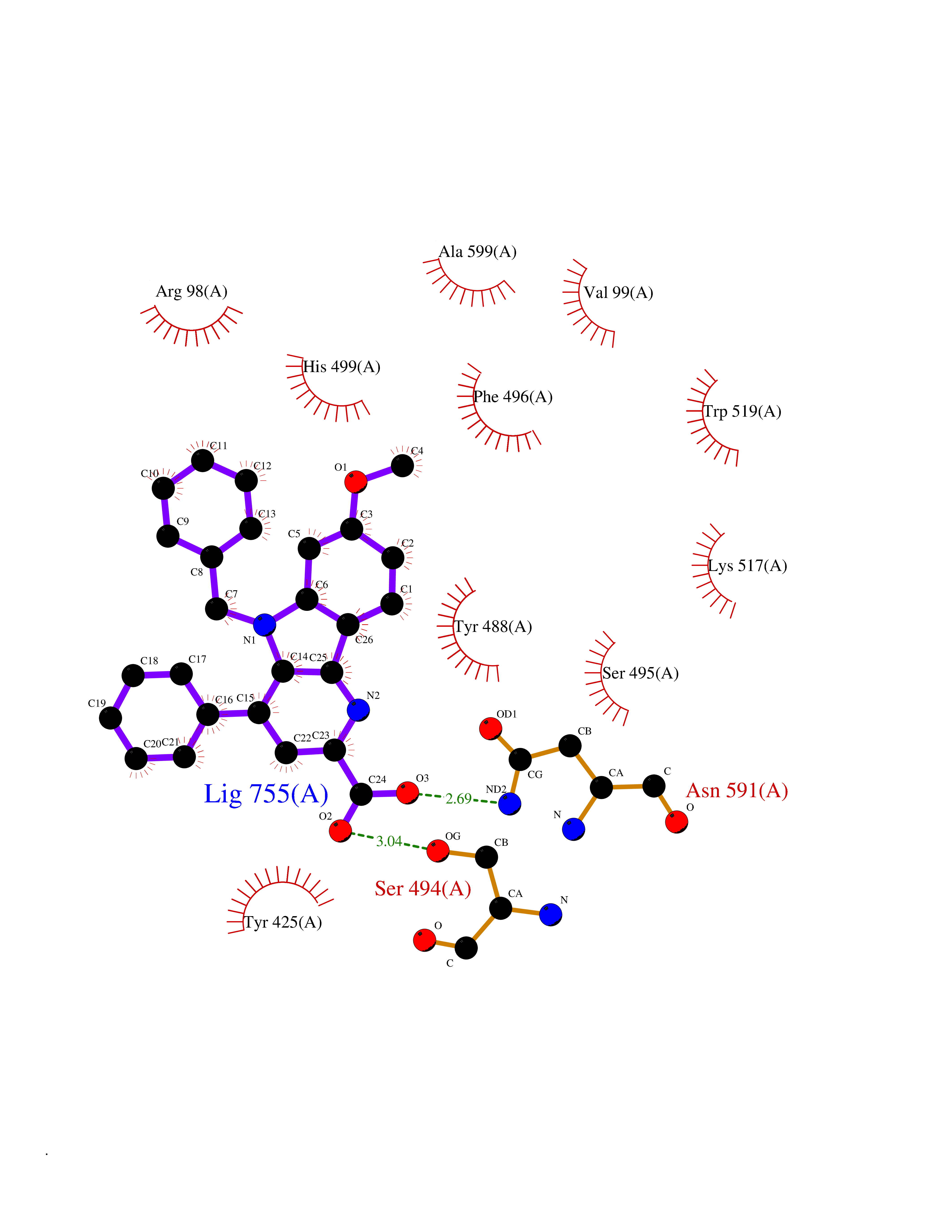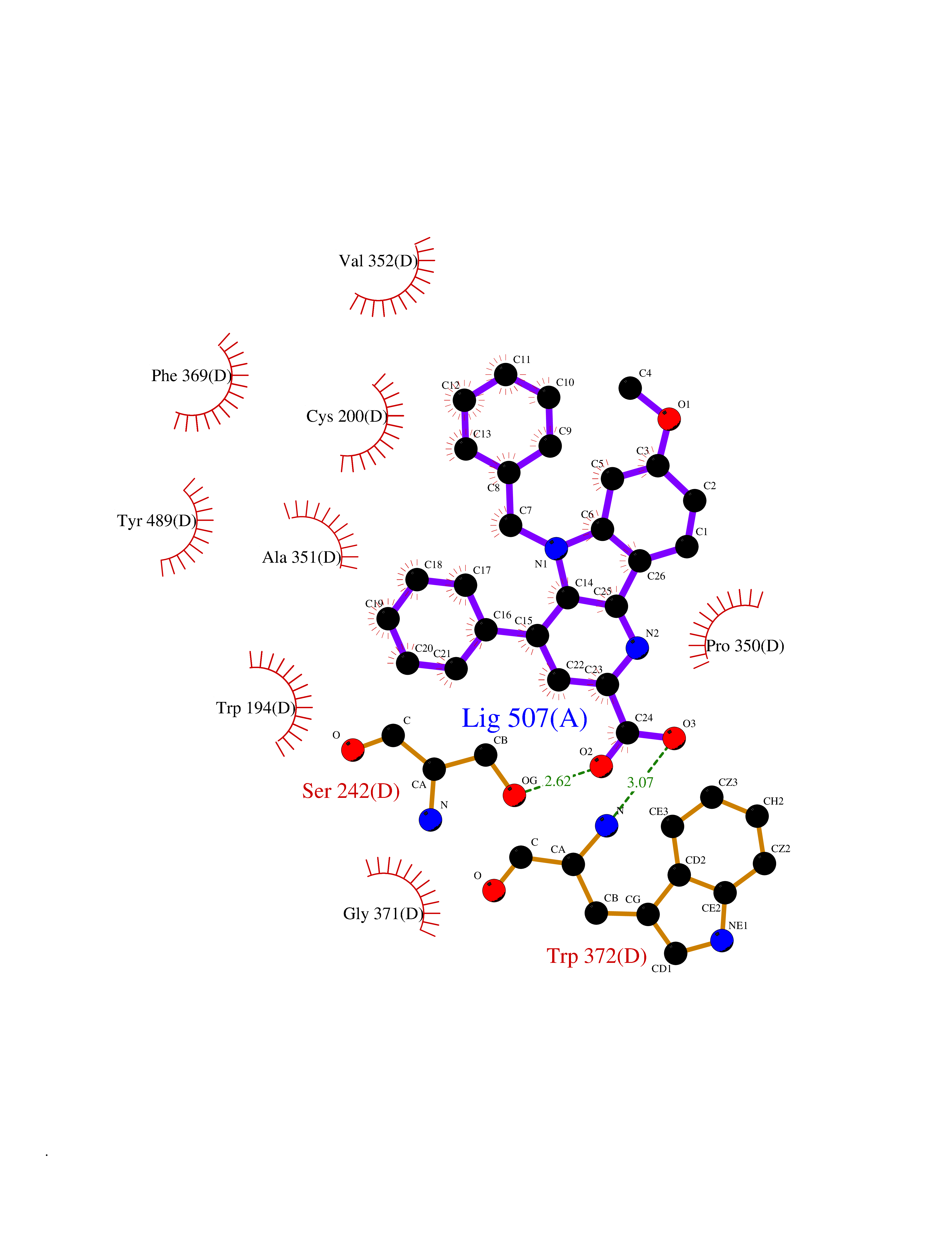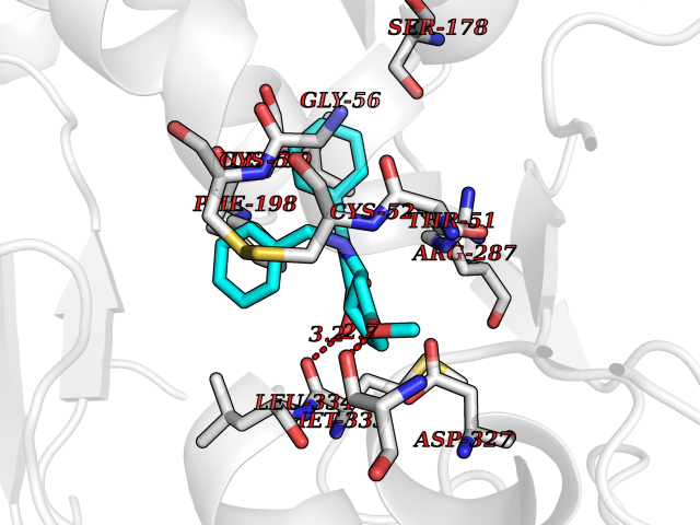 | Target general information Gen name NOS2 Organism Homo sapiens (Human) Uniprot ID TTD ID Synonyms iNOS; Peptidyl-cysteine S-nitrosylase NOS2; Nitric oxide synthase, inducible; NOS2A; NOS type II; Inducible NOS; Inducible NO synthase; Hepatocyte NOS; HEP-NOS Protein family NOS family Biochemical class Paired donor oxygen oxidoreductase Function Produces nitric oxide (NO) which is a messenger molecule with diverse functions throughout the body. In macrophages, NO mediates tumoricidal and bactericidal actions. Also has nitrosylase activity and mediates cysteine S-nitrosylation of cytoplasmic target proteins such PTGS2/COX2 (By similarity). As component of the iNOS-S100A8/9 transnitrosylase complex involved in the selective inflammatory stimulus-dependent S-nitrosylation of GAPDH on 'Cys-247' implicated in regulation of the GAIT complex activity and probably multiple targets including ANXA5, EZR, MSN and VIM. Involved in inflammation, enhances the synthesis of proinflammatory mediators such as IL6 and IL8. Related diseases Cerebellar ataxia, impaired intellectual development, and dysequilibrium syndrome 3 (CAMRQ3) [MIM:613227]: An autosomal recessive, congenital cerebellar ataxia associated with dysarthia, quadrupedal gait and intellectual disability. {ECO:0000269|PubMed:19461874}. The disease is caused by variants affecting the gene represented in this entry. Drugs (DrugBank ID) DB07003; DB07007; DB07011; DB07405; DB08750; DB01997; DB07029; DB07008; DB08214; DB07002; DB01835; DB06879; DB04534; DB03100; DB02207; DB00125; DB00155; DB01234; DB14649; DB11327; DB00997; DB07306; DB07388; DB05252; DB01381; DB03366; DB05214; DB04400; DB09237; DB00244; DB01110; DB01017; DB03144; DB01686; DB03449; DB06916; DB07318; DB07389; DB02044; DB02644; DB05383; DB02234; DB03953; DB02462; DB08814 Interacts with P04406 EC number EC 1.14.13.39 Uniprot keywords 3D-structure; Alternative splicing; Calcium; Calmodulin-binding; Cytoplasm; FAD; Flavoprotein; FMN; Heme; Iron; Metal-binding; NADP; Oxidoreductase; Phosphoprotein; Proteomics identification; Reference proteome; Ubl conjugation; Zinc Protein physicochemical properties Chain ID A,B,C,D Molecular weight (Da) 48633 Length 421 Aromaticity 0.12 Instability index 46.5 Isoelectric point 6.75 Charge (pH=7) -1.04 3D Binding mode Sequence RHVRIKNWGSGMTFQDTLHHKAKGILTCRSKSCLGSIMTPKSLTRGPRDKPTPPDELLPQAIEFVNQYYGSFKEAKIEEHLARVEAVTKEIETTGTYQLTGDELIFATKQAWRNAPRCIGRIQWSNLQVFDARSCSTAREMFEHICRHVRYSTNNGNIRSAITVFPQRSDGKHDFRVWNAQLIRYAGYQMPDGSIRGDPANVEFTQLCIDLGWKPKYGRFDVVPLVLQANGRDPELFEIPPDLVLEVAMEHPKYEWFRELELKWYALPAVANMLLEVGGLEFPGCPFNGWYMGTEIGVRDFCDVQRYNILEEVGRRMGLETHKLASLWKDQAVVEINIAVLHSFQKQNVTIMDHHSAAESFMKYMQNEYRSRGGCPADWIWLVPPMSGSITPVFHQEMLNYVLSPFYYYQVEAWKTHVWQD Hydrogen bonds contact Hydrophobic contact | ||||