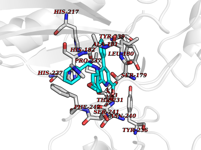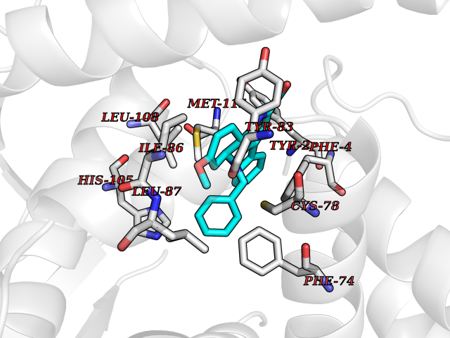 | Target general information Gen name GPBAR1 Organism Homo sapiens (Human) Uniprot ID TTD ID Synonyms hGPCR19; hBG37; TGR5; Membrane-type receptor for bile acids; M-BAR; G-protein coupled receptor GPCR19; BG37 Protein family G-protein coupled receptor 1 family Biochemical class GPCR rhodopsin Function Bile acid-binding induces its internalization, activation of extracellular signal-regulated kinase and intracellular cAMP production. May be involved in the suppression of macrophage functions by bile acids. Receptor for bile acid. Related diseases Dystonia 34, myoclonic (DYT34) [MIM:619724]: A form of dystonia, a disorder defined by the presence of sustained involuntary muscle contraction, often leading to abnormal postures. DYT34 is an autosomal dominant form characterized by childhood-onset dystonia predominantly affecting hands and neck, with a fast tremor with superimposed myoclonus and, in some individuals, subtle cerebellar signs. {ECO:0000269|PubMed:32212350}. The disease may be caused by variants affecting the gene represented in this entry.; DISEASE: Neurodevelopmental disorder with or without variable movement or behavioral abnormalities (NEDMAB) [MIM:619725]: An autosomal dominant disorder characterized by motor and language developmental delay, intellectual disability often associated with early-onset movement disorders comprising cerebellar ataxia and/or extrapyramidal symptoms. Other variable features include autism spectrum disorder or autistic features and epilepsy. {ECO:0000269|PubMed:33242881}. The disease is caused by variants affecting the gene represented in this entry. Drugs (DrugBank ID) DB06777; DB02659; DB03619 Interacts with P38646 EC number NA Uniprot keywords 3D-structure; Cell membrane; Disulfide bond; G-protein coupled receptor; Glycoprotein; Membrane; Proteomics identification; Receptor; Reference proteome; Transducer; Transmembrane; Transmembrane helix Protein physicochemical properties Chain ID R Molecular weight (Da) 29418.5 Length 273 Aromaticity 0.1 Instability index 40.15 Isoelectric point 9.83 Charge (pH=7) 9.97 3D Binding mode Sequence LSLALASLIITANLLLALGIAWDRRLRSPPAGCFFLSLLLAGLLTGLALPTLPGLWNQSRRGYWSCLLVYLAPNFSFLSLLANLLLVHGERYMAVLRPLQPPGSIRLALLLTWAGPLLFASLPALGWNHWTPGANCSSQAIFPAPYLYLEVYGLLLPAVGAAAFLSVRVLATAHRQLQDICRLERAVCRDEPSALARALTWRQARAQAGAMLLFGLCWGPYVATLLLSVLAYEQRPPLGPGTLLSLLSLGSASAAAVPVAMGLGDQRYTAPWR Hydrogen bonds contact Hydrophobic contact | ||||