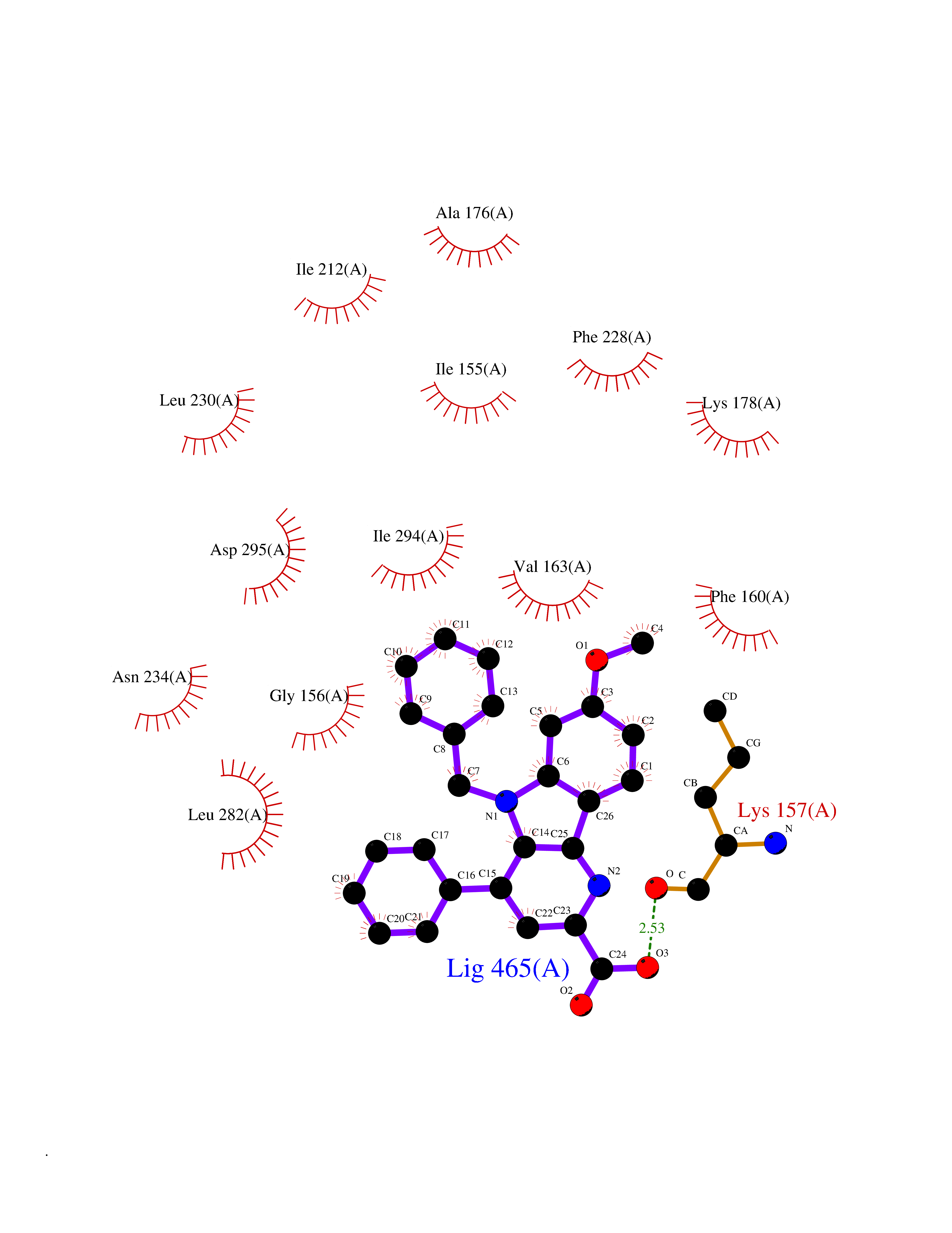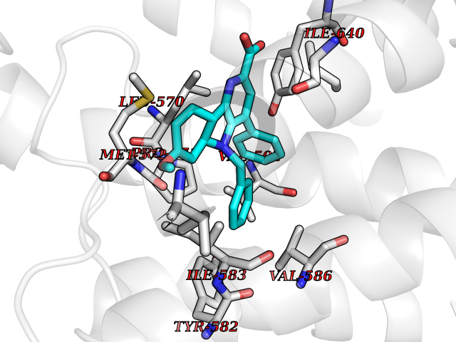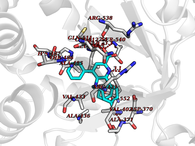 | Target general information Gen name GUCY1B1 Organism Homo sapiens (Human) Uniprot ID TTD ID Synonyms Soluble guanylate cyclase small subunit; Guanylate cyclase soluble subunit beta-3; Guanylate cyclase soluble subunit beta-1; GUCY1B3; GUCSB3; GUC1B3; GCS-beta-3; GCS-beta-1 Protein family Adenylyl cyclase class-4/guanylyl cyclase family Biochemical class Phosphorus-oxygen lyase Function Mediates responses to nitric oxide (NO) by catalyzing the biosynthesis of the signaling molecule cGMP. Related diseases Neurodevelopmental disorder with seizures, hypotonia, and brain imaging abnormalities (NEDSHBA) [MIM:618922]: An autosomal recessive neurodevelopmental disorder characterized by global developmental delay, hypotonia, severe to profound intellectual disability, early-onset epilepsy, and microcephaly. Neuroimaging shows cerebral atrophy, thin corpus callosum and hypomyelination in a majority of cases. Death in childhood may occur. {ECO:0000269|PubMed:27435318, ECO:0000269|PubMed:28097321, ECO:0000269|PubMed:32286009, ECO:0000269|PubMed:33476302, ECO:0000269|PubMed:33500274}. The disease is caused by variants affecting the gene represented in this entry. Drugs (DrugBank ID) DB09401; DB15456 Interacts with Q02108; Q02108-1 EC number EC 4.6.1.2 Uniprot keywords 3D-structure; Alternative splicing; cGMP biosynthesis; Cytoplasm; Direct protein sequencing; GTP-binding; Heme; Iron; Lyase; Metal-binding; Nucleotide-binding; Proteomics identification; Reference proteome Protein physicochemical properties Chain ID A,B Molecular weight (Da) 121177 Length 1071 Aromaticity 0.09 Instability index 42.35 Isoelectric point 6.18 Charge (pH=7) -11.86 3D Binding mode Sequence SRVYLHTLAESICKLIFPEFERLNVALQRTLAKHKFEKTIAEQAVAAGVPVEVIKESLGEEVFKICYEEDENILGVVGGTLKDFLNSFSTLLKQASILCLLHVYYFTTSLILPGIIKAAAHVLYETEVEVSLYLLYSVHSLVIPTSLFCKTFPFHFMFDKDMTILQFGNGIRRLMNRRDKPNFEEYFEILTPKINQTFSGIMTMLNMQFVVRVRRVMDLKGQMIYIVESSAILFLGSPCVLYLSDIPIHNALRDVVLIGEQARAQDGLKKRLGKLKATLEQAHQALEEEKKKTVDLLCSIFPCEVAQQLWQGQVVQAKKFSNVTMLFSDIVGFTAICSQCSPLQVITMLNALYTRFDQQCGELDVYKVETIGDAYCVAGGLHKESDTHAVQIALMAVKMMELSDEVMSPHGEPIKMRIGLHSGSVFAGVVGVKMPRYCLFGNNVTLANKFESCSVPRKINVSPTTYRLLKDCPGFVFTPRSREELPPNFPSEIPGICHFLDAMYGFVNHALELLVIRNYGPEVWEDIKKEAQLDEEGQFLVRIIYDDSKTYDLVAAASKVLNLNAGEILQMFGKMFFVFCQESGYDTILRVLGSNVREFLQNLDALHDHLATIYPGMRAPSFRCTDAEKGKGLILHYYSEREGLQDIVIGIIKTVAQQIHGTEIDMKVIQQRNEECDHTQFLIEEKEESRISPYTFCKAFPFHIIFDRDLVVTQCGNAIYRVLPQLQPGNCSLLSVFSLVRPHIDISFHGILSHINTVFVLRSKEGLLDSCLRLKGQMIYLPEADSILFLCSPSVMNLDDLTRRGLYLSDIPLHDATRDLVLLGEQFREEYKLTQELEILTDRLQLTLRALEDEKKKTDTLLYSVLPPSVANELRHKRPVPAKRYDNVTILFSGIVGFNAFCSKHAGAMKIVNLLNDLYTRFDTLTDSRKNPFVYKVETVGDKYMTVSGLPEPCIHHARSICHLALDMMEIAGQVQVDGESVQITIGIHTGEVVTGVIGQRMPRYCLFGNTVNLTSRTETTGEKGKINVSEYTYRCLMSPENSDPQFHLEHRGPVSMKGKKEPMQVWFLSR Hydrogen bonds contact Hydrophobic contact | ||||