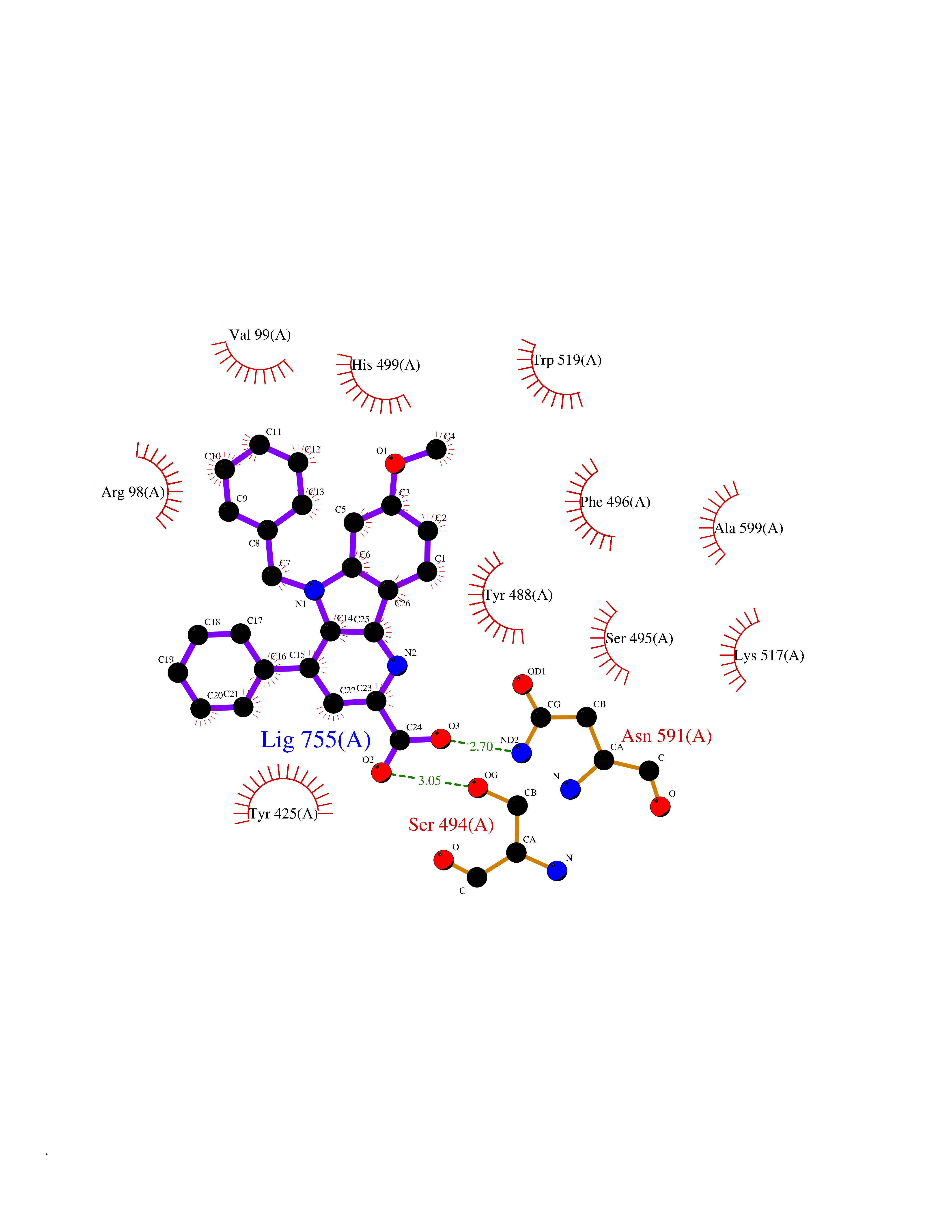 | Target general information Gen name PYGL Organism Homo sapiens (Human) Uniprot ID TTD ID NA Synonyms NA Protein family Glycogen phosphorylase family Biochemical class Transferase Function AMP binding.ATP binding.Bile acid binding.Drug binding.Glucose binding.Glycogen phosphorylase activity.Linear malto-oligosaccharide phosphorylase activity.Protein homodimerization activity.Purine nucleobase binding.Pyridoxal phosphate binding.SHG alpha-glucan phosphorylase activity.Vitamin binding. Related diseases Glycogen storage disease 6 (GSD6) [MIM:232700]: A metabolic disorder characterized by mild to moderate hypoglycemia, mild ketosis, growth retardation, and prominent hepatomegaly. Heart and skeletal muscle are not affected. {ECO:0000269|PubMed:9529348}. The disease is caused by variants affecting the gene represented in this entry. Drugs (DrugBank ID) NA Interacts with P11216; P11217 EC number 2.4.1.1 Uniprot keywords 3D-structure; Acetylation; Allosteric enzyme; Alternative splicing; Carbohydrate metabolism; Cytoplasm; Disease variant; Glycogen metabolism; Glycogen storage disease; Glycosyltransferase; Nucleotide-binding; Phosphoprotein; Proteomics identification; Pyridoxal phosphate; Reference proteome; Transferase Protein physicochemical properties Chain ID A,B Molecular weight (Da) 89481.9 Length 778 Aromaticity 0.11 Instability index 34.96 Isoelectric point 6.49 Charge (pH=7) -3.54 3D Binding mode Sequence NVAELKKSFNRHLHFTLVKDRNVATTRDYYFALAHTVRDHLVGRWIRTQQHYYDKCPKRVYYLSLEFYMGRTLQNTMINLGLQNACDEAIYQLGLDIEELEEIEEDAGLGNGGLGRLAACFLDSMATLGLAAYGYGIRYEYGIFNQKIRDGWQVEEADDWLRYGNPWEKSRPEFMLPVHFYGKVEHTNTGTKWIDTQVVLALPYDTPVPGYMNNTVNTMRLWSENISRVLYPNDNFFEGKELRLKQEYFVVAATLQDIIRRFKASKFGSTGTVFDAFPDQVAIQLNDTHPALAIPELMRIFVDIEKLPWSKAWELTQKTFAYTNHTVLPEALERWPVDLVEKLLPRHLEIIYEINQKHLDRIVALFPKDVDRLRRMSLIEEEGSKRINMAHLCIVGSHAVNGVAKIHSDIVKTKVFKDFSELEPDKFQNKTNGITPRRWLLLCNPGLAELIAEKIGEDYVKDLSQLTKLHSFLGDDVFLRELAKVKQENKLKFSQFLETEYKVKINPSSMFDVQVKRIHEYKRQLLNCLHVITMYNRIKKDPKKLFVPRTVIIGGKAAPGYHMAKMIIKLITSVADVVNNDPMVGSKLKVIFLENYRVSLAEKVIPATDLSEQISTAGTEASGTGNMKFMLNGALTIGTMDGANVEMAEEAGEENLFIFGMRIDDVAALDKKGYEAKEYYEALPELKLVIDQIDNGFFSPKQPDLFKDIINMLFYHDRFKVFADYEAYVKCQDKVSQLYMNPKAWNTMVLKNIAASGKFSSDRTIKEYAQNIWNVEPS Hydrogen bonds contact Hydrophobic contact | ||||