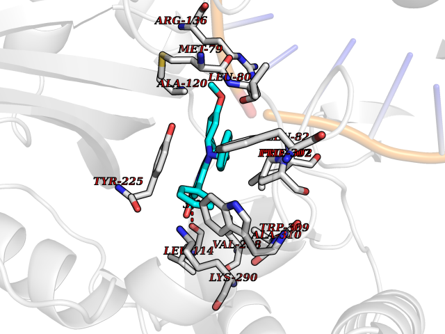| Target general information Gen name Bact ligA Organism Escherichia coli (strain K12) Uniprot ID TTD ID Synonyms ligA; Polydeoxyribonucleotide synthase [NAD+]; NAD+-dependent DNA ligase Protein family NAD-dependent DNA ligase family, LigA subfamily Biochemical class Phosphoric ester ligase Function DNA ligase that catalyzes the formation of phosphodiester linkages between 5'-phosphoryl and 3'-hydroxyl groups in double-stranded DNA using NAD as a coenzyme and as the energy source for the reaction. It is essential for DNA replication and repair of damaged DNA. Related diseases Dystonia 1, torsion, autosomal dominant (DYT1) [MIM:128100]: A primary torsion dystonia, and the most common and severe form. Dystonia is defined by the presence of sustained involuntary muscle contractions, often leading to abnormal postures. Dystonia type 1 is characterized by involuntary, repetitive, sustained muscle contractions or postures involving one or more sites of the body, in the absence of other neurological symptoms. Typically, symptoms develop first in an arm or leg in middle to late childhood and progress in approximately 30% of patients to other body regions (generalized dystonia) within about five years. 'Torsion' refers to the twisting nature of body movements observed in DYT1, often affecting the trunk. Distribution and severity of symptoms vary widely between affected individuals, ranging from mild focal dystonia to severe generalized dystonia, even within families. {ECO:0000269|PubMed:14970196, ECO:0000269|PubMed:15505207, ECO:0000269|PubMed:16361107, ECO:0000269|PubMed:17428918, ECO:0000269|PubMed:18167355, ECO:0000269|PubMed:18477710, ECO:0000269|PubMed:18827015, ECO:0000269|PubMed:19955557, ECO:0000269|PubMed:20169475, ECO:0000269|PubMed:21102408, ECO:0000269|PubMed:24930953, ECO:0000269|PubMed:27490483, ECO:0000269|PubMed:9288096}. The disease is caused by variants affecting the gene represented in this entry.; DISEASE: Arthrogryposis multiplex congenita 5 (AMC5) [MIM:618947]: A form of arthrogryposis multiplex congenita, a developmental condition characterized by multiple joint contractures resulting from reduced or absent fetal movements. AMC5 is an autosomal recessive form characterized by severe congenital contractures, developmental delay, strabismus and tremor. {ECO:0000269|PubMed:28516161, ECO:0000269|PubMed:29053766, ECO:0000269|PubMed:30244176}. The disease is caused by variants affecting the gene represented in this entry. Drugs (DrugBank ID) NA Interacts with P07813 EC number EC 6.5.1.2 Uniprot keywords 3D-structure; Direct protein sequencing; DNA damage; DNA repair; DNA replication; Ligase; Magnesium; Metal-binding; NAD; Reference proteome; Zinc Protein physicochemical properties Chain ID D,A,C Molecular weight (Da) 66922.6 Length 612 Aromaticity 0.06 Instability index 37.23 Isoelectric point 5.48 Charge (pH=7) -16.8 3D Binding mode Sequence ACAATTGCGACXCCACTATCGGAATGMESIEQQLTELRTTLRHHEYLYHVMDAPEIPDAEYDRLMRELRELETKHPELITPDSPTQRVGAAPLAAFSQIRHEVPMLSLDNVFDEESFLAFNKRVQDRLKNNEKVTWCCELKLDGLAVSILYENGVLVSAATRGDGTTGEDITSNVRTIRAIPLKLHGENIPARLEVRGEVFLPQAGFEKINEDARRTGGKVFANPRNAAAGSLRQLDPRITAKRPLTFFCYGVGVLEGGELPDTHLGRLLQFKKWGLPVSDRVTLCESAEEVLAFYHKVEEDRPTLGFDIDGVVIKVNSLAQQEQLGFVARAPRWAVAFKFPAQEQMTFVRDVEFQVGRTGAITPVARLEPVHVAGVLVSNATLHNADEIERLGLRIGDKVVIRRAGDVIPQVVNVVLSERPEDTREVVFPTHCPVCGSDVERVEGEAVARCTGGLICGAQRKESLKHFVSRRAMDVDGMGDKIIDQLVEKEYVHTPADLFKLTAGKLTGLERMGPKSAQNVVNALEKAKETTFARFLYALGIREVGEATAAGLAAYFGTLEALEAASIEELQKVPDVGIVVASHVHNFFAEESNRNVISELLAEGVHWPAP Hydrogen bonds contact Hydrophobic contact | ||||