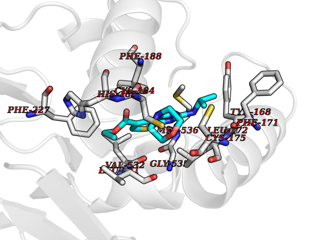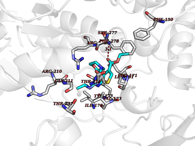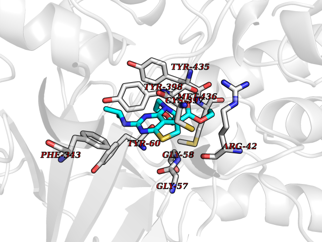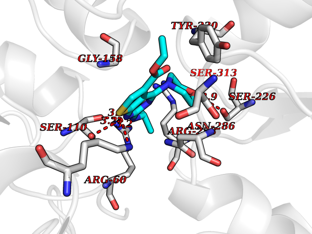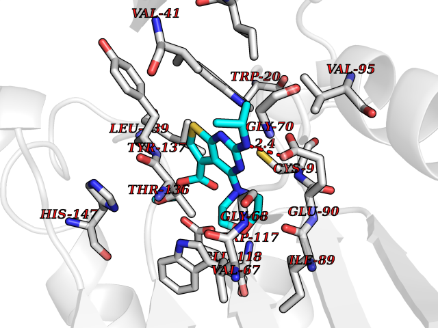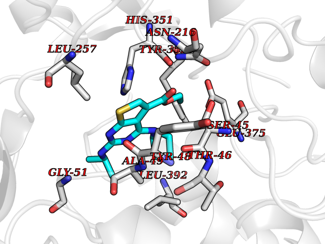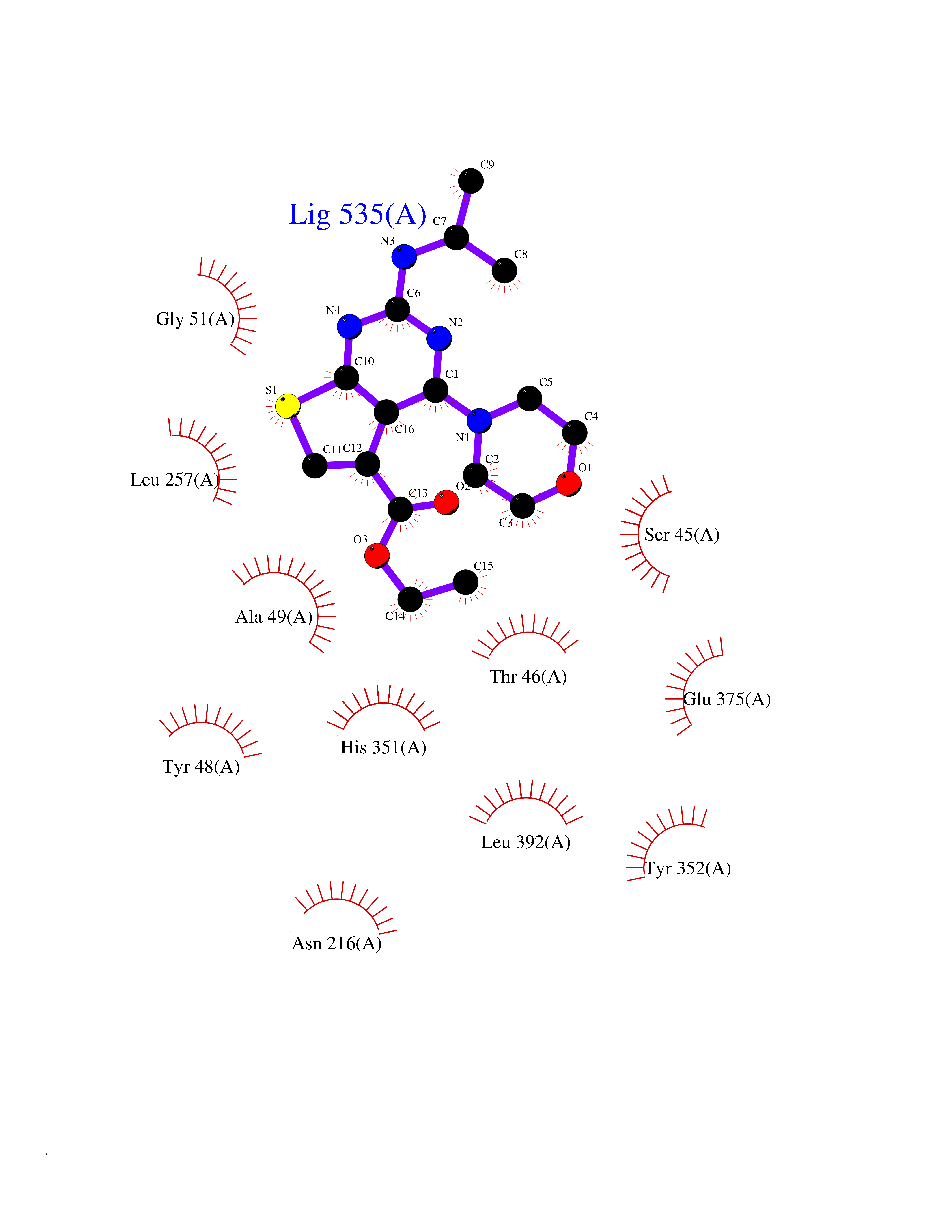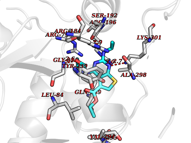 | Target general information Gen name nadB Organism Escherichia coli (strain K12) Uniprot ID TTD ID NA Synonyms JW2558;nicB;b2574 Protein family FAD-dependent oxidoreductase 2 family, NadB subfamily Biochemical class Oxidoreductase Function Flavin adenine dinucleotide binding.L-aspartate:fumarate oxidoreductase activity.L-aspartate oxidase activity. Related diseases Thyroid hormone resistance, generalized, autosomal dominant (GRTHD) [MIM:188570]: An autosomal dominant disease characterized by high levels of circulating thyroid hormones (T3-T4), goiter, abnormal mental functions, increased susceptibility to infections, abnormal growth and bone maturation, tachycardia and deafness. Affected individuals may also have attention deficit-hyperactivity disorders (ADHD) and language difficulties. Patients have normal or slightly elevated thyroid stimulating hormone (TSH). {ECO:0000269|PubMed:10660344, ECO:0000269|PubMed:12511610, ECO:0000269|PubMed:12554782, ECO:0000269|PubMed:1314846, ECO:0000269|PubMed:1324420, ECO:0000269|PubMed:1563081, ECO:0000269|PubMed:1587388, ECO:0000269|PubMed:1619012, ECO:0000269|PubMed:1661299, ECO:0000269|PubMed:16804041, ECO:0000269|PubMed:1846005, ECO:0000269|PubMed:19268523, ECO:0000269|PubMed:2153155, ECO:0000269|PubMed:2510172, ECO:0000269|PubMed:7833659, ECO:0000269|PubMed:8175986, ECO:0000269|PubMed:8514853, ECO:0000269|PubMed:8664910, ECO:0000269|PubMed:8889584}. The disease is caused by variants affecting the gene represented in this entry.; DISEASE: Thyroid hormone resistance, generalized, autosomal recessive (GRTHR) [MIM:274300]: An autosomal recessive disorder characterized by goiter, clinical euthyroidism, end-organ unresponsiveness to thyroid hormone, abnormal growth and bone maturation, and deafness. Patients also have high levels of circulating thyroid hormones, with elevated thyroid stimulating hormone. {ECO:0000269|PubMed:1653889}. The disease is caused by variants affecting the gene represented in this entry.; DISEASE: Selective pituitary thyroid hormone resistance (PRTH) [MIM:145650]: Variant form of thyroid hormone resistance and is characterized by clinical hyperthyroidism, with elevated free thyroid hormones, but inappropriately normal serum TSH. Unlike GRTH, where the syndrome usually segregates with a dominant allele, the mode of inheritance in PRTH has not been established. {ECO:0000269|PubMed:7528740, ECO:0000269|PubMed:8381821}. The disease is caused by variants affecting the gene represented in this entry. Drugs (DrugBank ID) DB03147 Interacts with NA EC number 1.4.3.16; 1.5.99.- Uniprot keywords 3D-structure; Cytoplasm; Direct protein sequencing; FAD; Flavoprotein; Nucleotide-binding; Oxidoreductase; Pyridine nucleotide biosynthesis; Reference proteome Protein physicochemical properties Chain ID A Molecular weight (Da) 58993.2 Length 529 Aromaticity 0.07 Instability index 36.96 Isoelectric point 5.76 Charge (pH=7) -15.84 3D Binding mode Sequence PEHSCDVLIIGSGAAGLSLALRLADQHQVIVLSKGPVTEGSTFYAQGGIAAVFDETDSIDSHVEDTLIAGAGICDRHAVEFVASNARSCVQWLIDQGVLFDTHIQPNGEESYHLTREGGHSHRRILHAADATGREVETTLVSKALNHPNIRVLERTNAVDLIVSDKIGLPGTRRVVGAWVWNRNKETVETCHAKAVVLATGGASKVYQYTTNPDISSGDGIAMAWRAGCRVANLEFNQFHPTALYHPQARNFLLTEALRGEGAYLKRPDGTRFMPDFDERGELAPRDIVARAIDHEMKRLGADCMFLDISHKPADFIRQHFPMIYEKLLGLGIDLTQEPVPIVPAAHYTCGGVMVDDHGRTDVEGLYAIGEVSYTGLHGANLMASNSLLECLVYGWSAAEDITRRMPYAHDISTLPPWDESRVENPDERVVIQHNWHELRLFMWDYVGIVRTTKRLERALRRITMLQQEIDEYYAHFRVSNNLLELRNLVQVAELIVRCAMMRKESRGLHFTLDYPELLTHSGPSILSP Hydrogen bonds contact Hydrophobic contact | ||||