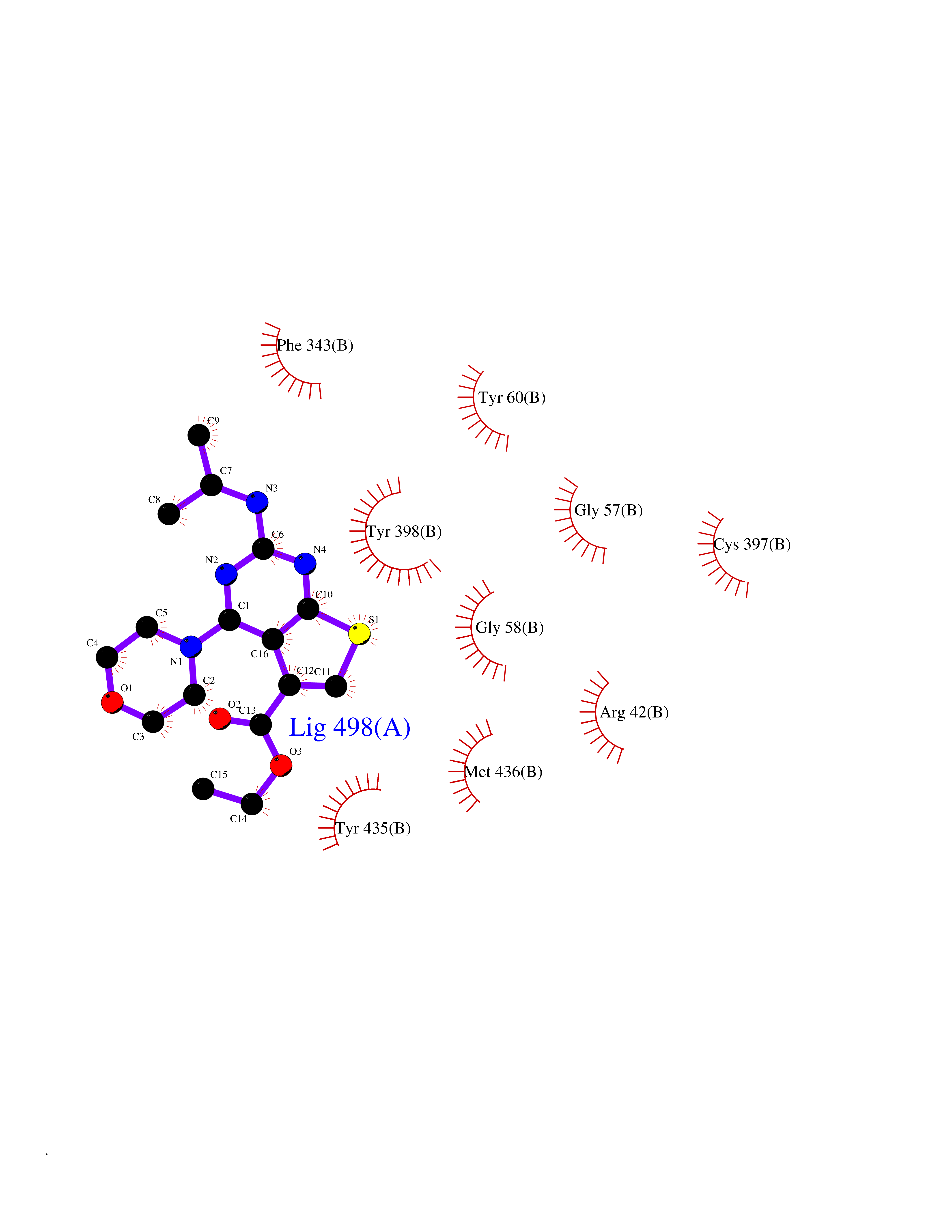 | Target general information Gen name GRM4 Organism Homo sapiens (Human) Uniprot ID TTD ID Synonyms mGluR4; Group III metabotropic glutamate receptor 4; GPRC1D Protein family G-protein coupled receptor 3 family Biochemical class GPCR glutamate Function Ligand binding causes a conformation change that triggers signaling via guanine nucleotide-binding proteins (G proteins) and modulates the activity of down-stream effectors. Signaling inhibits adenylate cyclase activity. G-protein coupled receptor for glutamate. Related diseases Immunodeficiency 57 with autoinflammation (IMD57) [MIM:618108]: An autosomal recessive primary immunodeficiency characterized by lymphopenia and recurrent viral, bacterial, and fungal infections. Patients exhibit early-onset inflammatory bowel disease involving the upper and lower gastrointestinal tract, and develop progressive polyarthritis. {ECO:0000269|PubMed:30026316}. The disease is caused by variants affecting the gene represented in this entry. RIPK1-deficient immune cells from IMD57 patients have impaired proinflammatory signaling leading to dysregulated cytokine secretion and are prone to necroptosis. {ECO:0000269|PubMed:30026316}.; DISEASE: Autoinflammation with episodic fever and lymphadenopathy (AIEFL) [MIM:618852]: An autosomal dominant immunologic disorder characterized by early onset of recurrent episodes of unexplained fever, lymphadenopathy, hepatosplenomegaly, and increased levels of inflammatory cytokines and chemokines in patient serum. {ECO:0000269|PubMed:31827280, ECO:0000269|PubMed:31827281}. The disease is caused by variants affecting the gene represented in this entry. Drugs (DrugBank ID) DB00142 Interacts with NA EC number NA Uniprot keywords 3D-structure; Alternative splicing; Cell membrane; Disulfide bond; G-protein coupled receptor; Glycoprotein; Membrane; Proteomics identification; Receptor; Reference proteome; Signal; Transducer; Transmembrane; Transmembrane helix Protein physicochemical properties Chain ID R Molecular weight (Da) 85773.3 Length 766 Aromaticity 0.1 Instability index 34.05 Isoelectric point 8.68 Charge (pH=7) 11.83 3D Binding mode Sequence NSIRIDGDITLGGLFPVHGRGSEGKPCGELKKEKGIHRLEAMLFALDRINNDPDLLPNITLGARILDTCSRDTHALEQSLTFVQALIERVVGVIGASGSSVSIMVANILRLFKIPQISYASTAPDLSDNSRYDFFSRVVPSDTYQAQAMVDIVRALKWNYVSTVASEGSYGESGVEAFIQKSREDGGVCIAQSVKIPREPKAGEFDKIIRRLLETSNARAVIIFANEDDIRRVLEAARRANQTGHFFWMGSDSWGSKIAPVLHLEEVAEGAVTILPKRMSVRGFDRYFSSRTLDNNRRNIWFAEFWEDNFHCKLVKKCTNRERIGQDSAYEQEGKVQFVIDAVYAMGHALHAMHRDLCPGRVGLCPRMDPVDGTQLLKYIRNVNFSGIAGNPVTFNENGDAPGRYDIYQYQLRAEYKVIGSWTDHLHLRIQQLPRSICSLPCQPGERKKTVKGMPCCWHCEPCTGYQYQVDRYTCKTCPYDMRPTENRTGCRPIPIIKLEWGSPWAVLPLFLAVVGIAATLFVVITFVRYNDTPIVKASGRELSYVLLAGIFLCYATTFLMIAEPDLGTCSLRRIFLGLGMSISYAALLTKTNRIYRIFEQGKRSVSAPRFISPASQLAITFSLISLQLLGICVWFVVDPSHSVVDFQDQRTLDPRFARGVLKCDISDLSLICLLGYSMLLMVTCTVYAIKTRGVPETFNEAKPIGFTMYTTCIVWLAFIPIFFGTSQSADKLYIQTTTLTVSVSLSASVSLGMLYMPKVYIILFH Hydrogen bonds contact Hydrophobic contact | ||||