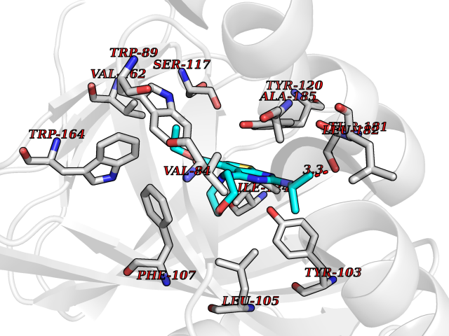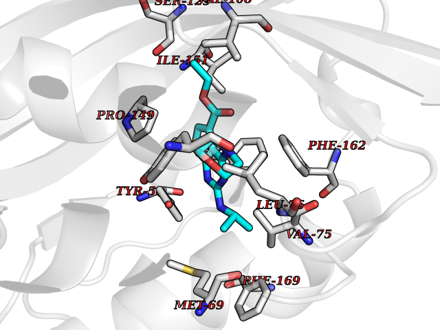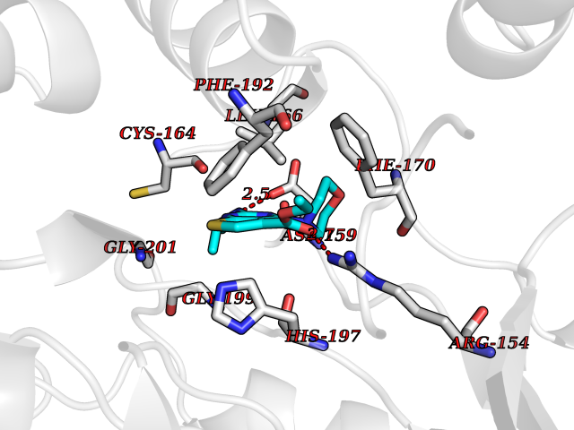 | Target general information Gen name Fung SDH1 Organism Pyricularia oryzae (strain 70-15 / ATCC MYA-4617 / FGSC 8958) (Rice blast fungus) (Magnaporthe oryzae) Uniprot ID TTD ID Synonyms SDH1 Protein family Scytalone dehydratase family Biochemical class Alpha-carbonic anhydrase Function Catalyzes two steps in melanin biosynthesis. From scytalone they are two dehydration steps and one reduction step to yield melanin. Related diseases CODAS syndrome (CODASS) [MIM:600373]: A rare syndrome characterized by the combination of cerebral, ocular, dental, auricular, and skeletal features. These include developmental delay, craniofacial anomalies, cataracts, ptosis, median nasal groove, delayed tooth eruption, hearing loss, short stature, delayed epiphyseal ossification, metaphyseal hip dysplasia, and vertebral coronal clefts. {ECO:0000269|PubMed:25574826, ECO:0000269|PubMed:25808063}. The disease is caused by variants affecting the gene represented in this entry. Drugs (DrugBank ID) NA Interacts with NA EC number EC 4.2.1.94 Uniprot keywords 3D-structure; Calcium; Direct protein sequencing; Endosome; Lyase; Melanin biosynthesis; Metal-binding; Reference proteome Protein physicochemical properties Chain ID A Molecular weight (Da) 19102.4 Length 162 Aromaticity 0.14 Instability index 31.72 Isoelectric point 5.87 Charge (pH=7) -3.7 3D Binding mode Sequence GEITFSDYLGLMTCVYEWADSYDSKDWDRLRKVIAPTLRIDYRSFLDKLWEAMPAEEFVGMVSSKQVLGDPTLRTQHFIGGTRWEKVSEDEVIGYHQLRVPHQRYKDTTMKEVTMKGHAHSANLHWYKKIDGVWKFAGLKPDIRWGEFDFDRIFEDGRETFG Hydrogen bonds contact Hydrophobic contact | ||||