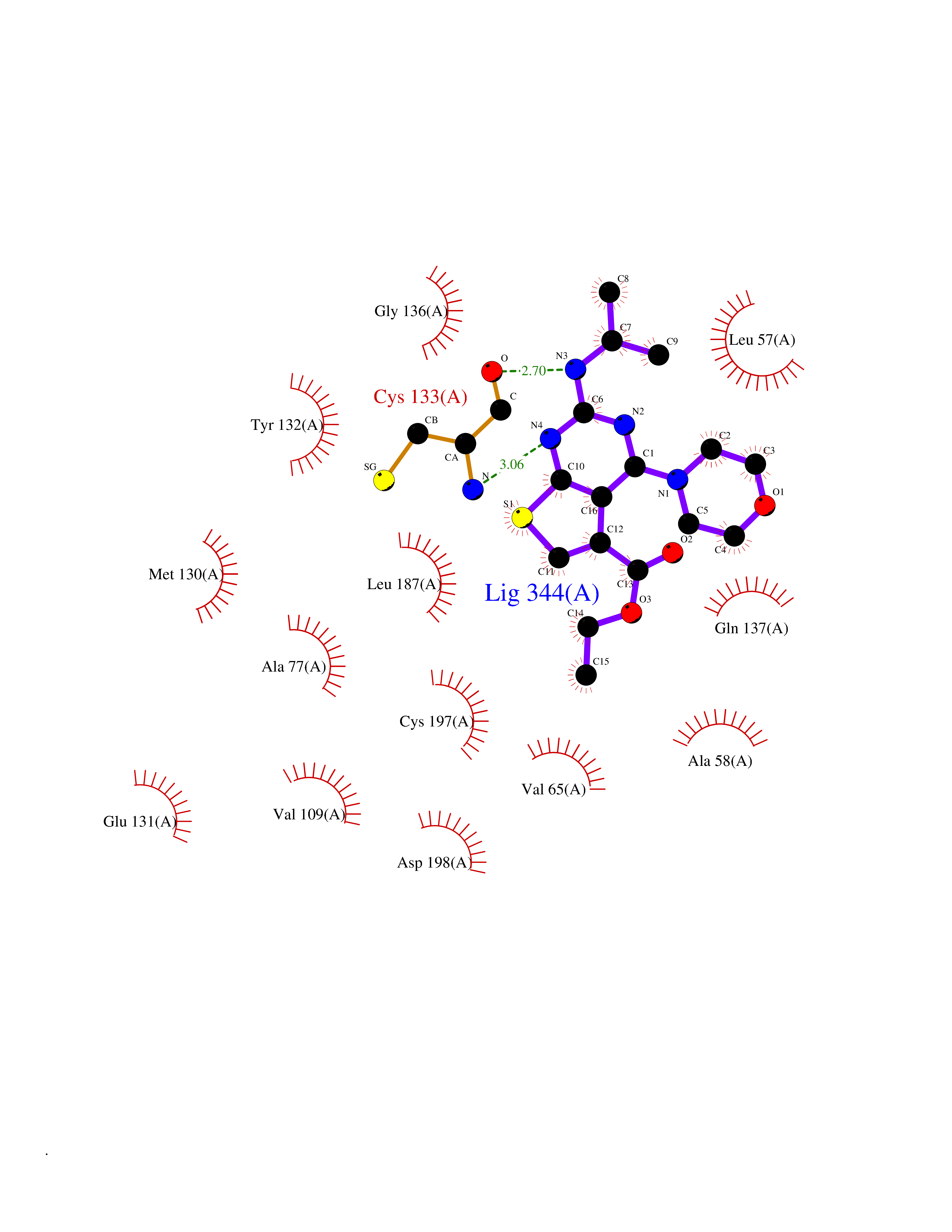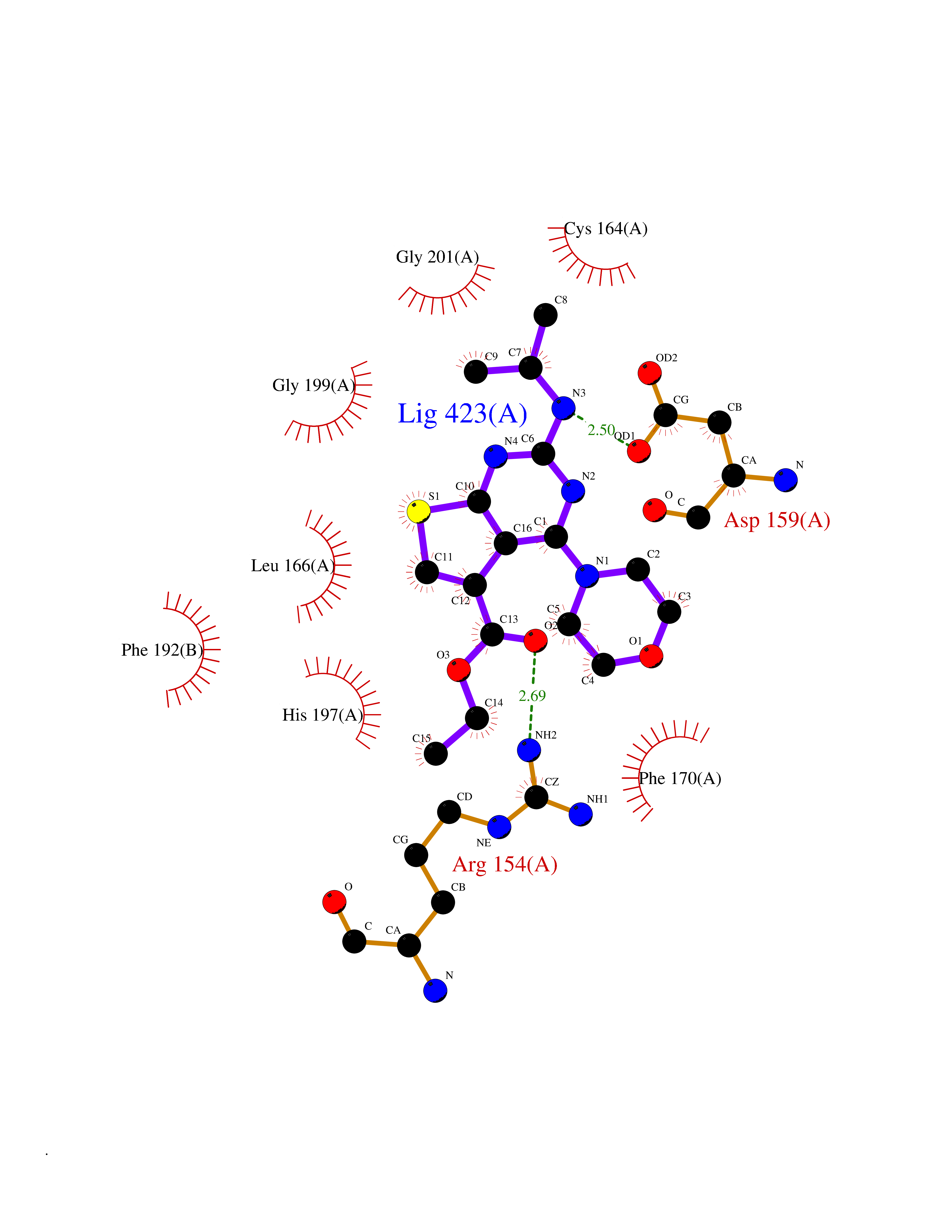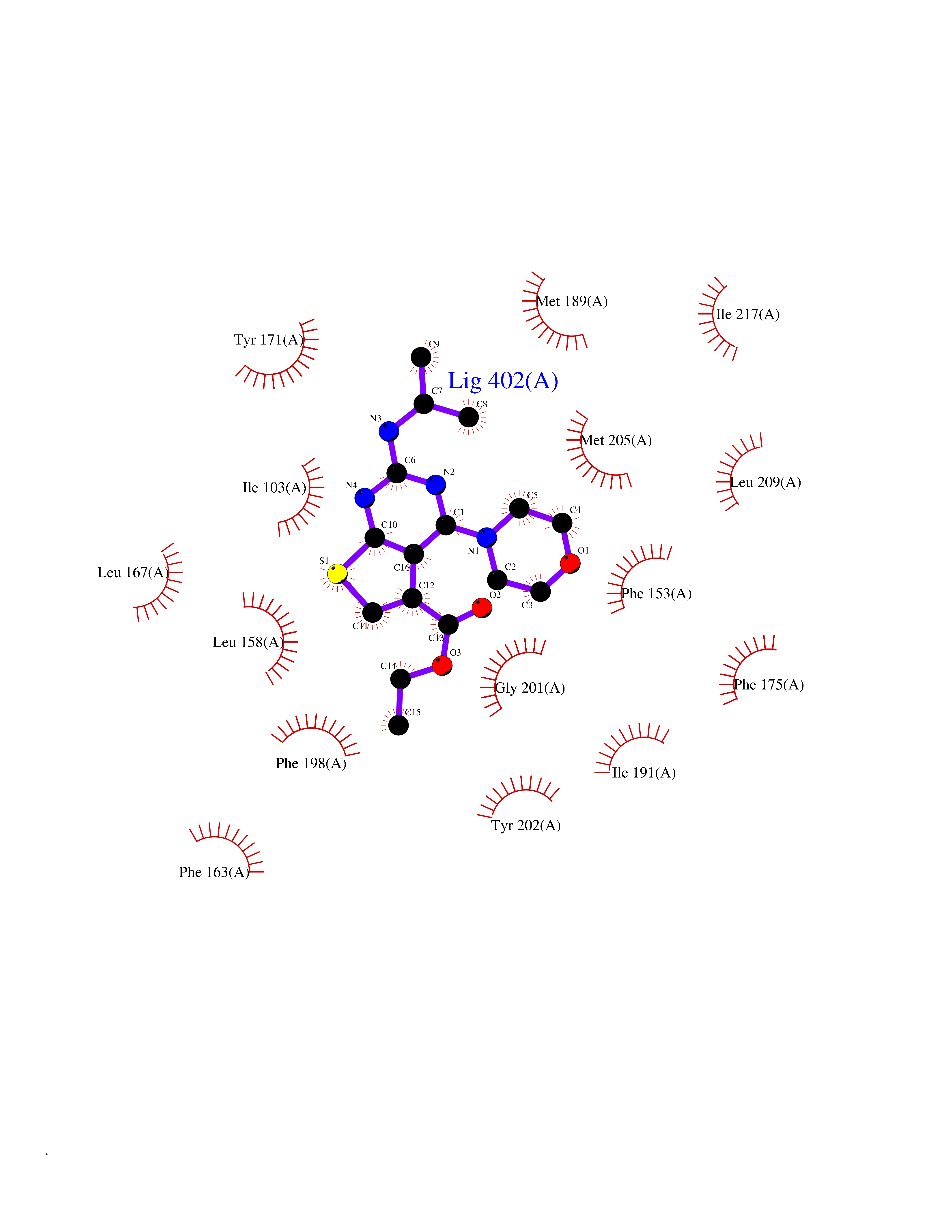 | Target general information Gen name Trypano TPR Organism Trypanosoma brucei brucei Uniprot ID TTD ID Synonyms TRYR; TPR; Parasite-specific trypanothione reductase; N(1),N(8)-bis(glutathionyl)spermidine reductase Protein family Class-I pyridine nucleotide-disulfide oxidoreductase family Biochemical class Sulfur donor oxidoreductase Function Trypanothione is the parasite analog of glutathione; this enzyme is the equivalent of glutathione reductase. Related diseases Immunodeficiency 57 with autoinflammation (IMD57) [MIM:618108]: An autosomal recessive primary immunodeficiency characterized by lymphopenia and recurrent viral, bacterial, and fungal infections. Patients exhibit early-onset inflammatory bowel disease involving the upper and lower gastrointestinal tract, and develop progressive polyarthritis. {ECO:0000269|PubMed:30026316}. The disease is caused by variants affecting the gene represented in this entry. RIPK1-deficient immune cells from IMD57 patients have impaired proinflammatory signaling leading to dysregulated cytokine secretion and are prone to necroptosis. {ECO:0000269|PubMed:30026316}.; DISEASE: Autoinflammation with episodic fever and lymphadenopathy (AIEFL) [MIM:618852]: An autosomal dominant immunologic disorder characterized by early onset of recurrent episodes of unexplained fever, lymphadenopathy, hepatosplenomegaly, and increased levels of inflammatory cytokines and chemokines in patient serum. {ECO:0000269|PubMed:31827280, ECO:0000269|PubMed:31827281}. The disease is caused by variants affecting the gene represented in this entry. Drugs (DrugBank ID) NA Interacts with NA EC number EC 1.8.1.12 Uniprot keywords 3D-structure; Cytoplasm; Disulfide bond; FAD; Flavoprotein; NADP; Oxidoreductase; Redox-active center Protein physicochemical properties Chain ID A,B Molecular weight (Da) 105578 Length 978 Aromaticity 0.08 Instability index 33.76 Isoelectric point 6.25 Charge (pH=7) -6.81 3D Binding mode Sequence SKAFDLVVIGAGSGGLEAGWNAATLYGKRVAVVDVQTSHGPPFYAALGGTCVNVGCVPKKLMVTGAQYMDHLRESAGFGWEFDGSSVKANWKKLIAAKNEAVLDINKSYEGMFNDTEGLDFFLGWGSLESKNVVVVRETADPKSAVKERLQADHILLATGSWPQMPAIPGIEHCISSNEAFYLPEPPRRVLTVGGGFISVEFAGIFNAYKPPGGKVTLCYRNNLILRGFDETIREEVTKQLTANGIEIMTNENPAKVSLNTDGSKHVTFESGKTLDVDVVMMAIGRIPRTNDLQLGNVGVKLTPKGGVQVDEFSRTNVPNIYAIGDITDRLMLTPVAINEGAALVDTVFGNKPRKTDHTRVASAVFSIPPIGTCGLIEEVAAKEFEKVAVYMSSFTPLMHNISGSKYKKFVAKIVTNHSDGTVLGVHLLGDGAPEIIQAVGVCLRLNAKISDFYNTIGVHPTSAEELCSMRTPSYYYVKGEKMEKLPDSSKAFDLVVIGAGSGGLEAGWNAATLYGKRVAVVDVQTSHGPPFYAALGGTCVNVGCVPKKLMVTGAQYMDHLRESAGFGWEFDGSSVKANWKKLIAAKNEAVLDINKSYEGMFNDTEGLDFFLGWGSLESKNVVVVRETADPKSAVKERLQADHILLATGSWPQMPAIPGIEHCISSNEAFYLPEPPRRVLTVGGGFISVEFAGIFNAYKPPGGKVTLCYRNNLILRGFDETIREEVTKQLTANGIEIMTNENPAKVSLNTDGSKHVTFESGKTLDVDVVMMAIGRIPRTNDLQLGNVGVKLTPKGGVQVDEFSRTNVPNIYAIGDITDRLMLTPVAINEGAALVDTVFGNKPRKTDHTRVASAVFSIPPIGTCGLIEEVAAKEFEKVAVYMSSFTPLMHNISGSKYKKFVAKIVTNHSDGTVLGVHLLGDGAPEIIQAVGVCLRLNAKISDFYNTIGVHPTSAEELCSMRTPSYYYVKGEKMEKLPDS Hydrogen bonds contact Hydrophobic contact | ||||