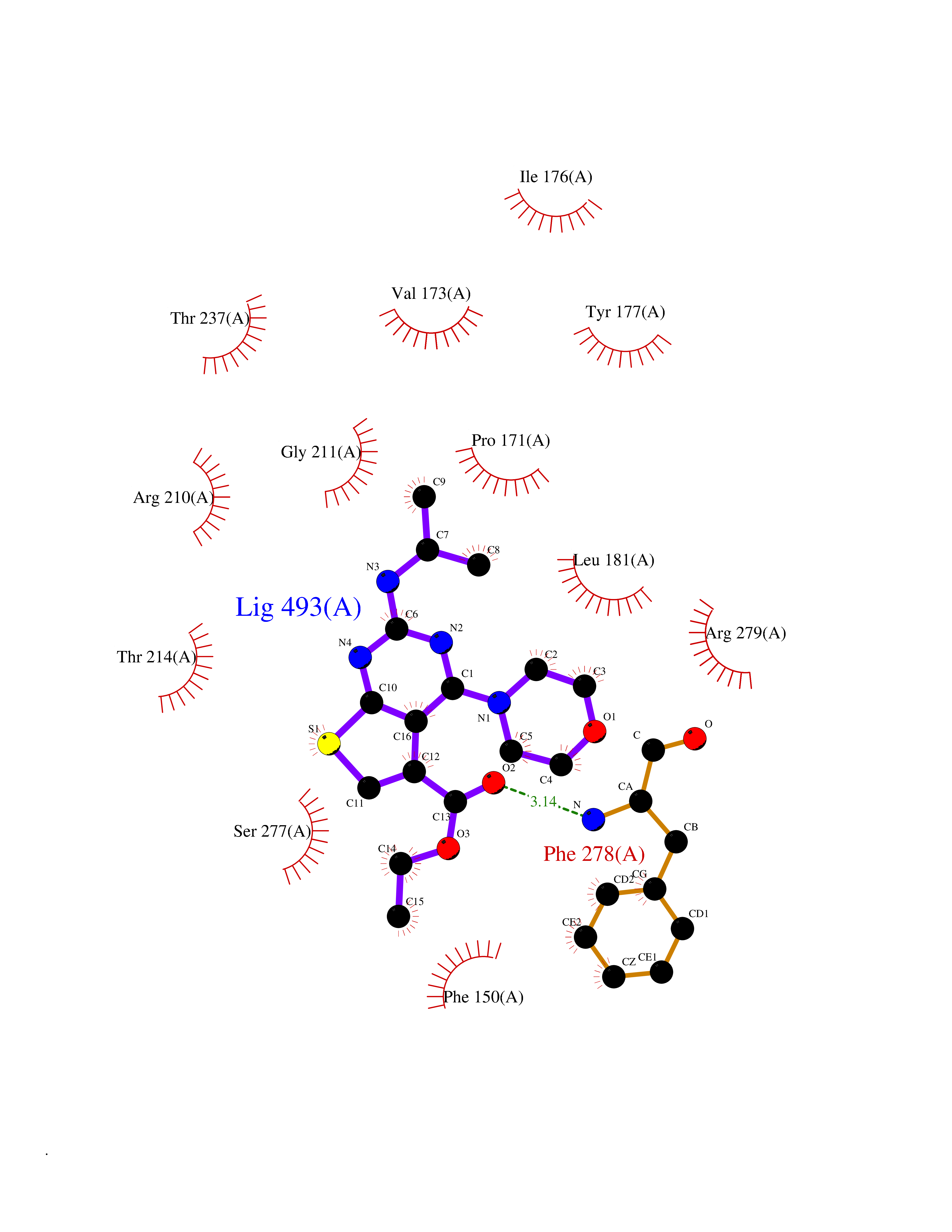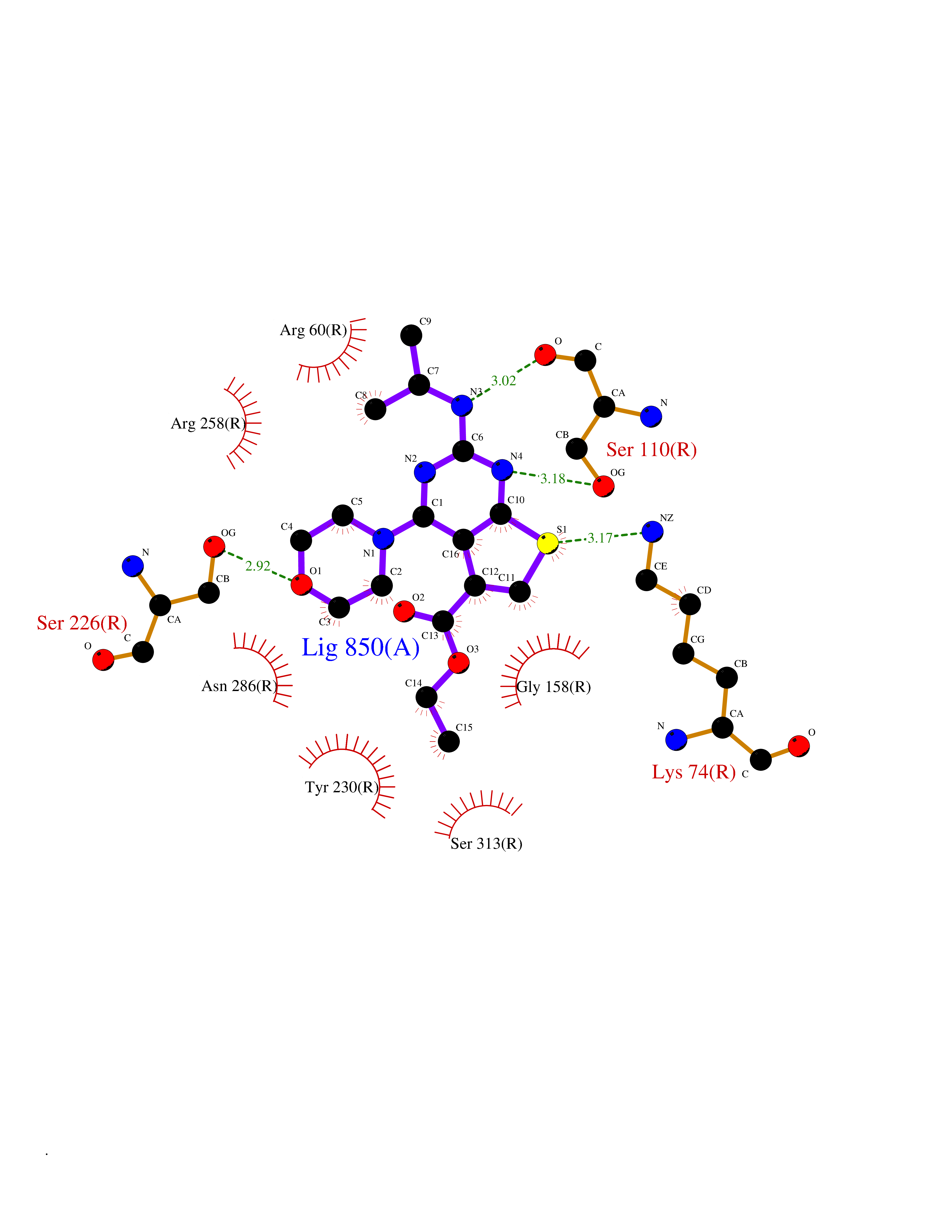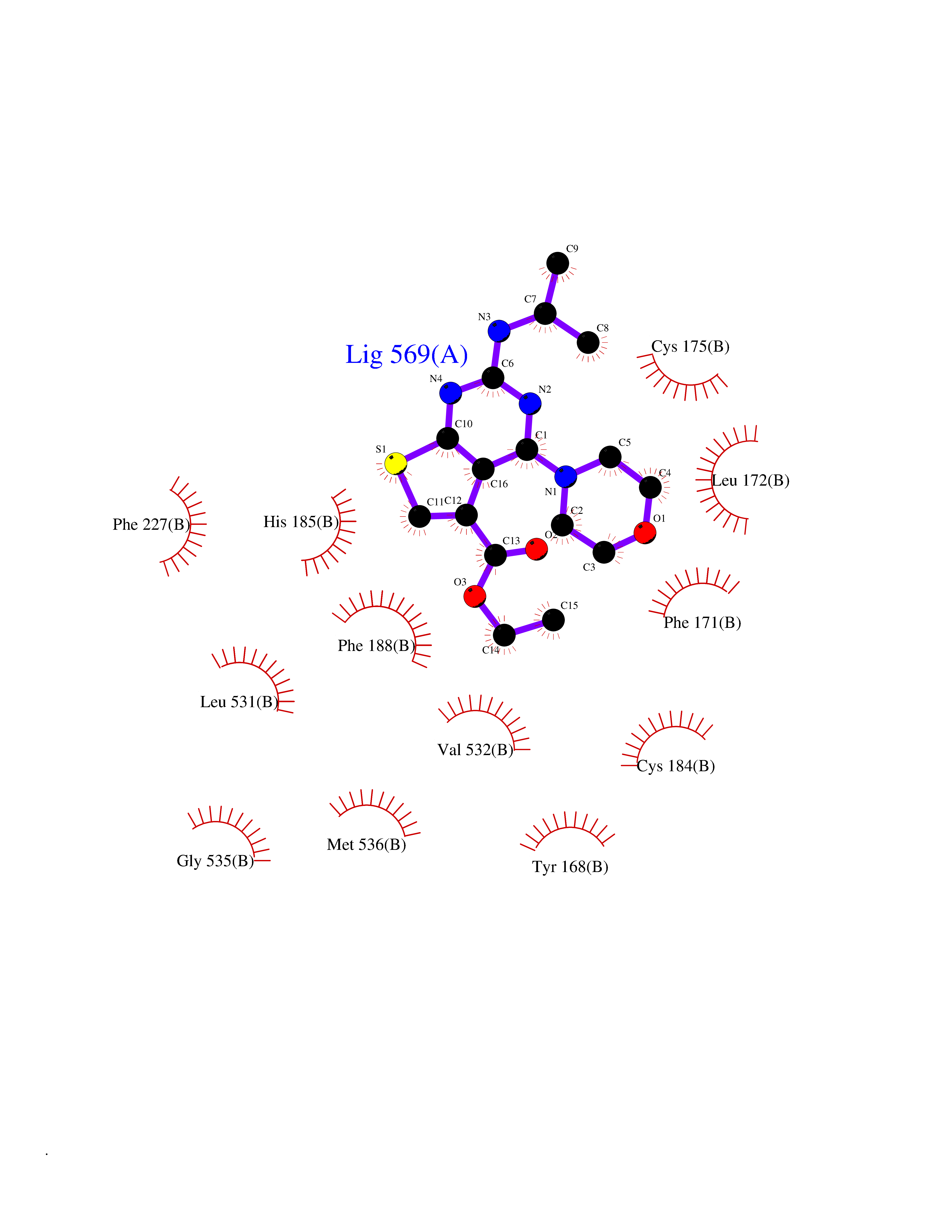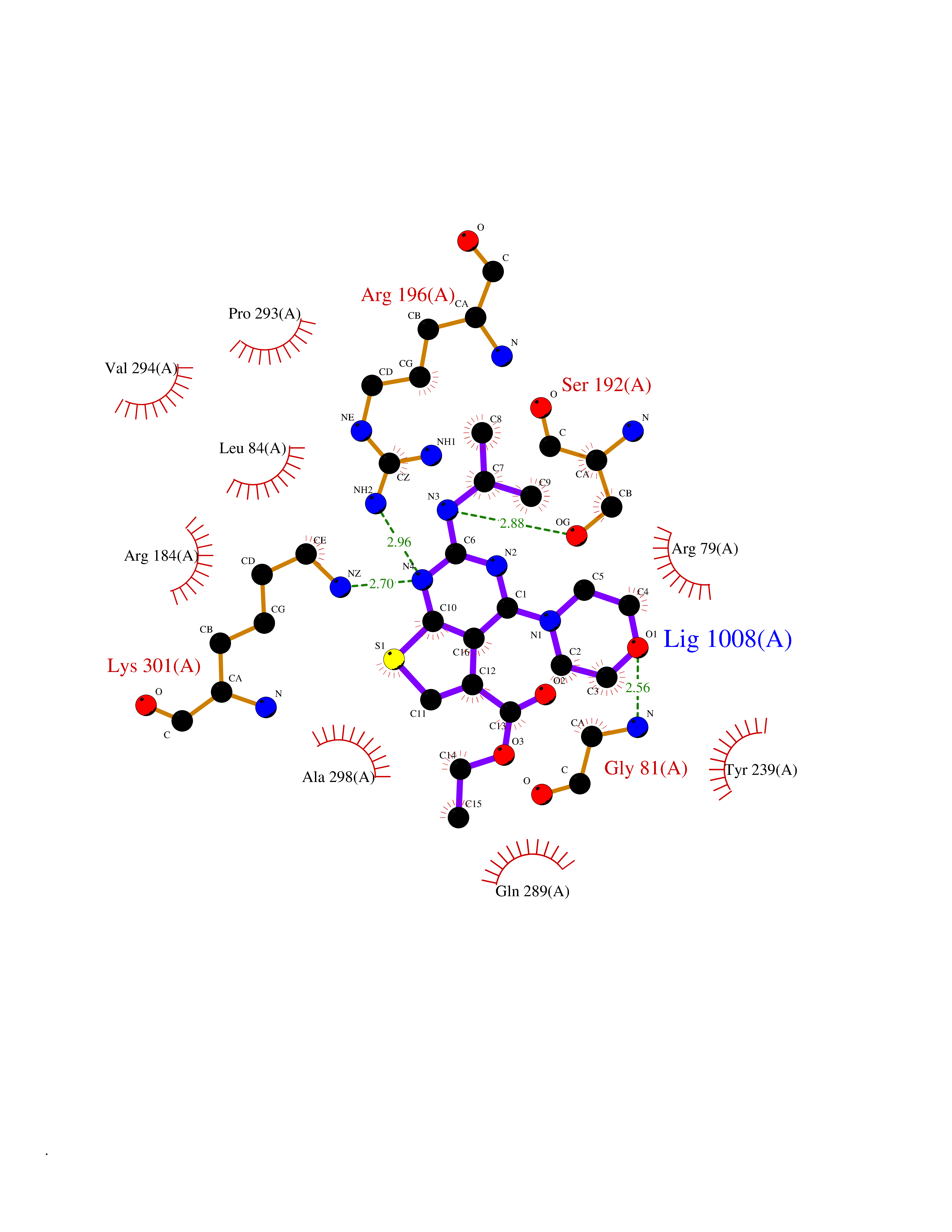 | Target general information Gen name GAMT Organism Homo sapiens (Human) Uniprot ID TTD ID NA Synonyms NA Protein family Class I-like SAM-binding methyltransferase superfamily, RMT2 methyltransferase family Biochemical class Transferase Function Guanidinoacetate N-methyltransferase activity.Methyltransferase activity. Related diseases Cerebral creatine deficiency syndrome 2 (CCDS2) [MIM:612736]: An autosomal recessive disorder characterized by developmental delay and regression, intellectual disability, severe disturbance of expressive and cognitive speech, intractable seizures, movement disturbances, severe depletion of creatine and phosphocreatine in the brain, and accumulation of guanidinoacetic acid in brain and body fluids. {ECO:0000269|PubMed:12468279, ECO:0000269|PubMed:15108290, ECO:0000269|PubMed:15651030, ECO:0000269|PubMed:16293431, ECO:0000269|PubMed:16855203, ECO:0000269|PubMed:17101918, ECO:0000269|PubMed:17466557, ECO:0000269|PubMed:19388150, ECO:0000269|PubMed:23660394, ECO:0000269|PubMed:24415674, ECO:0000269|PubMed:8651275}. The disease is caused by variants affecting the gene represented in this entry. Drugs (DrugBank ID) DB00148; DB02751; DB00536; DB13191; DB01752 Interacts with O95363; Q969Q5; Q9HCM9-2 EC number 2.1.1.2 Uniprot keywords 3D-structure; Acetylation; Alternative splicing; Disease variant; Methyltransferase; Proteomics identification; Reference proteome; S-adenosyl-L-methionine; Transferase Protein physicochemical properties Chain ID A,B,C,D Molecular weight (Da) 24656 Length 219 Aromaticity 0.11 Instability index 46.5 Isoelectric point 5.91 Charge (pH=7) -4.34 3D Binding mode Sequence PAWGAAPAAYDAADTHLRILGKPVMERWETPYMHALAAAASSKGGRVLEVGFGMAIAASKVQEAPIDEHWIIECNDGVFQRLRDWAPRQTHKVIPLKGLWEDVAPTLPDGHFDGILYDTYPLSEETWHTHQFNFIKNHAFRLLKPGGVLTYCNLTSWGELMKSKYSDITIMFEETQVPALLEAGFRRENIRTEVMALVPPADCRYYAFPQMITPLVTKG Hydrogen bonds contact Hydrophobic contact | ||||