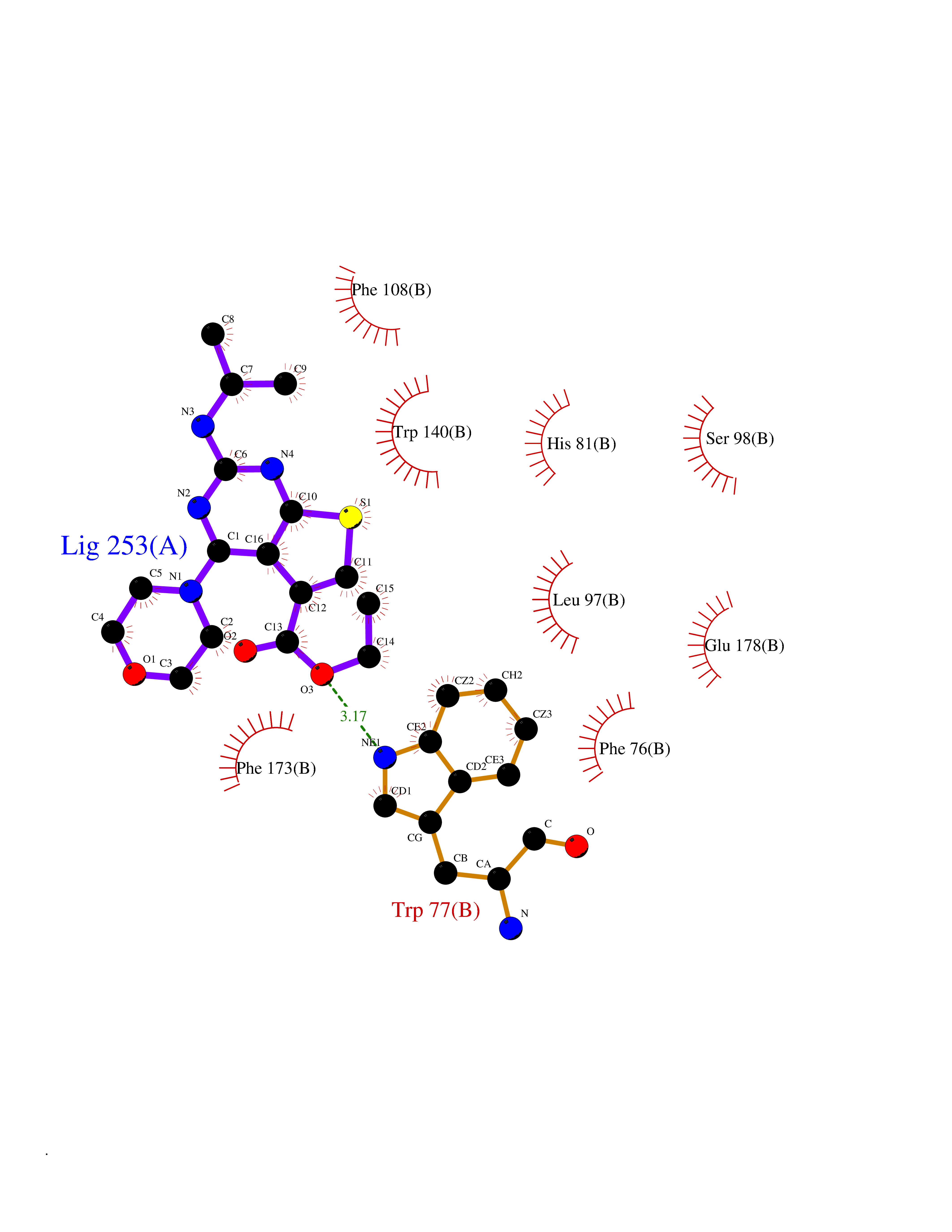 | Target general information Gen name SEC14L3 Organism Homo sapiens (Human) Uniprot ID TTD ID NA Synonyms TAP2 Protein family NA Biochemical class Transport protein Function Lipid binding.Transporter activity. Related diseases Chondrodysplasia with platyspondyly, distinctive brachydactyly, hydrocephaly, and microphthalmia (CDP-PBHM) [MIM:300863]: A disease characterized by chondrodysplasia, severe platyspondyly, hydrocephaly, and facial features with microphthalmia. Bone abnormalities include a distinctive metaphyseal cupping of the metacarpals, metatarsals, and phalanges. Affected females show a milder phenotype with small stature, sometimes associated with body asymmetry and mild intellectual disability. {ECO:0000269|PubMed:20181727}. The disease is caused by variants affecting the gene represented in this entry. Drugs (DrugBank ID) DB14003; DB14001; DB14002; DB11635; DB11251; DB00163 Interacts with NA EC number NA Uniprot keywords 3D-structure; Alternative splicing; Lipid-binding; Proteomics identification; Reference proteome; Transport Protein physicochemical properties Chain ID A Molecular weight (Da) 46148.7 Length 401 Aromaticity 0.1 Instability index 45.19 Isoelectric point 5.79 Charge (pH=7) -5.94 3D Binding mode Sequence SMSGRVGDLSPKQAETLAKFRENVQDVLPALPNPDDYFLLRWLRARNFDLQKSEALLRKYMEFRKTMDIDHILDWQPPEVIQKYMPGGLCGYDRDGCPVWYDIIGPLDPKGLLFSVTKQDLLKTKMRDCERILHECDLQTERLGKKIETIVMIFDCEGLGLKHFWKPLVEVYQEFFGLLEENYPETLKFMLIVKATKLFPVGYNLMKPFLSEDTRRKIIVLGNNWKEGLLKLISPEELPAQFGGTLTDPDGNPKCLTKINYGGEIPKSMYVRDQVKTQYEHSVQINRGSSHQVEYEILFPGCVLRWQFSSDGADIGFGVFLKTKMGERQRAGEMTEVLPSQRYNAHMVPEDGNLTCSEAGVYVLRFDNTYSFVHAKKVSFTVEVLLPDEGMQKYDKELTPV Hydrogen bonds contact Hydrophobic contact | ||||