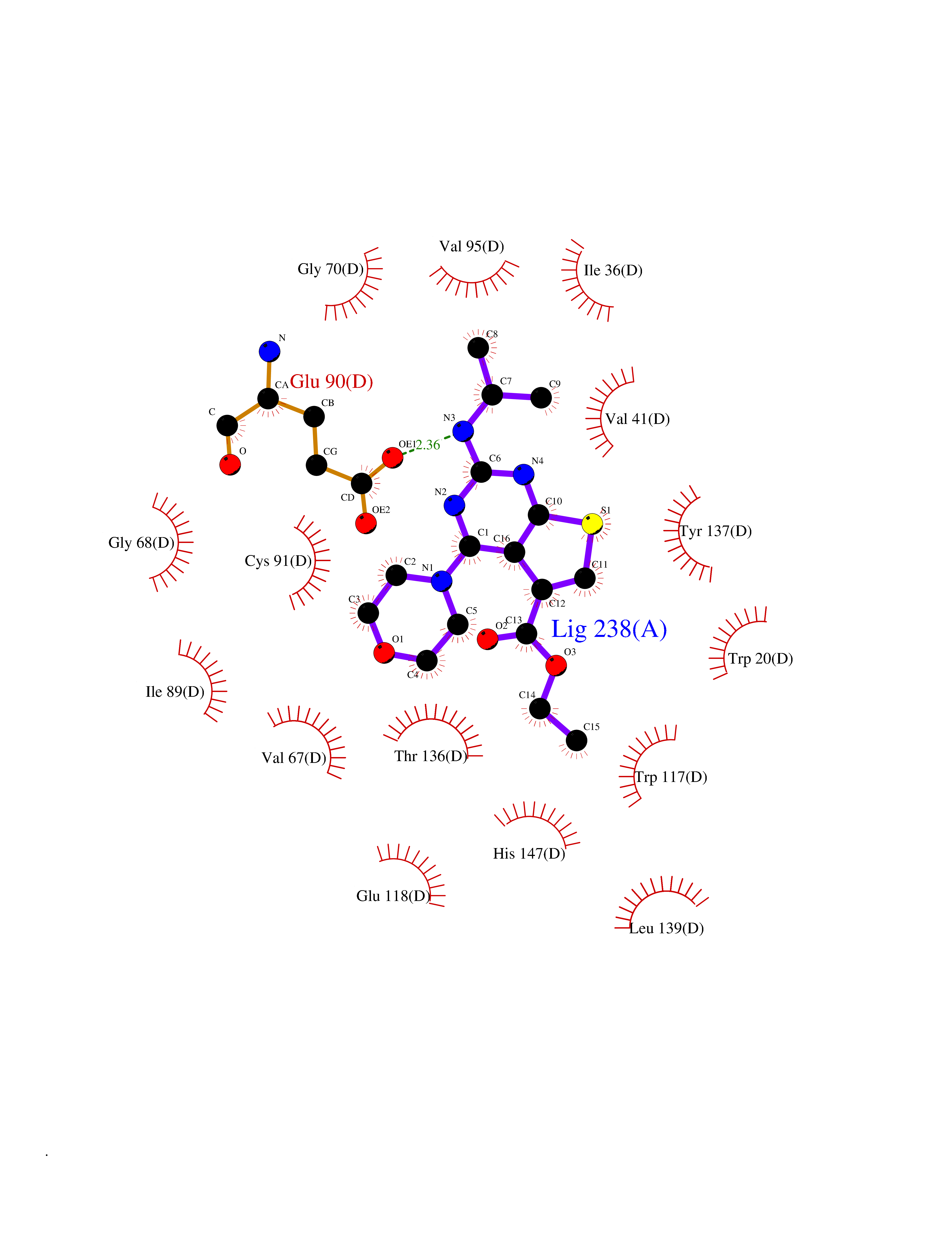 | Target general information Gen name OAZ1 Organism Homo sapiens (Human) Uniprot ID TTD ID NA Synonyms OAZ Protein family ODC antizyme family Biochemical class Lyase / lyase inhibitor Function Ornithine decarboxylase inhibitor activity. Related diseases LIMK1 is located in the Williams-Beuren syndrome (WBS) critical region. WBS results from a hemizygous deletion of several genes on chromosome 7q11.23, thought to arise as a consequence of unequal crossing over between highly homologous low-copy repeat sequences flanking the deleted region. Drugs (DrugBank ID) DB00129 Interacts with P30556 EC number NA Uniprot keywords 3D-structure; Polyamine biosynthesis; Proteomics identification; Reference proteome; Ribosomal frameshifting; Transport Protein physicochemical properties Chain ID B Molecular weight (Da) 55126.7 Length 492 Aromaticity 0.11 Instability index 46.89 Isoelectric point 6.19 Charge (pH=7) -3.86 3D Binding mode Sequence TAKDILDQKINEKDAFYVADLGDILKKHLRWLKALPRVTPFYAVKCNDSKAIVKTLAATGTGFDCASKTEIQLVQSLGVPPERIIYANPCKQVSQIKYAANNGVQMMTFDSEVELMKVARAHPKAKLVLRIATDDSCRLSVKFGATLRTSRLLLERAKELNIDVVGVSFHVGSGCTDPETFVQAISDARCVFDMGAEVGFSMYLLDIGGGFPGSEDVKLKFEEITGVINPALDKYFPSDSGVRIIAEPGRYYVASAFTLAVNIIAMYYVNDGVYGSFNCILYDHAHVKPLLQKRPEKYYSSSIWGPTCDGLDRIVERCDLPEMHVGDWMLFENMGAYTVASTFNGFQRPTIYYVMSGPAWQLMQQFQFYSDDRLNVTEELTSNDKTRILNVQSRLTDAKRINWRTVLSGGSLYIEIPGGALPEGSKDSFAVLLEFAEEQLRADHVFICFHKNREDRAALLRTFSFLGFEIVRPGHPLVPKRPDACFMAYTFE Hydrogen bonds contact Hydrophobic contact | ||||