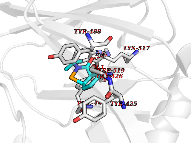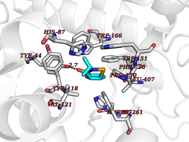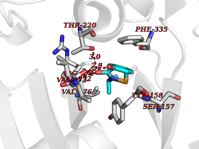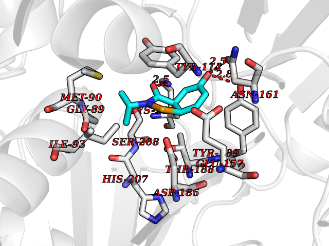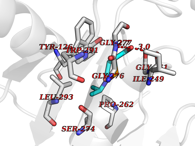 | Target general information Gen name cocE Organism Rhodococcus sp. (strain MB1 Bresler) Uniprot ID TTD ID NA Synonyms NA Protein family CocE/NonD hydrolase family Biochemical class Hydrolase Function Carboxylic ester hydrolase activity.Dipeptidyl-peptidase activity. Related diseases Thiamine metabolism dysfunction syndrome 5, episodic encephalopathy type (THMD5) [MIM:614458]: An autosomal recessive metabolic disorder due to an inborn error of thiamine metabolism. The phenotype is highly variable, but in general, affected individuals have onset in early childhood of acute encephalopathic episodes associated with increased serum and CSF lactate. These episodes result in progressive neurologic dysfunction manifest as gait disturbances, ataxia, dystonia, and spasticity, which in some cases may result in loss of ability to walk. Cognitive function is usually preserved, although mildly delayed development has been reported. These episodes are usually associated with infection and metabolic decompensation. Some patients may have recovery of some neurologic deficits. {ECO:0000269|PubMed:22152682}. The disease is caused by variants affecting the gene represented in this entry. Drugs (DrugBank ID) DB03793; DB01795 Interacts with NA EC number 3.1.1.84 Uniprot keywords 3D-structure; Cytoplasm; Direct protein sequencing; Hydrolase; Serine esterase Protein physicochemical properties Chain ID A Molecular weight (Da) 62127.9 Length 574 Aromaticity 0.09 Instability index 26.62 Isoelectric point 4.56 Charge (pH=7) -33.24 3D Binding mode Sequence VDGNYSVASNVMVPMRDGVRLAVDLYRPDADGPVPVLLVRNPYDKFDVFAWSTQSTNWLEFVRDGYAVVIQDTRGLFASEGEFVPHVDDEADAEDTLSWILEQAWCDGNVGMFGVSYLGVTQWQAAVSGVGGLKAIAPSMASADLYRAPWYGPGGALSVEALLGWSALIGTGLITSRSDARPEDAADFVQLAAILNDVAGAASVTPLAEQPLLGRLIPWVIDQVVDHPDNDESWQSISLFERLGGLATPALITAGWYDGFVGESLRTFVAVKDNADARLVVGPWSHSNLTGRNADRKFGIAATYPIQEATTMHKAFFDRHLRGETDALAGVPKVRLFVMGIDEWRDETDWPLPDTAYTPFYLGGSGAANTSTGGGTLSTSISGTESADTYLYDPADPVPSLGGTLLFHNGDNGPADQRPIHDRDDVLCYSTEVLTDPVEVTGTVSARLFVSSSAVDTDFTAKLVDVFPDGRAIALCDGIVRMRYRETLVNPTLIEAGEIYEVAIDMLATSNVFLPGHRIMVQVSSSNFPKYDRNSNTGGVIAREQLEEMCTAVNRIHRGPEHPSHIVLPIIKRK Hydrogen bonds contact Hydrophobic contact | ||||