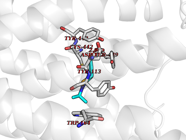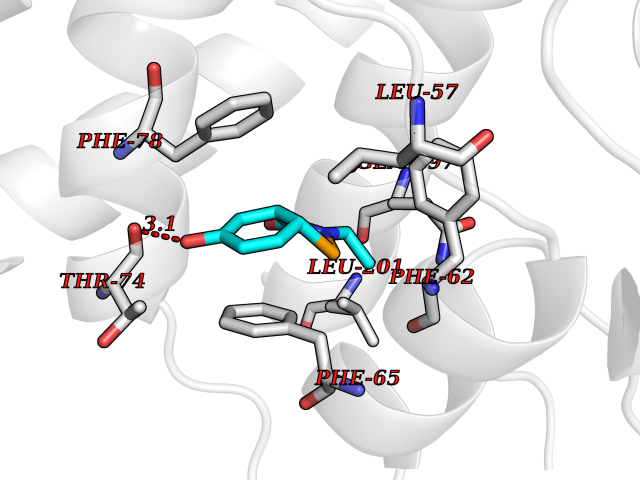 | Target general information Gen name CHRM4 Organism Homo sapiens (Human) Uniprot ID TTD ID Synonyms M4 receptor; CHRM4 Protein family G-protein coupled receptor 1 family, Muscarinic acetylcholine receptor subfamily, CHRM4 sub-subfamily Biochemical class GPCR rhodopsin Function The muscarinic acetylcholine receptor mediates various cellular responses, including inhibition of adenylate cyclase, breakdown of phosphoinositides and modulation of potassium channels through the action of G proteins. Primary transducing effect is inhibition of adenylate cyclase. Related diseases Leukodystrophy, hypomyelinating, 15 (HLD15) [MIM:617951]: An autosomal recessive disorder characterized by hypomyelinating leukodystrophy with thinning of the corpus callosum. Clinical features include motor and cognitive impairment appearing in the first or second decade of life, dystonia, ataxia, spasticity, and dysphagia. Most patients develop severe optic atrophy, and some have hearing loss. {ECO:0000269|PubMed:29576217}. The disease may be caused by variants affecting the gene represented in this entry. Drugs (DrugBank ID) DB03128; DB08897; DB05752; DB00321; DB00543; DB01238; DB14185; DB00572; DB00767; DB01019; DB00835; DB00411; DB01239; DB00568; DB00363; DB00496; DB01151; DB09167; DB01142; DB00366; DB09194; DB06702; DB00986; DB06787; DB11181; DB00725; DB00424; DB00458; DB01625; DB01221; DB00408; DB00934; DB00454; DB06709; DB00940; DB01403; DB00340; DB00622; DB00540; DB00334; DB00715; DB01085; DB00387; DB01069; DB00777; DB12278; DB01224; DB11855; DB13581; DB00747; DB01591; DB00342; DB11235; DB01409; DB01036; DB00376; DB09089; DB00726; DB00809; DB09076; DB09185; DB00246 Interacts with NA EC number NA Uniprot keywords 3D-structure; Cell membrane; Disulfide bond; G-protein coupled receptor; Glycoprotein; Membrane; Phosphoprotein; Postsynaptic cell membrane; Proteomics identification; Receptor; Reference proteome; Synapse; Transducer; Transmembrane; Transmembrane helix Protein physicochemical properties Chain ID A,B Molecular weight (Da) 32545.4 Length 287 Aromaticity 0.14 Instability index 30.63 Isoelectric point 9.34 Charge (pH=7) 11.91 3D Binding mode Sequence HNRYETVEMVFIATVTGSLSLVTVVGNILVMLSIKVNRQLQTVNNYFLFSLACADLIIGAFSMNLYTVYIIKGYWPLGAVVCDLWLALDYVVSNASVMNLLIISFDRYFCVTKPLTYPARRTTKMAGLMIAAAWVLSFVLWAPAILFWQFVVGKRTVPDNQCFIQFLSNPAVTFGTAIAAFYLPVVIMTVLYIHISLASRSRVQMAARERKVTRTIFAILLAFILTWTPYNVMVLVNTFCQSCIPDTVWSIGYWLCYVNSTINPACYALCNATFKKTFRHLLLCQYR Hydrogen bonds contact Hydrophobic contact | ||||