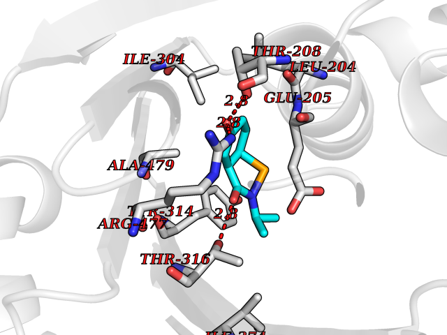 | Target general information Gen name Pseudo mdeA Organism Pseudomonas putida (Arthrobacter siderocapsulatus) Uniprot ID TTD ID Synonyms Pseudo MGL; L-methionine gamma-lyase; L-methioninase; Homocysteine desulfhydrase Protein family Trans-sulfuration enzymes family, L-methionine gamma-lyase subfamily Biochemical class Carbon-sulfur lyases Function Catalyzes the alpha,gamma-elimination of L-methionine to produce methanethiol, 2-oxobutanoate and ammonia. Is involved in L-methionine catabolism. In fact, shows a multicatalytic function since it also catalyzes gamma-replacement of L-methionine with thiol compounds, alpha,gamma-elimination and gamma-replacement reactions of L-homocysteine and its S-substituted derivatives, O-substituted-L-homoserines and DL-selenomethionine, and, to a lesser extent, alpha,beta-elimination and beta-replacement reactions of L-cysteine, S-methyl-L-cysteine, and O-acetyl-L-serine. Also catalyzes deamination and gamma-addition reactions of L-vinylglycine. Thus, the enzyme is able to cleave C-S, C-Se, and C-O bonds of sulfur, selenium, and oxygen amino acids, respectively. Related diseases Lecithin-cholesterol acyltransferase deficiency (LCATD) [MIM:245900]: A disorder of lipoprotein metabolism characterized by inadequate esterification of plasmatic cholesterol. Two clinical forms are recognized: complete LCAT deficiency and fish-eye disease. LCATD is generally referred to the complete form which is associated with absence of both alpha and beta LCAT activities resulting in esterification anomalies involving both HDL (alpha-LCAT activity) and LDL (beta-LCAT activity). It causes a typical triad of diffuse corneal opacities, target cell hemolytic anemia, and proteinuria with renal failure. {ECO:0000269|PubMed:11423760, ECO:0000269|PubMed:12957688, ECO:0000269|PubMed:15994445, ECO:0000269|PubMed:16051254, ECO:0000269|PubMed:16216249, ECO:0000269|PubMed:1681161, ECO:0000269|PubMed:1859405, ECO:0000269|PubMed:2370048, ECO:0000269|PubMed:7607641, ECO:0000269|PubMed:7711728, ECO:0000269|PubMed:8318557, ECO:0000269|PubMed:8432868, ECO:0000269|PubMed:8807342, ECO:0000269|PubMed:9007616, ECO:0000269|PubMed:9741700}. The disease is caused by variants affecting the gene represented in this entry.; DISEASE: Fish-eye disease (FED) [MIM:136120]: A disorder of lipoprotein metabolism due to partial lecithin-cholesterol acyltransferase deficiency that affects only alpha-LCAT activity. FED is characterized by low plasma HDL and corneal opacities due to accumulation of cholesterol deposits in the cornea ('fish-eye'). {ECO:0000269|PubMed:1516702, ECO:0000269|PubMed:1571050, ECO:0000269|PubMed:15994445, ECO:0000269|PubMed:1737840, ECO:0000269|PubMed:21901787, ECO:0000269|PubMed:8620346, ECO:0000269|PubMed:9261271}. The disease is caused by variants affecting the gene represented in this entry. Drugs (DrugBank ID) DB04083 Interacts with NA EC number EC 4.4.1.11 Uniprot keywords 3D-structure; Direct protein sequencing; Lyase; Pyridoxal phosphate Protein physicochemical properties Chain ID A,C Molecular weight (Da) 85234.4 Length 796 Aromaticity 0.07 Instability index 37.1 Isoelectric point 6.21 Charge (pH=7) -11.34 3D Binding mode Sequence MHGSNKLPGFATRAIHHGYDPQDHGGALVPPVYQTATFTFPTVEYGAACFAGEQAGHFYSRISNPTLNLLEARMASLEGGEAGLALASGMGAITSTLWTLLRPGDEVLLGNTLYGCTFAFLHHGIGEFGVKLRHVDMADLQALEAAMTPATRVIYFESPANPNMHMADIAGVAKIARKHGATVVVDNTYCTPYLQRPLELGADLVVHSATKYLSGHGDITAGIVVGSQALVDRIRLQGLKDMTGAVLSPHDAALLMRGIKTLNLRMDRHCANAQVLAEFLARQPQVELIHYPGLASFPQYTLARQQMSQPGGMIAFELKGGIGAGRRFMNALQLFSRAVSLGDAESLAQHPASMTHSSYTPEERAHYGISEGLVRLSVGLEDIDDLLADVQQALKASAMHGSNKLPGFATRAIHHGYDPQDHGGALVPPVYQTATFTFPTVEYGAACFAGEQAGHFYSRISNPTLNLLEARMASLEGGEAGLALASGMGAITSTLWTLLRPGDEVLLGNTLYGCTFAFLHHGIGEFGVKLRHVDMADLQALEAAMTPATRVIYFESPANPNMHMADIAGVAKIARKHGATVVVDNTYCTPYLQRPLELGADLVVHSATKYLSGHGDITAGIVVGSQALVDRIRLQGLKDMTGAVLSPHDAALLMRGIKTLNLRMDRHCANAQVLAEFLARQPQVELIHYPGLASFPQYTLARQQMSQPGGMIAFELKGGIGAGRRFMNALQLFSRAVSLGDAESLAQHPASMTHSSYTPEERAHYGISEGLVRLSVGLEDIDDLLADVQQALKASA Hydrogen bonds contact Hydrophobic contact | ||||