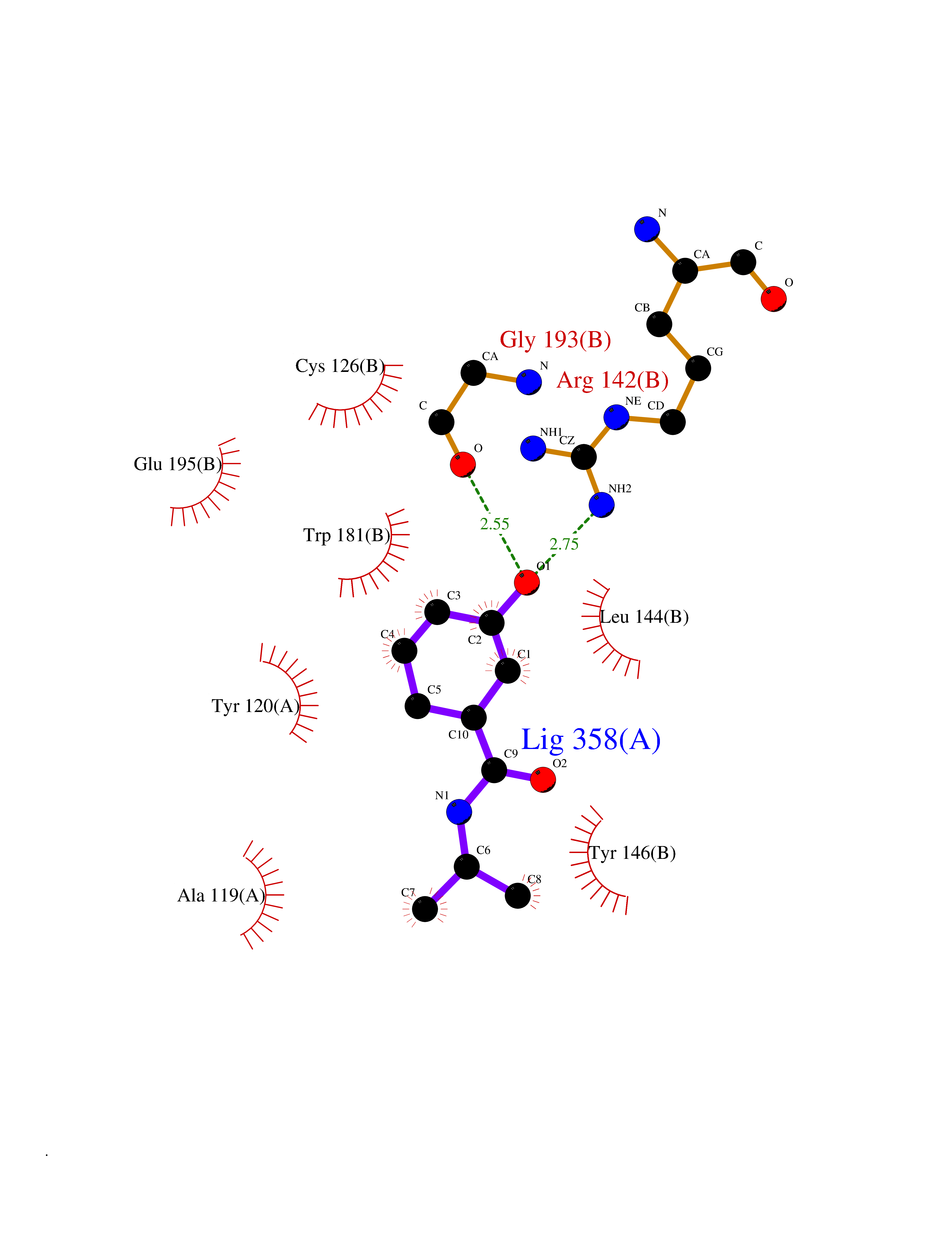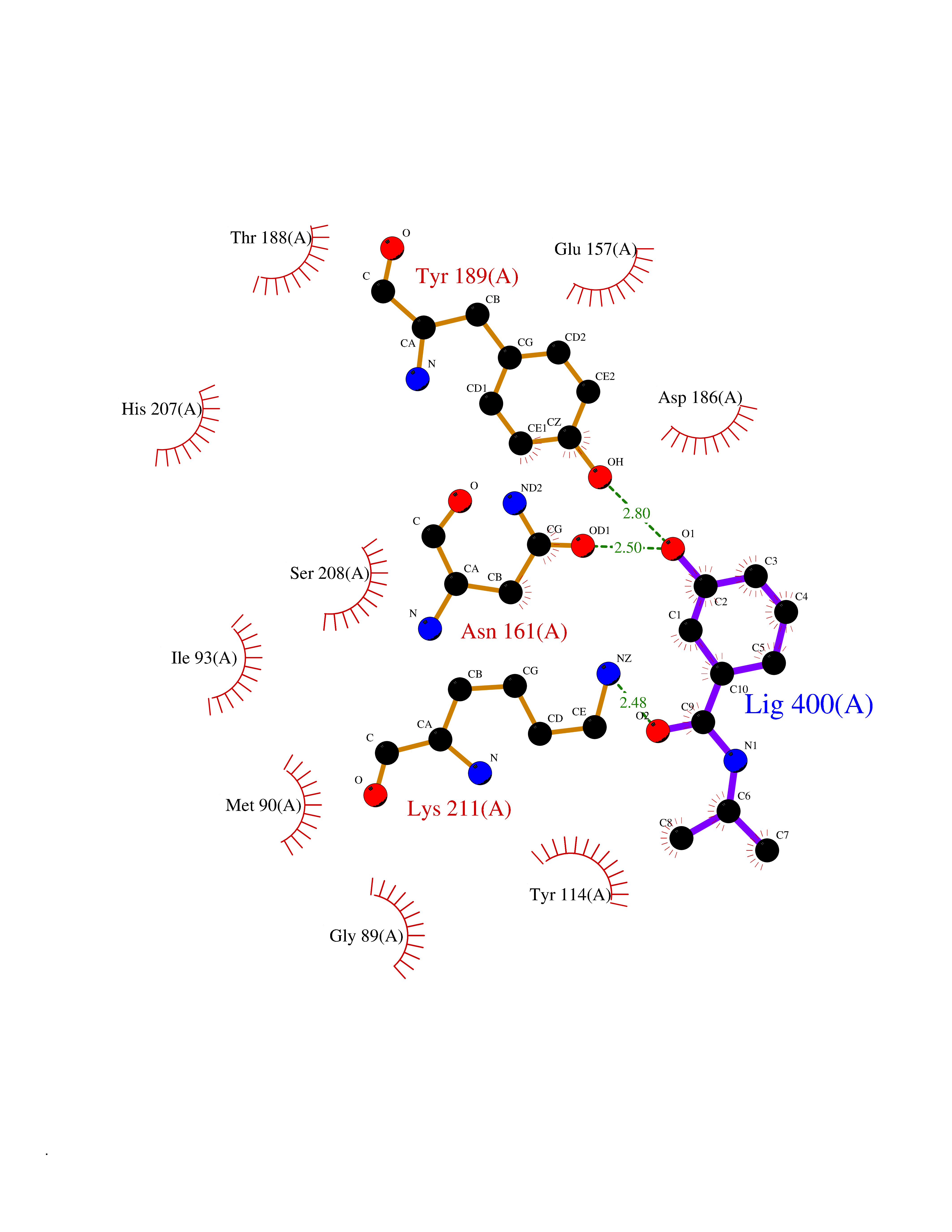 | Target general information Gen name DBH Organism Homo sapiens (Human) Uniprot ID TTD ID NA Synonyms NA Protein family Copper type II ascorbate-dependent monooxygenase family Biochemical class Oxidoreductase Function Catalytic activity.Copper ion binding.Dopamine beta-monooxygenase activity.L-ascorbic acid binding. Related diseases Orthostatic hypotension 1 (ORTHYP1) [MIM:223360]: A form of orthostatic hypotension due to congenital dopamine beta-hydroxylase deficiency. Orthostatic hypotension, also known as postural hypotension, is a finding defined as a 20-mm Hg decrease in systolic pressure or a 10-mm Hg decrease in diastolic pressure occurring 3 minutes after a person has risen from supine to standing. Symptoms include dizziness, blurred vision, and sometimes syncope. ORTHYP1 is an autosomal recessive condition apparent from infancy or early childhood and characterized by low plasma and urinary levels of norepinephrine and epinephrine, and episodic hypoglycemia. {ECO:0000269|PubMed:11857564}. The disease is caused by variants affecting the gene represented in this entry. Drugs (DrugBank ID) DB00126; DB06774; DB09130; DB05394; DB00822; DB00988; DB00968; DB00550 Interacts with P00352; P63010-2; Q04656; Q8WUW1; Q9UNS2; Q71DI3; P61978; Q9Y2M5; Q92876; P08727; Q14693; P0DPK4; Q6GQQ9-2; P27986-2; Q9ULX5; Q96D59; Q8N6K7-2; Q9GZS3; Q8IUW3; Q86WT6-2 EC number 1.14.17.1 Uniprot keywords 3D-structure; Catecholamine biosynthesis; Copper; Cytoplasmic vesicle; Direct protein sequencing; Disease variant; Disulfide bond; Glycoprotein; Membrane; Metal-binding; Monooxygenase; Oxidoreductase; Proteomics identification; Reference proteome; Secreted; Signal-anchor; Transmembrane; Transmembrane helix; Vitamin C Protein physicochemical properties Chain ID A,B Molecular weight (Da) 123694 Length 1094 Aromaticity 0.1 Instability index 51.85 Isoelectric point 5.84 Charge (pH=7) -24.5 3D Binding mode Sequence PLPYHIPLDPEGSLELSWNVSYTQEAIHFQLLVRRLKAGVLFGMSDRGELENADLVVLWTDGDAYFADAWSDQKGQIHLDPQQDYQLLQVQRTPEGLTLLFKRPFGTCDPKDYLIEDGTVHLVYGILEEPFRSLEAINGSGLQMGLQRVQLLKPNIPEPELPSDACTMEVQAPNIQIPSQETTYWCYIKELPKGFSRHHIIKYEPIVTKGNEALVHHMEVFQCAPEMDSVPHFSGPCDSKMKPDRLNYCRHVLAAWALGAKAFYYPEEAGLAFGGPGSSRYLRLEVHYHNPLVIEGRNDSSGIRLYYTAKLRRFNAGIMELGLVYTPVMAIPPRETAFILTGYCTDKCTQLALPPSGIHIFASQLHTHLTGRKVVTVLVRDGREWEIVNQDNHYSPHFQEIRMLKKVVSVHPGDVLITSCTYNTEDRELATVGGFGILEEMCVNYVHYYPQTQLELCKSAVDAGFLQKYFHLINRFNNEDVCTCPQASVSQQFTSVPWNSFNRDVLKALYSFAPISMHCNKSSAVRFQGEWNLQPLPKVISTLEEPTVVSPLPYHIPLDPEGSLELSWNVSYTQEAIHFQLLVRRLKAGVLFGMSDRGELENADLVVLAYFADAWSDQKGQIHLDPQQDYQLLQVQRTPEGLTLLFKRPFGTCDPKDYLIEDGTVHLVYGILEEPFRSLEAINGSGLQMGLQRVQLLKPNIPEPELPSDACTMEVQAPNIQIPSQETTYWCYIKELPKGFSRHHIIKYEPIVTKGNEALVHHMEVFQCAPEVPHFSGPCDSKMLNYCRHVLAAWALGAKAFYYPEEAGLAFGGPGSSRYLRLEVHYHNPLVIEGRNDSSGIRLYYTAKLRRFNAGIMELGLVYTPVMAIPPRETAFILTGYCTDKCTQLALPPSGIHIFASQLHTHLTGRKVVTVLVRDGREWEIVNQDNHYSPHFQEIRMLKKVVSVHPGDVLITSCTYNTEDRELATVGGFGILEEMCVNYVHYYPQTQLELCKSAVDAGFLQKYFHLINRFNNEDVCTCPQASVSQQFTSVPWNSFNRDVLKALYSFAPISMHCNKSSAVRFQGEWNLQPLPKVISTLEEPTPQCVVSIGG Hydrogen bonds contact Hydrophobic contact | ||||