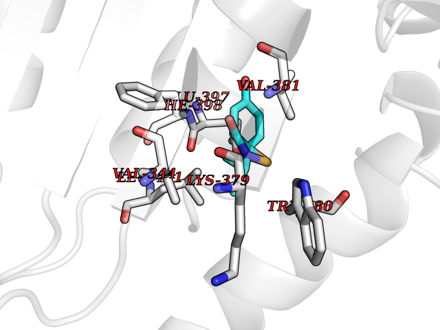 | Target general information Gen name TAT Organism Homo sapiens (Human) Uniprot ID TTD ID NA Synonyms NA Protein family Class-I pyridoxal-phosphate-dependent aminotransferase family Biochemical class Transferase Function Amino acid binding.L-phenylalanine:2-oxoglutarate aminotransferase activity.L-tyrosine:2-oxoglutarate aminotransferase activity.Pyridoxal phosphate binding. Related diseases Tyrosinemia 2 (TYRSN2) [MIM:276600]: An inborn error of metabolism characterized by elevations of tyrosine in the blood and urine, and oculocutaneous manifestations. Typical features include palmoplantar keratosis, painful corneal ulcers, and intellectual disability. {ECO:0000269|PubMed:1357662}. The disease is caused by variants affecting the gene represented in this entry. Drugs (DrugBank ID) DB00142; DB00120; DB00114; DB00135 Interacts with P15104; P28799; P28799-2; P17735; Q05086; Q05086-3 EC number 2.6.1.5 Uniprot keywords 3D-structure; Acetylation; Aminotransferase; Disease variant; Intellectual disability; Palmoplantar keratoderma; Phenylalanine catabolism; Phosphoprotein; Proteomics identification; Pyridoxal phosphate; Reference proteome; Transferase; Tyrosine catabolism Protein physicochemical properties Chain ID A,B Molecular weight (Da) 42209.5 Length 380 Aromaticity 0.08 Instability index 51.79 Isoelectric point 5.29 Charge (pH=7) -10.66 3D Binding mode Sequence VKPNPNKTMISLSIGDPTVFGNLPTDPEVTQAMKDALDSGKYNGYAPSIGFLSSREEIASYYHCPEAPLEAKDVILTSGCSQAIDLCLAVLANPGQNILVPRPGFSLYKTLAESMGIEVKLYNLLPEKSWEIDLKQLEYLIDEKTACLIVNNPSNPCGSVFSKRHLQKILAVAARQCVPILADEIYGDMVFSDCKYEPLATLSTDVPILSCGGLAKRWLVPGWRLGWILIHDRRDIFGNEIRDGLVKLSQRILGPCTIVQGALKSILCRTPGEFYHNTLSFLKSNADLCYGALAAIPGLRPVRPSGAMYLMVGIEMEHFPEFENDVEFTERLVAEQSVHCLPATCFEYPNFIRVVITVPEVMMLEACSRIQEFCEQHYHC Hydrogen bonds contact Hydrophobic contact | ||||