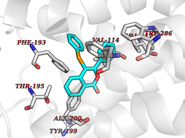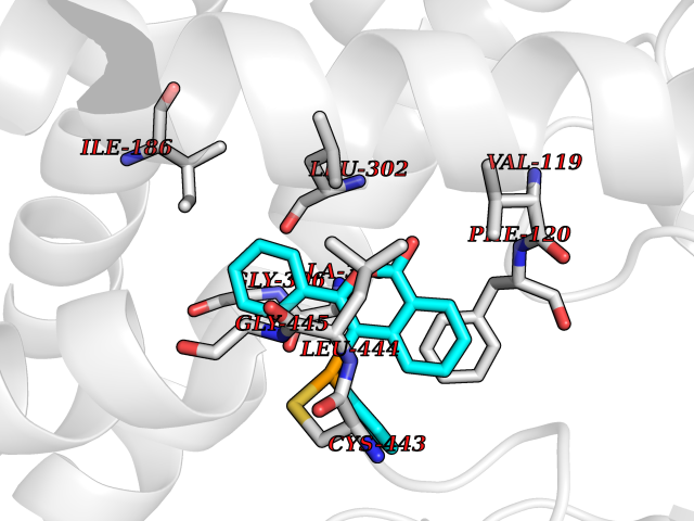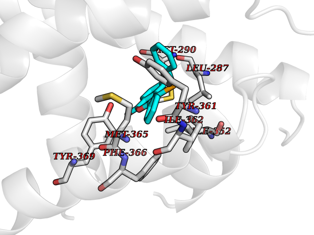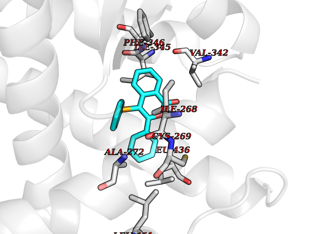 Target general information Gen name CYP2D6 Organism Homo sapiens (Human) Uniprot ID TTD ID Synonyms P450-DB1; Cytochrome P450-DB1; Cytochrome P450 2D6; CYPIID6; CYP2DL1 Protein family Cytochrome P450 family Biochemical class Paired donor oxygen oxidoreductase Function It is involved in the metabolism of drugs such as antiarrhythmics, adrenoceptor antagonists, and tricyclic antidepressants. Responsible for the metabolism of many drugs and environmental chemicals that it oxidizes. Related diseases A chromosomal aberration involving BCL2 has been found in chronic lymphatic leukemia. Translocation t(14;18)(q32;q21) with immunoglobulin gene regions. BCL2 mutations found in non-Hodgkin lymphomas carrying the chromosomal translocation could be attributed to the Ig somatic hypermutation mechanism resulting in nucleotide transitions. {ECO:0000269|PubMed:2875799, ECO:0000269|PubMed:3285301}. Drugs (DrugBank ID) DB01562; DB01472; DB14010; DB12001; DB05812; DB01193; DB00316; DB15568; DB00918; DB06203; DB00866; DB01424; DB01118; DB00321; DB00381; DB00613; DB00543; DB00182; DB00701; DB11785; DB01435; DB01429; DB01274; DB01238; DB14185; DB09204; DB11638; DB06216; DB00637; DB11586; DB00335; DB00289; DB01076; DB00972; DB04957; DB09013; DB16703; DB01086; DB06770; DB01244; DB15982; DB00195; DB01295; DB12236; DB01128; DB04889; DB00810; DB13975; DB08807; DB00188; DB09128; DB12151; DB12752; DB06726; DB00297; DB08808; DB00921; DB01156; DB00490; DB09173; DB00201; DB09061; DB14737; DB06016; DB00521; DB01136; DB00482; DB04846; DB00439; DB00185; DB00608; DB01114; DB00477; DB00356; DB01410; DB01166; DB00501; DB01012; DB00568; DB00604; DB00215; DB12499; DB00283; DB04920; DB14025; DB00349; DB00845; DB01242; DB00575; DB13508; DB00257; DB00363; DB09065; DB05239; DB00907; DB00318; DB11672; DB14635; DB00924; DB00091; DB11963; DB06292; DB04884; DB00496; DB01264; DB09183; DB04840; DB00705; DB06512; DB01151; DB06700; DB16650; DB12161; DB13679; DB09555; DB01191; DB00633; DB01576; DB00514; DB00647; DB11994; DB01551; DB00343; DB01093; DB01075; DB00757; DB01184; DB00843; DB09167; DB00590; DB01142; DB00997; DB00470; DB04855; DB00476; DB00625; DB11979; DB00216; DB15444; DB09039; DB13874; DB01228; DB06735; DB11718; DB00494; DB13757; DB00751; DB00530; DB13443; DB01175; DB06678; DB00187; DB00330; DB01466; DB01628; DB01590; DB12500; DB01023; DB00574; DB06702; DB12265; DB01195; DB04841; DB00472; DB00623; DB01095; DB00176; DB00983; DB02703; DB15149; DB00674; DB05087; DB00317; DB08909; DB00986; DB01218; DB00502; DB00956; DB01611; DB00557; DB09053; DB01177; DB04946; DB00619; DB00458; DB08952; DB00224; DB06370; DB13293; DB04818; DB16200; DB11633; DB06636; DB00951; DB11757; DB00602; DB09570; DB01026; DB00598; DB12212; DB00448; DB11732; DB16217; DB09078; DB00528; DB12070; DB09351; DB01210; DB08918; DB00281; DB04948; DB01206; DB00836; DB01601; DB00455; DB04871; DB09195; DB06708; DB04829; DB09238; DB00934; DB14921; DB00737; DB14009; DB09224; DB00170; DB00454; DB00532; DB13530; DB06691; DB01071; DB00933; DB01577; DB00333; DB00763; DB01403; DB01028; DB09241; DB01214; DB01233; DB00264; DB00379; DB06148; DB01388; DB01110; DB00211; DB01454; DB06595; DB00834; DB00805; DB08893; DB00370; DB12523; DB01171; DB00745; DB14011; DB09049; DB00731; DB04861; DB01149; DB00220; DB09048; DB00238; DB00627; DB00622; DB00699; DB02701; DB00184; DB01115; DB04868; DB12005; DB00540; DB00334; DB14881; DB00338; DB00904; DB11130; DB04911; DB01173; DB11837; DB04938; DB01096; DB01580; DB01062; DB00497; DB06412; DB01192; DB01267; DB00377; DB06603; DB00715; DB06589; DB00022; DB01359; DB00738; DB01074; DB08922; DB00850; DB03783; DB00780; DB00914; DB00252; DB05316; DB01100; DB00960; DB00592; DB01621; DB04951; DB17472; DB11642; DB08901; DB01297; DB15822; DB01087; DB01035; DB00433; DB00396; DB01131; DB00420; DB01069; DB09288; DB01182; DB00571; DB04216; DB01224; DB00908; DB00468; DB01129; DB00863; DB00243; DB00234; DB14761; DB00409; DB06506; DB02709; DB11855; DB13174; DB11753; DB08864; DB14840; DB00734; DB12693; DB00503; DB00953; DB09291; DB15119; DB00412; DB05271; DB12332; DB11614; DB06654; DB01232; DB01037; DB06144; DB01104; DB00203; DB00641; DB01591; DB00398; DB12713; DB00489; DB06727; DB01323; DB09118; DB06820; DB06729; DB06608; DB11770; DB00675; DB00706; DB06204; DB06083; DB01079; DB12095; DB06287; DB00857; DB00342; DB13775; DB04905; DB04844; DB11712; DB00277; DB00679; DB01623; DB00208; DB00373; DB01409; DB00932; DB06137; DB01036; DB05109; DB00193; DB00752; DB00656; DB12245; DB00726; DB00792; DB00209; DB15328; DB09076; DB13609; DB15091; DB11915; DB00862; DB08881; DB00285; DB00661; DB06217; DB06684; DB09185; DB00570; DB00361; DB11739; DB09068; DB01392; DB00549; DB15688; DB00425; DB01624 Interacts with NA EC number EC 1.14.14.- Uniprot keywords 3D-structure; Alternative splicing; Cholesterol metabolism; Endoplasmic reticulum; Fatty acid metabolism; Heme; Iron; Lipid metabolism; Membrane; Metal-binding; Microsome; Monooxygenase; Oxidoreductase; Proteomics identification; Reference proteome; Steroid metabolism; Sterol metabolism Protein physicochemical properties Chain ID A Molecular weight (Da) 51898.1 Length 464 Aromaticity 0.09 Instability index 43.83 Isoelectric point 6.76 Charge (pH=7) -0.99 3D Binding mode Sequence GKLPPGPLPLPGLGNLLFQNTPYCFDQLRRRFGDVFSLQLAWTPVVVLNGLAAVREALVTHGEDTADRPPVPITQILGFGPRSQGVFLARYGPAWREQRRFSVSTLRNLGLGKKSLEQWVTEEAACLCAAFANHSGRPFRPNGLLDKAVSNVIASLTCGRRFEYDDPRFLRLLDLAQEGLKEESGFLREVLNAVPVLLHIPALAGKVLRFQKAFLTQLDELLTEHRMTWDPAQPPRDLTEAFLAEMEKAKGNPESSFNDENLRIVVADLFSAGMVTTSTTLAWGLLLMILHPDVQRRVQQEIDDVIGQVRRPEMGDQAHMPYTTAVIHEVQRFGDIVPLGVTHMTSRDIEVQGFRIPKGTTLITNLSSVLKDEAVWEKPFRFHPEHFLDAQGHFVKPEAFLPFSAGRRACLGEPLARMELFLFFTSLLQHFSFSVPTGQPRPSHHGVFAFLVSPSPYELCAVPR Hydrogen bonds contact Hydrophobic contact | ||||