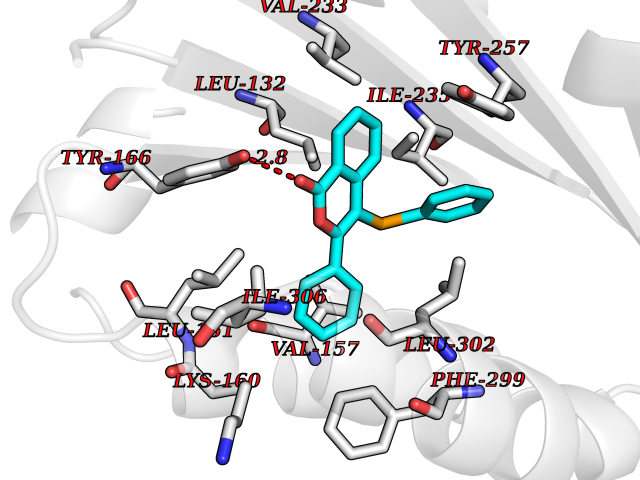 Target general information Gen name ESR2 Organism Homo sapiens (Human) Uniprot ID TTD ID Synonyms Oestrogen receptor beta; Nuclear receptor subfamily 3 group A member 2; NR3A2; Erbeta; ESTRB; ER-beta; Beta-1 Protein family Nuclear hormone receptor family, NR3 subfamily Biochemical class Nuclear hormone receptor Function Binds estrogens with an affinity similar to that of ESR1, and activates expression of reporter genes containing estrogen response elements (ERE) in an estrogen-dependent manner. Isoform beta-cx lacks ligand binding ability and has no or only very low ere binding activity resulting in the loss of ligand-dependent transactivation ability. DNA-binding by ESR1 and ESR2 is rapidly lost at 37 degrees Celsius in the absence of ligand while in the presence of 17 beta-estradiol and 4-hydroxy-tamoxifen loss in DNA-binding at elevated temperature is more gradual. Nuclear hormone receptor. Related diseases Ovarian dysgenesis 8 (ODG8) [MIM:618187]: An autosomal dominant form of ovarian dysgenesis, a disorder characterized by lack of spontaneous pubertal development, primary amenorrhea, uterine hypoplasia, and hypergonadotropic hypogonadism as a result of streak gonads. {ECO:0000269|PubMed:30113650}. The disease may be caused by variants affecting the gene represented in this entry. Drugs (DrugBank ID) DB07638; DB07036; DB08020; DB07757; DB07119; DB07702; DB07032; DB07009; DB13869; DB07236; DB07230; DB04020; DB07150; DB06937; DB03882; DB07198; DB06927; DB04468; DB06249; DB06401; DB01878; DB05882; DB00286; DB00255; DB11219; DB11674; DB06875; DB07933; DB12235; DB00783; DB13952; DB13953; DB13954; DB13955; DB13956; DB01196; DB04573; DB14641; DB00655; DB04574; DB09086; DB15690; DB01645; DB03860; DB06202; DB05052; DB03467; DB09535; DB13310; DB01428; DB02983; DB02746; DB01708; DB06832; DB00396; DB02757; DB04216; DB00481; DB00421; DB00675; DB05966; DB01108 Interacts with P38398; P29279; P00533; P03372-1; O43524; O15162; P53041; Q16881-4; Q60974; Q6P9F0; O95273; A8MQ03; P49639; O00505; Q5T749; Q3LI66; Q99750; Q8NI38; O15162; Q12800 EC number NA Uniprot keywords 3D-structure; Activator; Alternative splicing; Disease variant; DNA-binding; Lipid-binding; Metal-binding; Nucleus; Phosphoprotein; Proteomics identification; Receptor; Reference proteome; Steroid-binding; Transcription; Transcription regulation; Zinc; Zinc-finger Protein physicochemical properties Chain ID A,B Molecular weight (Da) 27567.6 Length 244 Aromaticity 0.05 Instability index 40.74 Isoelectric point 7.9 Charge (pH=7) 1.72 3D Binding mode Sequence RHKILHRLLQALSPEQLVLTLLEAEPPHVLISRPSAPFTEASMMMSLTKLADKELVHMISWAKKIPGFVELSLFDQVRLLESCWMEVLMMGLMWRSIDHPGKLIFAPDLVLDRDEGKCVEGILEIFDMLLATTSRFRELKLQHKEYLCVKAMILLNSSMYPLVTATDSSRKLAHLLNAVTDALVWVIAKSGISSQQQSMRLANLLMLLSHVRHASNKGMEHLLNMKCKNVVPVXDLLLEMLNAH Hydrogen bonds contact Hydrophobic contact | ||||