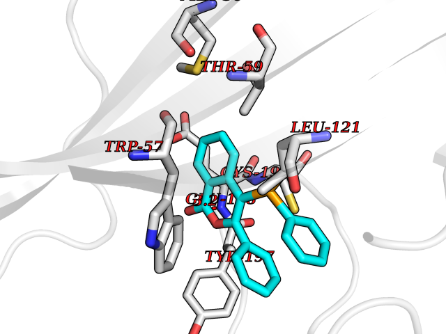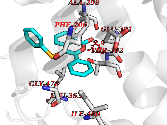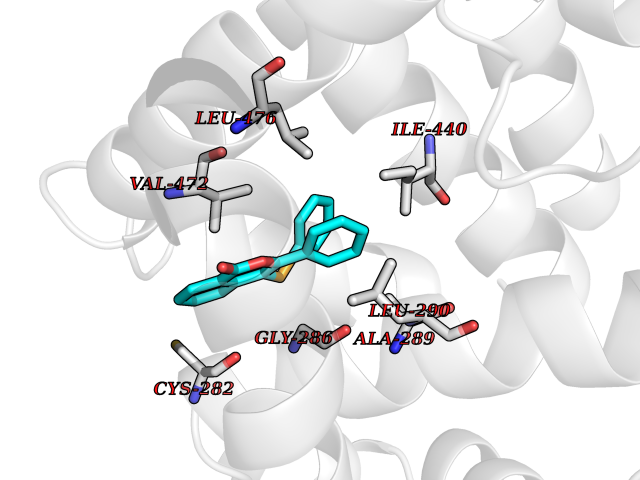 Target general information Gen name CYP2B6 Organism Homo sapiens (Human) Uniprot ID TTD ID Synonyms Cytochrome P450 IIB1; CYPIIB6; 1,4-cineole 2-exo-monooxygenase Protein family Cytochrome P450 family Biochemical class Paired donor oxygen oxidoreductase Function In liver microsomes, this enzyme is involved in an NADPH-dependent electron transport pathway. It oxidizes a variety of structurally unrelated compounds, including steroids, fatty acids, and xenobiotics. Acts as a 1,4-cineole 2-exo-monooxygenase. Cytochromes P450 are a group of heme-thiolate monooxygenases. Related diseases Aromatic L-amino-acid decarboxylase deficiency (AADCD) [MIM:608643]: An inborn error in neurotransmitter metabolism that leads to combined serotonin and catecholamine deficiency. It causes developmental and psychomotor delay, poor feeding, lethargy, ptosis, intermittent hypothermia, gastrointestinal disturbances. The onset is early in infancy and inheritance is autosomal recessive. {ECO:0000269|PubMed:14991824, ECO:0000269|PubMed:15079002, ECO:0000269|Ref.12}. The disease is caused by variants affecting the gene represented in this entry. Drugs (DrugBank ID) DB08369; DB02974; DB11932; DB12001; DB14973; DB15568; DB00321; DB00381; DB00701; DB01435; DB00714; DB06413; DB06697; DB13132; DB11586; DB01076; DB15011; DB00972; DB08822; DB13997; DB04975; DB01086; DB00865; DB00443; DB04794; DB12151; DB01194; DB05541; DB01222; DB01156; DB09061; DB14737; DB00564; DB06119; DB00439; DB00568; DB00604; DB00515; DB12499; DB00349; DB06470; DB00758; DB01559; DB00257; DB01394; DB05219; DB08865; DB11672; DB14635; DB04664; DB00531; DB08912; DB01151; DB16650; DB01234; DB14649; DB04856; DB00514; DB00829; DB00586; DB01184; DB00997; DB00470; DB00476; DB00625; DB15444; DB13874; DB11718; DB08899; DB00751; DB11823; DB00655; DB00898; DB01466; DB00574; DB12265; DB01544; DB00472; DB01095; DB00176; DB01320; DB05087; DB00986; DB01159; DB00956; DB00741; DB09054; DB01181; DB00458; DB00762; DB11633; DB06636; DB00753; DB11757; DB01167; DB14568; DB09570; DB01221; DB06738; DB01026; DB11951; DB09078; DB12070; DB05667; DB00281; DB00836; DB01601; DB00455; DB04871; DB12130; DB09280; DB00772; DB09238; DB14921; DB14009; DB01043; DB00170; DB00454; DB00532; DB04817; DB00333; DB00763; DB01028; DB09241; DB00849; DB00959; DB06710; DB00379; DB06148; DB01110; DB06595; DB16236; DB00745; DB11763; DB00220; DB00238; DB00622; DB00184; DB01115; DB04868; DB12005; DB00435; DB00957; DB09074; DB16267; DB11632; DB01173; DB11837; DB04938; DB05467; DB00715; DB08883; DB01074; DB04930; DB12978; DB03575; DB01174; DB00252; DB13941; DB17472; DB11642; DB06209; DB14631; DB00635; DB01069; DB00818; DB00908; DB00481; DB08896; DB11853; DB16826; DB02709; DB00615; DB01045; DB11753; DB01201; DB08864; DB00503; DB06176; DB00296; DB00412; DB00778; DB01037; DB06739; DB01104; DB01236; DB00641; DB00398; DB15569; DB12548; DB09118; DB06729; DB01138; DB00675; DB12020; DB12095; DB00231; DB00624; DB13943; DB13944; DB13946; DB11712; DB01041; DB09499; DB04572; DB08816; DB00208; DB06137; DB00193; DB00755; DB12245; DB12808; DB00197; DB12255; DB00313; DB11613; DB08881; DB00661; DB09185; DB11739; DB00582; DB09068; DB14975; DB15035 Interacts with NA EC number EC 1.14.13.- Uniprot keywords 3D-structure; Alternative splicing; Endoplasmic reticulum; Heme; Iron; Lipid metabolism; Membrane; Metal-binding; Microsome; Monooxygenase; NADP; Oxidoreductase; Phosphoprotein; Proteomics identification; Reference proteome Protein physicochemical properties Chain ID A Molecular weight (Da) 53293 Length 465 Aromaticity 0.12 Instability index 38.79 Isoelectric point 8.63 Charge (pH=7) 5.35 3D Binding mode Sequence GKLPPGPRPLPLLGNLLQMDRRGLLKSFLRFREKYGDVFTVHLGPRPVVMLCGVEAIREALVDKAEAFSGRGKIAMVDPFFRGYGVIFANGNRWKVLRRFSVTTMRDFGMGKRSVEERIQEEAQCLIEELRKSKGALMDPTFLFQSITANIICSIVFGKRFHYQDQEFLKMLNLFYQTFSLISSVFGQLFELFSGFLKHFPGAHRQVYKNLQEINAYIGHSVEKHRETLDPSAPRDLIDTYLLHMEKEKSNAHSEFSHQNLNLNTLSLFFAGTETTSTTLRYGFLLMLKYPHVAERVYREIEQVIGPHRPPELHDRAKMPYTEAVIYEIQRFSDLLPMGVPHIVTQHTSFRGYIIPKDTEVFLILSTALHDPHYFEKPDAFNPDHFLDANGALKKTEAFIPFSLGKRICLGEGIARAELFLFFTTILQNFSMASPVAPEDIDLTPQECGVGKIPPTYQIRFLPRH Hydrogen bonds contact Hydrophobic contact | ||||