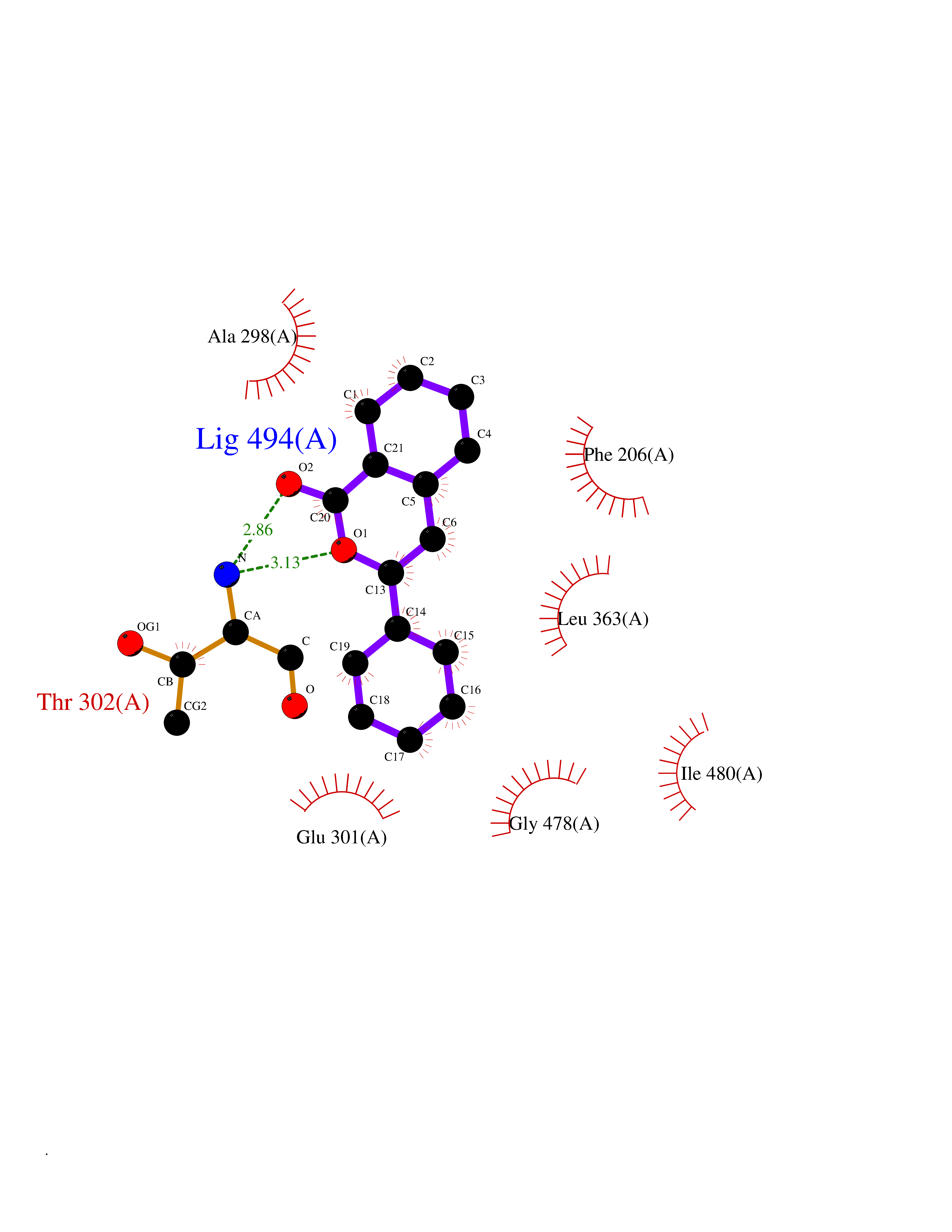 Target general information Gen name HHAT Organism Homo sapiens (Human) Uniprot ID TTD ID Synonyms Skinny hedgehog protein 1; Melanoma antigen recognized by T-cells 2; MART-2; Hedgehog acyltransferase; HHAT Protein family Membrane-bound acyltransferase family, HHAT subfamily Biochemical class Acyltransferase Function Catalyzes N-terminal palmitoylation of SHH; which is required for SHH signaling. May bind GTP. . Related diseases Nivelon-Nivelon-Mabille syndrome (NNMS) [MIM:600092]: An autosomal recessive syndrome characterized by progressive microcephaly, cerebellar vermis hypoplasia, and skeletal dysplasia. Additional variable features include early infantile-onset seizures, intrauterine and postnatal growth retardation, generalized chondrodysplasia, and micromelia. 46,XY gonadal dysgenesis may be present. {ECO:0000269|PubMed:24784881, ECO:0000269|PubMed:30912300}. The disease is caused by variants affecting the gene represented in this entry. Drugs (DrugBank ID) NA Interacts with O00560 EC number EC 2.3.1.- Uniprot keywords 3D-structure; Acyltransferase; Alternative splicing; Developmental protein; Disease variant; Dwarfism; Endoplasmic reticulum; Golgi apparatus; GTP-binding; Lipoprotein; Membrane; Nucleotide-binding; Palmitate; Proteomics identification; Reference proteome; Transferase; Transmembrane; Transmembrane helix Protein physicochemical properties Chain ID A Molecular weight (Da) 57096.2 Length 491 Aromaticity 0.17 Instability index 42.88 Isoelectric point 7.18 Charge (pH=7) 0.62 3D Binding mode Sequence MLPRWELALYLLASLGFHFYSFYEVYKVSREHEEELDQEFELETDTLFGGLKKDATDFEWSFWMEWGKQWLVWLLLGHMVVSQMATLLARKHRPWILMLYGMWACWCVLGTPGVAMVLLHTTISFCVAQFRSQLLTWLCSLLLLSTLRLQGVEEVKRRWYKTENEYYLLQFTLTVRCLYYTSFSLELCWQQLPAASTSYSFPWMLAYVFYYPVLHNGPILSFSEFIKQMQQQEHDSLKASLCVLALGLGRLLCWWWLAELMAHLMYMHAIYSSIPLLETVSCWTLGGLALAQVLFFYVKYLVLFGVPALLMRLDGLTPPALPRCVSTMFSFTGMWRYFDVGLHNFLIRYVYIPVGGSQHGLLGTLFSTAMTFAFVSYWHGGYDYLWCWAALNWLGVTVENGVRRLVETPCIQDSLARYFSPQARRRFHAALASCSTSMLILSNLVFLGGNEVGKTYWNRIFIQGWPWVTLSVLGFLYCYSHVGIAWAQTYA Hydrogen bonds contact Hydrophobic contact | ||||
