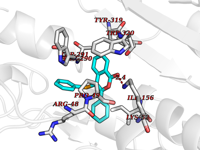 Target general information Gen name AKR1C2 Organism Homo sapiens (Human) Uniprot ID TTD ID NA Synonyms DDH2 Protein family Aldo/keto reductase family Biochemical class Oxidoreductase Function Alditol:NADP+ 1-oxidoreductase activity.Bile acid binding.Carboxylic acid binding.Ketosteroid monooxygenase activity.Oxidoreductase activity, acting on NAD(P)H, quinone or similar compound as acceptor.Phenanthrene 9,10-monooxygenase activity.Trans-1,2-dihydrobenzene-1,2-diol dehydrogenase activity. Related diseases 46,XY sex reversal 8 (SRXY8) [MIM:614279]: A disorder of sex development. Affected individuals have a 46,XY karyotype but present as phenotypically normal females. {ECO:0000269|PubMed:21802064}. The disease is caused by variants affecting the gene represented in this entry. Drugs (DrugBank ID) DB06777; DB07768; DB01039; DB13751; DB06077; DB00959; DB00461; DB00157; DB03461; DB00776; DB12612; DB01586 Interacts with NA EC number 1.-.-.-; 1.1.1.112; 1.1.1.209; 1.1.1.357; 1.1.1.53; 1.1.1.62; 1.3.1.20 Uniprot keywords 3D-structure; Alternative splicing; Cytoplasm; Direct protein sequencing; Disease variant; Lipid metabolism; NADP; Oxidoreductase; Proteomics identification; Reference proteome; Steroid metabolism Protein physicochemical properties Chain ID A,B Molecular weight (Da) 36817.9 Length 324 Aromaticity 0.09 Instability index 37.64 Isoelectric point 6.86 Charge (pH=7) -0.42 3D Binding mode Sequence VDDSKYQCVKLNDGHFMPVLGFGTYAPAEVPKSKALEAVKLAIEAGFHHIDSAHVYNNEEQVGLAIRSKIADGSVKREDIFYTSKLWSNSHRPELVRPALERSLKNLQLDYVDLYLIHFPVSVKPGEEVIPKDENGKILFDTVDLCATWEAMEKCKDAGLAKSIGVSNFNHRLLEMILNKPGLKYKPVCNQVECHPYFNQRKLLDFCKSKDIVLVAYSALGSHREEPWVDPNSPVLLEDPVLCALAKKHKRTPALIALRYQLQRGVVVLAKSYNEQRIRQNVQVFEFQLTSEEMKAIDGLNRNVRYLTLDIFAGPPNYPFSDEY Hydrogen bonds contact Hydrophobic contact | ||||