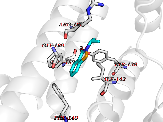 Target general information Gen name KCNK2 Organism Homo sapiens (Human) Uniprot ID TTD ID NA Synonyms TREK;TREK1 Protein family Two pore domain potassium channel (TC 1.A.1.8) family Biochemical class Transport protein Function Outward rectifier potassium channel activity.Potassium channel inhibitor activity.Potassium ion leak channel activity. Related diseases Diaphragmatic hernia 4, with cardiovascular defects (DIH4) [MIM:620025]: An autosomal recessive form of congenital diaphragmatic hernia, a posterolateral defect of the diaphragm, generally located on the left side, that permits the herniation of abdominal viscera into the thorax. The lungs are hypoplastic and have abnormal vessels that cause respiratory insufficiency and persistent pulmonary hypertension with high mortality. About one third of cases have cardiovascular malformations and lesser proportions have skeletal, neural, genitourinary, gastrointestinal or other defects. {ECO:0000269|PubMed:33565183, ECO:0000269|PubMed:36263470}. The disease is caused by variants affecting the gene represented in this entry. Drugs (DrugBank ID) DB00204; DB04855 Interacts with NA EC number NA Uniprot keywords 3D-structure; Alternative splicing; Cell membrane; Cell projection; Disulfide bond; Endoplasmic reticulum; Glycoprotein; Ion channel; Ion transport; Membrane; Metal-binding; Phosphoprotein; Postsynaptic cell membrane; Potassium; Potassium channel; Potassium transport; Proteomics identification; Reference proteome; Synapse; Transmembrane; Transmembrane helix; Transport Protein physicochemical properties Chain ID A,B Molecular weight (Da) 18512.8 Length 171 Aromaticity 0.08 Instability index 33.48 Isoelectric point 5.34 Charge (pH=7) -5.71 3D Binding mode Sequence GATVFKALEQPHEISQRTTIVIQKQTFISQHSCVNSTELDELIQQIVAAINAGIIPLGNTSNQISHWDLGSSFFFAGTVITTIGFGNISATVFKALEQPHEISQRTTIVIQKQTFISQHSCVNSTELDELIQQIVAAINAGIIPISHWDLGSSFFFAGTVITTIGFGNISP Hydrogen bonds contact Hydrophobic contact | ||||