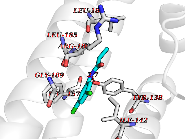 Target general information Gen name THRB Organism Homo sapiens (Human) Uniprot ID TTD ID Synonyms c-erbA-beta; c-erbA-2; THR1; Nuclear receptor subfamily 1 group A member 2; NR1A2; ERBA2 Protein family Nuclear hormone receptor family, NR1 subfamily Biochemical class Nuclear hormone receptor Function High affinity receptor for thyroid hormones, including triiodothyronine and thyroxine. Nuclear hormone receptor that can act as a repressor or activator of transcription. Related diseases Thyroid hormone resistance, generalized, autosomal dominant (GRTHD) [MIM:188570]: An autosomal dominant disease characterized by high levels of circulating thyroid hormones (T3-T4), goiter, abnormal mental functions, increased susceptibility to infections, abnormal growth and bone maturation, tachycardia and deafness. Affected individuals may also have attention deficit-hyperactivity disorders (ADHD) and language difficulties. Patients have normal or slightly elevated thyroid stimulating hormone (TSH). {ECO:0000269|PubMed:10660344, ECO:0000269|PubMed:12511610, ECO:0000269|PubMed:12554782, ECO:0000269|PubMed:1314846, ECO:0000269|PubMed:1324420, ECO:0000269|PubMed:1563081, ECO:0000269|PubMed:1587388, ECO:0000269|PubMed:1619012, ECO:0000269|PubMed:1661299, ECO:0000269|PubMed:16804041, ECO:0000269|PubMed:1846005, ECO:0000269|PubMed:19268523, ECO:0000269|PubMed:2153155, ECO:0000269|PubMed:2510172, ECO:0000269|PubMed:7833659, ECO:0000269|PubMed:8175986, ECO:0000269|PubMed:8514853, ECO:0000269|PubMed:8664910, ECO:0000269|PubMed:8889584}. The disease is caused by variants affecting the gene represented in this entry.; DISEASE: Thyroid hormone resistance, generalized, autosomal recessive (GRTHR) [MIM:274300]: An autosomal recessive disorder characterized by goiter, clinical euthyroidism, end-organ unresponsiveness to thyroid hormone, abnormal growth and bone maturation, and deafness. Patients also have high levels of circulating thyroid hormones, with elevated thyroid stimulating hormone. {ECO:0000269|PubMed:1653889}. The disease is caused by variants affecting the gene represented in this entry.; DISEASE: Selective pituitary thyroid hormone resistance (PRTH) [MIM:145650]: Variant form of thyroid hormone resistance and is characterized by clinical hyperthyroidism, with elevated free thyroid hormones, but inappropriately normal serum TSH. Unlike GRTH, where the syndrome usually segregates with a dominant allele, the mode of inheritance in PRTH has not been established. {ECO:0000269|PubMed:7528740, ECO:0000269|PubMed:8381821}. The disease is caused by variants affecting the gene represented in this entry. Drugs (DrugBank ID) DB08085; DB03181; DB02106; DB01118; DB00509; DB05035; DB03788; DB03176; DB00451; DB00279; DB01583; DB05192; DB07425; DB09100; DB03604 Interacts with Q60974; Q9Y618 EC number NA Uniprot keywords 3D-structure; Alternative splicing; Deafness; Disease variant; DNA-binding; Metal-binding; Nucleus; Proteomics identification; Receptor; Reference proteome; Transcription; Transcription regulation; Zinc; Zinc-finger Protein physicochemical properties Chain ID A,B Molecular weight (Da) 27235.4 Length 239 Aromaticity 0.09 Instability index 43.29 Isoelectric point 5.42 Charge (pH=7) -8.55 3D Binding mode Sequence KPEPTDEEWELIKTVTEAHVATNAQWKQKRKFLPEDIGQAKVDLEAFSHFTKIITPAITRVVDFAKKLPMFCELPCEDQIILLKGCCMEIMSLRAAVRYDPESETLTLNGEMAVTRGQLKNGGLGVVSDAIFDLGMSLSSFNLDDTEVALLQAVLLMSSDRPGLACVERIEKYQDSFLLAFEHYINYRKHHVTHFWPKLLMKVTDLRMIGACHASRFLHMKVECPTELFPPLFLEVFED Hydrogen bonds contact Hydrophobic contact | ||||