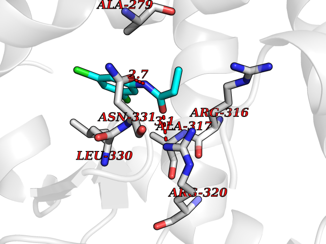 Target general information Gen name ACHE Organism Homo sapiens (Human) Uniprot ID TTD ID Synonyms YT; N-ACHE; ARACHE Protein family Type-B carboxylesterase/lipase family Biochemical class Carboxylic ester hydrolase Function Role in neuronal apoptosis. Terminates signal transduction at the neuromuscular junction by rapid hydrolysis of the acetylcholine released into the synaptic cleft. Related diseases Phosphoribosylaminoimidazole carboxylase deficiency (PAICSD) [MIM:619859]: An autosomal recessive inborn error of purine metabolism, clinically characterized by multiple congenital anomalies and early neonatal death. {ECO:0000269|PubMed:31600779}. The disease is caused by variants affecting the gene represented in this entry. Drugs (DrugBank ID) DB07846; DB02673; DB04617; DB04614; DB04615; DB07756; DB07701; DB02404; DB03814; DB08615; DB02343; DB02226; DB03005; DB04114; DB03128; DB01122; DB03283; DB00411; DB00122; DB14006; DB01245; DB00944; DB08357; DB08996; DB00449; DB00843; DB01010; DB01364; DB00898; DB00674; DB00483; DB06525; DB04864; DB03348; DB07555; DB00677; DB04924; DB03359; DB00358; DB00940; DB02825; DB02845; DB08167; DB04021; DB00805; DB01805; DB03740; DB04556; DB01400; DB04892; DB00981; DB00733; DB02166; DB00545; DB00863; DB00989; DB00382; DB04616; DB12816; DB01199; DB13503; DB04859 Interacts with Q9Y215; P06733; P63244 EC number EC 3.1.1.7 Uniprot keywords 3D-structure; Alternative splicing; Blood group antigen; Cell membrane; Direct protein sequencing; Disulfide bond; Glycoprotein; GPI-anchor; Hydrolase; Lipoprotein; Membrane; Neurotransmitter degradation; Nucleus; Proteomics identification; Reference proteome; Secreted; Serine esterase; Signal; Synapse Protein physicochemical properties Chain ID A,B Molecular weight (Da) 58804.1 Length 537 Aromaticity 0.11 Instability index 40.85 Isoelectric point 5.73 Charge (pH=7) -8.18 3D Binding mode Sequence EDAELLVTVRGGRLRGIRLKTPGGPVSAFLGIPFAEPPMGPRRFLPPEPKQPWSGVVDATTFQSVCYQYVDTLYPGFEGTEMWNPNRELSEDCLYLNVWTPYPRPTSPTPVLVWIYGGGFYSGASSLDVYDGRFLVQAERTVLVSMNYRVGAFGFLALPGSREAPGNVGLLDQRLALQWVQENVAAFGGDPTSVTLFGESAGAASVGMHLLSPPSRGLFHRAVLQSGAPNGPWATVGMGEARRRATQLAHLVGCPPGGTGGNDTELVACLRTRPAQVLVNHEWHVLPQESVFRFSFVPVVDGDFLSDTPEALINAGDFHGLQVLVGVVKDEGSYFLVYGAPGFSKDNESLISRAEFLAGVRVGVPQVSDLAAEAVVLHYTDWLHPEDPARLREALSDVVGDHNVVCPVAQLAGRLAAQGARVYAYVFEHRASTLSWPLWMGVPHGYEIEFIFGIPLDPSRNYTAEEKIFAQRLMRYWANFARTGDPNEPPKAPQWPPYTAGAQQYVSLDLRPLEVRRGLRAQACAFWNRFLPKLLSA Hydrogen bonds contact Hydrophobic contact | ||||