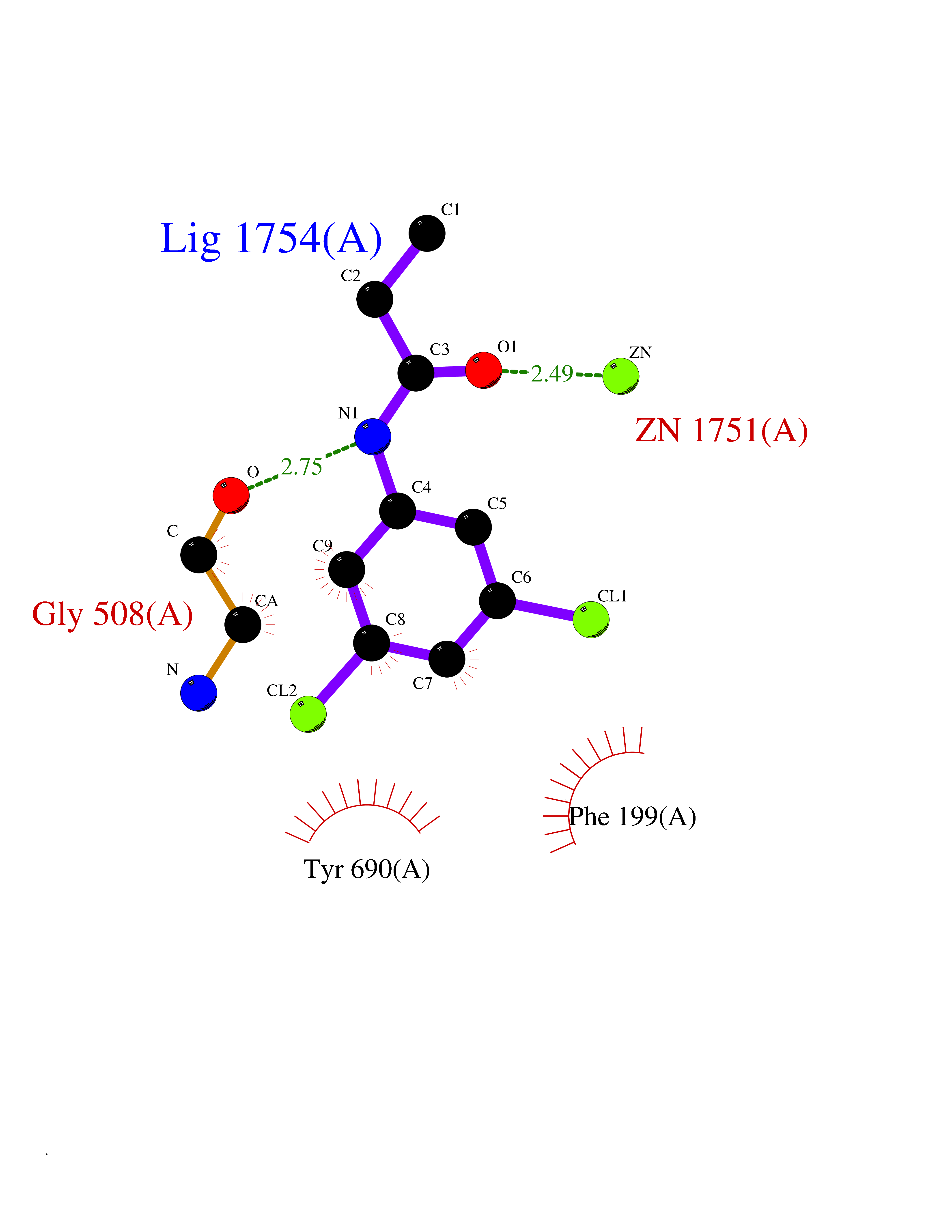 Target general information Gen name NAALAD2 Organism Homo sapiens (Human) Uniprot ID TTD ID Synonyms NAALADase II; NAALAD2 Protein family Peptidase M28 family, M28B subfamily Biochemical class Peptidase Function Has N-acetylated-alpha-linked-acidic dipeptidase (NAALADase) activity. Also exhibits a dipeptidyl-peptidase IV type activity. Inactivate the peptide neurotransmitter N- acetylaspartylglutamate. Related diseases Dystonia 1, torsion, autosomal dominant (DYT1) [MIM:128100]: A primary torsion dystonia, and the most common and severe form. Dystonia is defined by the presence of sustained involuntary muscle contractions, often leading to abnormal postures. Dystonia type 1 is characterized by involuntary, repetitive, sustained muscle contractions or postures involving one or more sites of the body, in the absence of other neurological symptoms. Typically, symptoms develop first in an arm or leg in middle to late childhood and progress in approximately 30% of patients to other body regions (generalized dystonia) within about five years. 'Torsion' refers to the twisting nature of body movements observed in DYT1, often affecting the trunk. Distribution and severity of symptoms vary widely between affected individuals, ranging from mild focal dystonia to severe generalized dystonia, even within families. {ECO:0000269|PubMed:14970196, ECO:0000269|PubMed:15505207, ECO:0000269|PubMed:16361107, ECO:0000269|PubMed:17428918, ECO:0000269|PubMed:18167355, ECO:0000269|PubMed:18477710, ECO:0000269|PubMed:18827015, ECO:0000269|PubMed:19955557, ECO:0000269|PubMed:20169475, ECO:0000269|PubMed:21102408, ECO:0000269|PubMed:24930953, ECO:0000269|PubMed:27490483, ECO:0000269|PubMed:9288096}. The disease is caused by variants affecting the gene represented in this entry.; DISEASE: Arthrogryposis multiplex congenita 5 (AMC5) [MIM:618947]: A form of arthrogryposis multiplex congenita, a developmental condition characterized by multiple joint contractures resulting from reduced or absent fetal movements. AMC5 is an autosomal recessive form characterized by severe congenital contractures, developmental delay, strabismus and tremor. {ECO:0000269|PubMed:28516161, ECO:0000269|PubMed:29053766, ECO:0000269|PubMed:30244176}. The disease is caused by variants affecting the gene represented in this entry. Drugs (DrugBank ID) NA Interacts with Q9UHD4; Q6NTF9-3; B2RUZ4; O76024 EC number EC 3.4.17.21 Uniprot keywords 3D-structure; Alternative splicing; Calcium; Carboxypeptidase; Cell membrane; Dipeptidase; Glycoprotein; Hydrolase; Membrane; Metal-binding; Metalloprotease; Multifunctional enzyme; Protease; Proteomics identification; Reference proteome; Signal-anchor; Transmembrane; Transmembrane helix; Zinc Protein physicochemical properties Chain ID A Molecular weight (Da) 77761.6 Length 690 Aromaticity 0.12 Instability index 39.42 Isoelectric point 8.48 Charge (pH=7) 4.65 3D Binding mode Sequence SIRWKLVSEMKAENIKSFLRSFTKLPHLAGTEQNFLLAKKIQTQWKKFGLDSAKLVHYDVLLSYPNETNANYISIVDEHETEIFKTSPPPDGYENVTNIVPPYNAFSAQGMPEGDLVYVNYARTEDFFKLEREMGINCTGKIVIARYGKIFRGNKVKNAMLAGAIGIILYSDPADYFAPEVQPYPKGWNLPGTAAQRGNVLNLNGAGDPLTPGYPAKEYTFRLDVEEGVGIPRIPVHPIGYNDAEILLRYLGGIAPPDKSWKGALNVSYSIGPGFTGSSFRKVRMHVYNINKITRIYNVVGTIRGSVEPDRYVILGGHRDSWVFGAIDPTSGVAVLQEIARSFGKLMSKGWRPRRTIIFASWDAEEFGLLGSTEWAEENVKILQERSIAYINSDSSIEGNYTLRVDCTPLLYQLVYKLTKEIPSPDDGFESKSLYESWLEKDPSPENKNLPRINKLGSGSDFEAYFQRLGIASGRARYTKNKKTDKYSSYPVYHTIYETFELVEKFYDPTFKKQLSVAQLRGALVYELVDSKIIPFNIQDYAEALKNYAASIYNLSKKHDQQLTDHGVSFDSLFSAVKNFSEAASDFHKRLIQVDLNNPIAVRMMNDQLMLLERAFIDPLGLPGKLFYRHIIFAPSSHNKYAGESFPGIYDAIFDIENKANSRLAWKEVKKHISIAAFTIQAAAGTLKEV Hydrogen bonds contact Hydrophobic contact | ||||