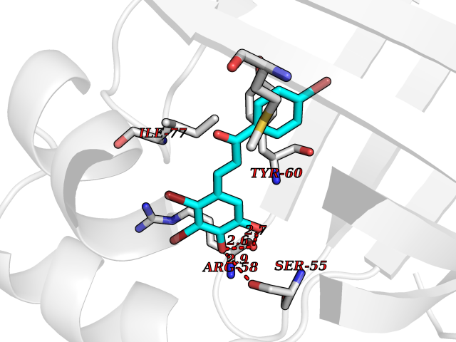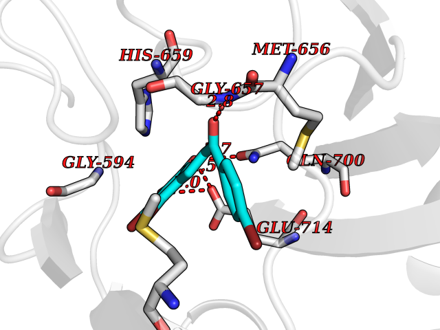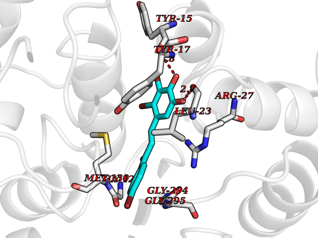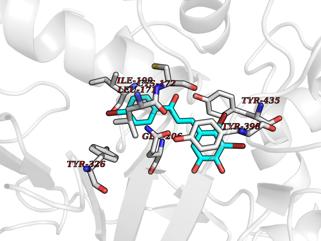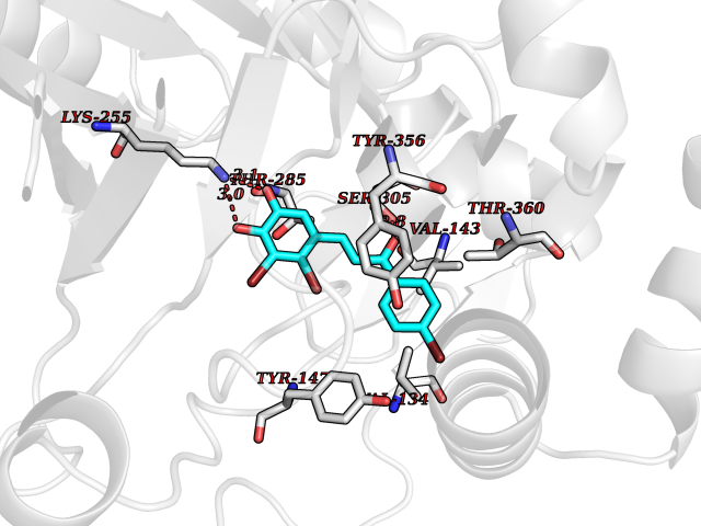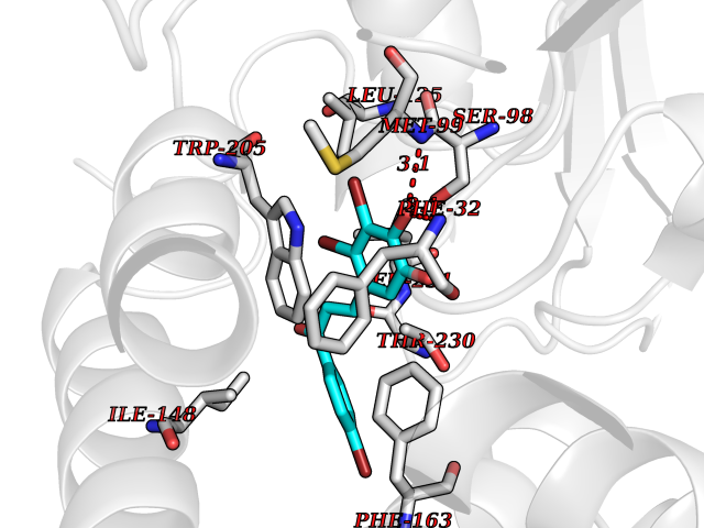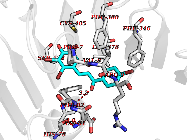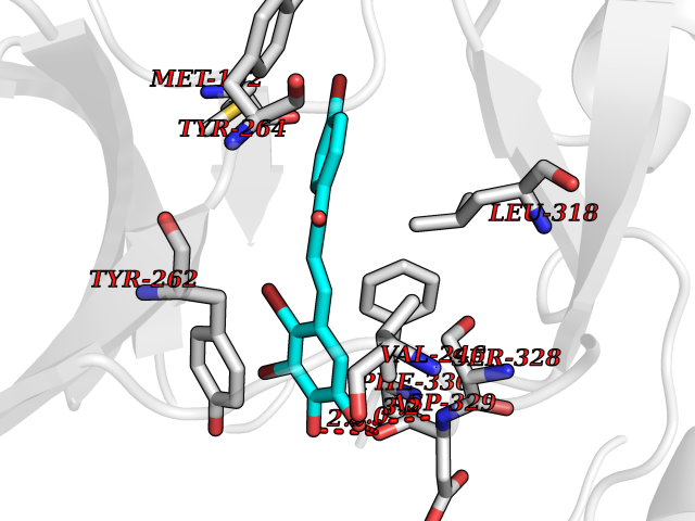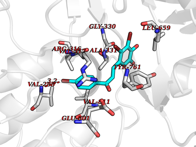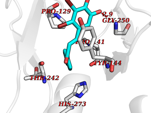 Target general information Gen name cpo Organism Kitasatospora aureofaciens (Streptomyces aureofaciens) Uniprot ID TTD ID NA Synonyms cpoT Protein family AB hydrolase superfamily, Bacterial non-heme haloperoxidase / perhydrolase family Biochemical class Haloperoxidase Function Chloride peroxidase activity. Related diseases Hypervalinemia and hyperleucine-isoleucinemia (HVLI) [MIM:618850]: An autosomal recessive metabolic disorder characterized by highly elevated plasma concentrations of valine and leucine/isoleucine. Affected individuals suffer from headache and mild memory impairment. {ECO:0000269|PubMed:25653144}. The disease is caused by variants affecting the gene represented in this entry. A patient with hypervalinemia and hyperleucine-isoleucinemia was identified as compound heterozygote for Gln-170 (inherited from his father) and Lys-264 (inherited from his mother), both variants reduced the catalytic activity of the enzyme. After treatment with vitamin B6, a precursor of pyridoxal 5'-phosphate, a BCAT2 cofactor, the blood levels of branched chain amino acids, especially valine, were decreased and brain lesions were improved. {ECO:0000269|PubMed:25653144}. Drugs (DrugBank ID) DB03793 Interacts with NA EC number 1.11.1.- Uniprot keywords 3D-structure; Chloride; Oxidoreductase; Peroxidase Protein physicochemical properties Chain ID A,B Molecular weight (Da) 60428.4 Length 554 Aromaticity 0.13 Instability index 31.26 Isoelectric point 4.65 Charge (pH=7) -32.72 3D Binding mode Sequence PFITVGQENSTSIDLYYEDHGAGQPVVLIHGFPLSGHSWERQSAALLDAGYRVITYDRRGFGQSSQPTTGYDYDTFAADLNTVLETLDLQDAVLVGFSMGTGEVARYVSSYGTARIAKVAFLASLEPFLLKTDDNPDGAAPKEFFDGIVAAVKADRYAFYTGFFNDFYNLDENLGTRISEEAVRNSWNTAASGGFFAAAAAPTTWYTDFRADIPRIDVPALILHGTGDRTLPIENTARVFHKALPSAEYVEVEGAPHGLLWTHAEEVNTALLAFLAKPFITVGQENSTSIDLYYEDHGAGQPVVLIHGFPLSGHSWERQSAALLDAGYRVITYDRRGFGQSSQPTTGYDYDTFAADLNTVLETLDLQDAVLVGFSMGTGEVARYVSSYGTARIAKVAFLASLEPFLLKTDDNPDGAAPKEFFDGIVAAVKADRYAFYTGFFNDFYNLDENLGTRISEEAVRNSWNTAASGGFFAAAAAPTTWYTDFRADIPRIDVPALILHGTGDRTLPIENTARVFHKALPSAEYVEVEGAPHGLLWTHAEEVNTALLAFLAK Hydrogen bonds contact Hydrophobic contact | ||||