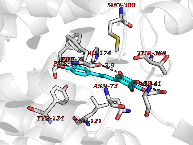 Target general information Gen name MAOB Organism Homo sapiens (Human) Uniprot ID TTD ID Synonyms MAO-B; Amine oxidase [flavin-containing] B Protein family Flavin monoamine oxidase family Biochemical class CH-NH(2) donor oxidoreductase Function Catalyzes the oxidative deamination of biogenic and xenobiotic amines and has important functions in the metabolism of neuroactive and vasoactive amines in the central nervous system and peripheral tissues. MAOB preferentially degrades benzylamine and phenylethylamine. Related diseases Microvascular complications of diabetes 5 (MVCD5) [MIM:612633]: Pathological conditions that develop in numerous tissues and organs as a consequence of diabetes mellitus. They include diabetic retinopathy, diabetic nephropathy leading to end-stage renal disease, and diabetic neuropathy. Diabetic retinopathy remains the major cause of new-onset blindness among diabetic adults. It is characterized by vascular permeability and increased tissue ischemia and angiogenesis. Disease susceptibility is associated with variants affecting the gene represented in this entry. Homozygosity for the Leu-55 allele is strongly associated with the development of retinal disease in diabetic patients. Drugs (DrugBank ID) DB08176; DB02211; DB08516; DB08480; DB01472; DB04307; DB07512; DB07513; DB00915; DB00182; DB06698; DB04889; DB00215; DB09130; DB04147; DB00988; DB01363; DB00668; DB01175; DB02509; DB03147; DB14914; DB00614; DB04818; DB02095; DB01247; DB00601; DB01577; DB01442; DB01171; DB08082; DB02643; DB04677; DB03894; DB08804; DB04820; DB00184; DB04821; DB12612; DB01626; DB00780; DB00191; DB00388; DB01132; DB00721; DB01168; DB01367; DB09363; DB06654; DB01037; DB01104; DB14569; DB09042; DB00752; DB16446; DB09185; DB04832; DB00909 Interacts with P55212; P28329-3; Q8NI60; Q5RI15; Q92915-2; P22607; Q53GS7; P06396; P01112; O14901; P13473-2; P21397; Q9BVL2; O75400-2; P62826; Q6NTF9-3; Q9Y371; Q7Z699; Q9UMX0; Q9Y649 EC number EC 1.4.3.4 Uniprot keywords 3D-structure; Acetylation; Alternative splicing; Direct protein sequencing; FAD; Flavoprotein; Membrane; Mitochondrion; Mitochondrion outer membrane; Oxidoreductase; Proteomics identification; Reference proteome; Transmembrane; Transmembrane helix Protein physicochemical properties Chain ID A,B Molecular weight (Da) 56019.9 Length 494 Aromaticity 0.09 Instability index 34.81 Isoelectric point 6.51 Charge (pH=7) -2.2 3D Binding mode Sequence NKCDVVVVGGGISGMAAAKLLHDSGLNVVVLEARDRVGGRTYTLRNQKVKYVDLGGSYVGPTQNRILRLAKELGLETYKVNEVERLIHHVKGKSYPFRGPFPPVWNPITYLDHNNFWRTMDDMGREIPSDAPWKAPLAEEWDNMTMKELLDKLCWTESAKQLATLFVNLCVTAETHEVSALWFLWYVKQCGGTTRIISTTNGGQERKFVGGSGQVSERIMDLLGDRVKLERPVIYIDQTRENVLVETLNHEMYEAKYVISAIPPTLGMKIHFNPPLPMMRNQMITRVPLGSVIKCIVYYKEPFWRKKDYCGTMIIDGEEAPVAYTLDDTKPEGNYAAIMGFILAHKARKLARLTKEERLKKLCELYAKVLGSLEALEPVHYEEKNWCEEQYSGGCYTTYFPPGILTQYGRVLRQPVDRIYFAGTETATHWSGYMEGAVEAGERAAREILHAMGKIPEDEIWQSEPESVDVPAQPITTTFLERHLPSVPGLLRLI Hydrogen bonds contact Hydrophobic contact | ||||