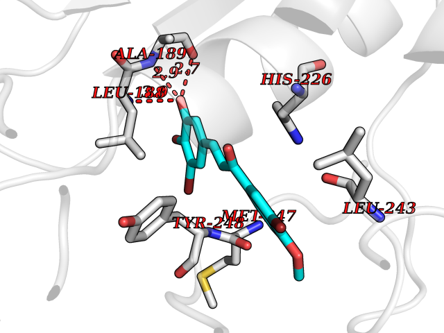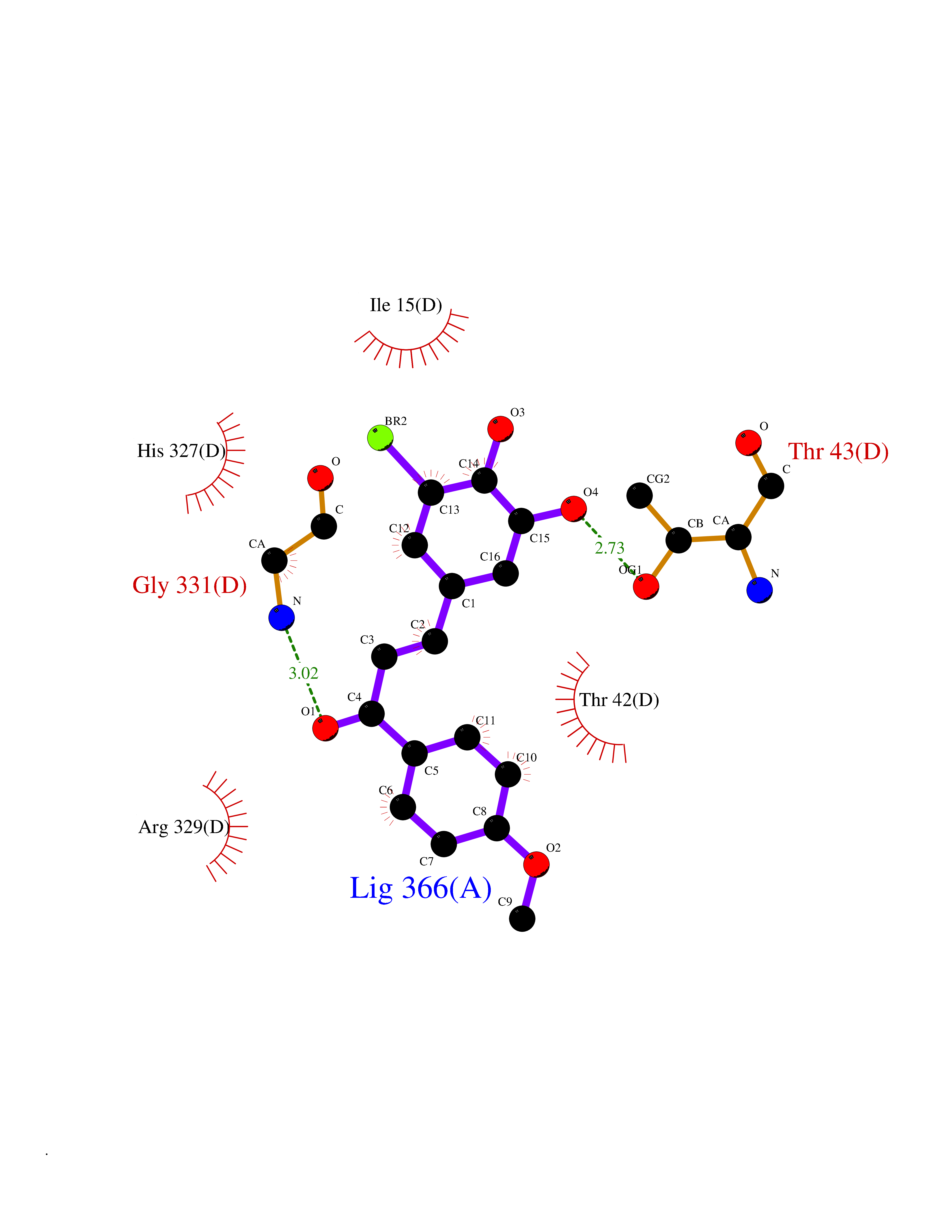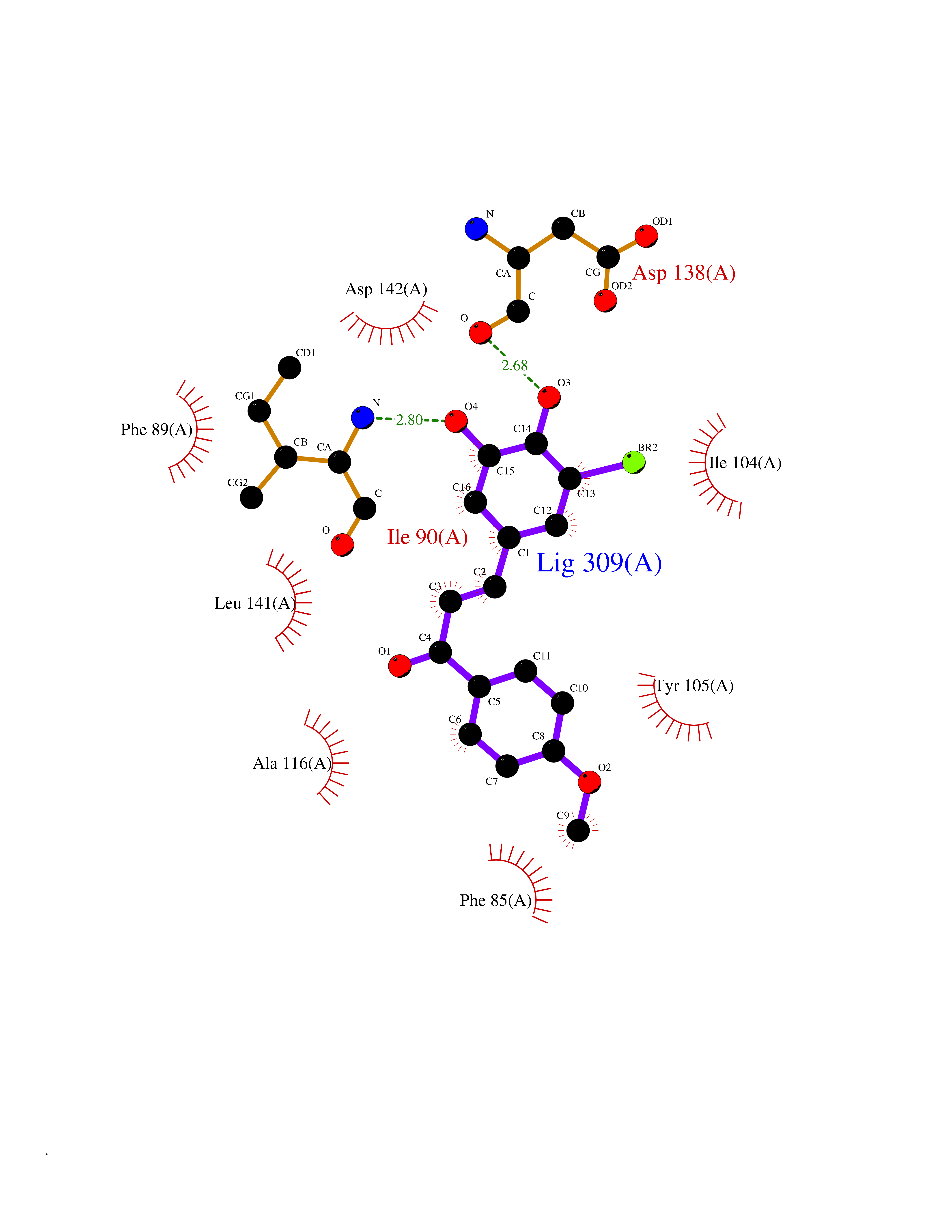 Target general information Gen name Malaria DXR Organism Plasmodium falciparum (isolate HB3) Uniprot ID TTD ID Synonyms IspC; DXR; DXP reductoisomerase; DOXP reductoisomerase; 2-C-Methyl-d-erythritol 4-phosphate synthase; 1-deoxyxylulose-5-phosphate reductoisomerase Protein family DXR family Biochemical class Short-chain dehydrogenases reductase Function Catalyzes the NADP-dependent rearrangement and reduction of 1-deoxy-D-xylulose-5-phosphate (DXP) to 2-C-methyl-D-erythritol 4-phosphate (MEP). Related diseases Ichthyosis, congenital, autosomal recessive 11 (ARCI11) [MIM:602400]: A form of autosomal recessive congenital ichthyosis, a disorder of keratinization with abnormal differentiation and desquamation of the epidermis, resulting in abnormal skin scaling over the whole body. The main skin phenotypes are lamellar ichthyosis (LI) and non-bullous congenital ichthyosiform erythroderma (NCIE), although phenotypic overlap within the same patient or among patients from the same family can occur. Lamellar ichthyosis is a condition often associated with an embedment in a collodion-like membrane at birth; skin scales later develop, covering the entire body surface. Non-bullous congenital ichthyosiform erythroderma characterized by fine whitish scaling on an erythrodermal background; larger brownish scales are present on the buttocks, neck and legs. {ECO:0000269|PubMed:17273967, ECO:0000269|PubMed:18843291}. The disease is caused by variants affecting the gene represented in this entry. Drugs (DrugBank ID) NA Interacts with NA EC number EC 1.1.1.267 Uniprot keywords 3D-structure; Apicoplast; Isoprene biosynthesis; Magnesium; Manganese; Metal-binding; NADP; Oxidoreductase; Plastid; Transit peptide Protein physicochemical properties Chain ID A Molecular weight (Da) 46644.4 Length 410 Aromaticity 0.09 Instability index 36.77 Isoelectric point 6.95 Charge (pH=7) -0.14 3D Binding mode Sequence PINVAIFGSTGSIGTNALNIIRECNKIENVFNVKALYVNKSVNELYEQAREFLPEYLCIHDKSVYEELKELVKNIKDYKPIILCGDEGMKEICSSNSIDKIVIGIDSFQGLYSTMYAIMNNKIVALANKESIVSAGFFLKKLLNIHKNAKIIPVDSEHSAIFQCLDNNKVLKTKCLQDNFSKINNINKIFLCSSGGPFQNLTMDELKNVTSENALKHPKWKMGKKITIDSATMMNKGLEVIETHFLFDVDYNDIEVIVHKECIIHSCVEFIDKSVISQMYYPDMQIPILYSLTWPDRIKTNLKPLDLAQVSTLTFHKPSLEHFPCIKLAYQAGIKGNFYPTVLNASNEIANNLFLNNKIKYFDISSIISQVLESFNSQKVSENSEDLMKQILQIHSWAKDKATDIYNKHN Hydrogen bonds contact Hydrophobic contact | ||||
