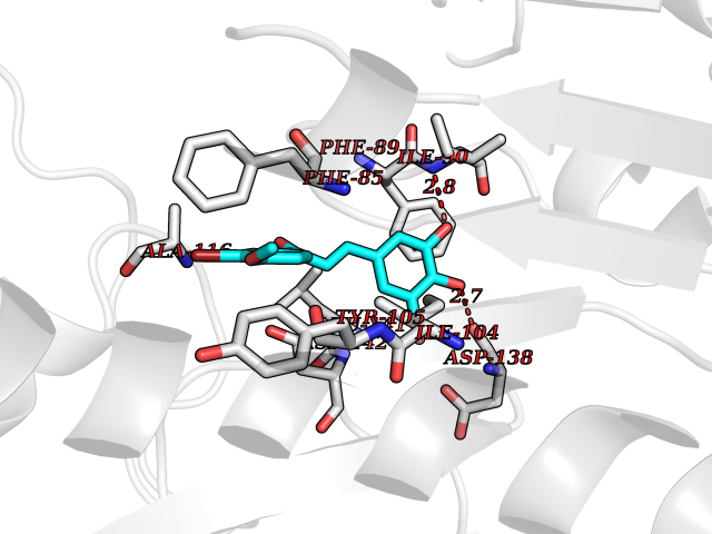 Target general information Gen name PNP Organism Homo sapiens (Human) Uniprot ID TTD ID Synonyms PNP; Inosine phosphorylase Protein family PNP/MTAP phosphorylase family Biochemical class Pentosyltransferase Function The purine nucleoside phosphorylases catalyze the phosphorolytic breakdown of the N-glycosidic bond in the beta- (deoxy)ribonucleoside molecules, with the formation of the corresponding free purine bases and pentose-1-phosphate. Related diseases Purine nucleoside phosphorylase deficiency (PNPD) [MIM:613179]: A disorder that interrupts both the catabolism of inosine into hypoxanthine and guanosine into guanine, and leads to the accumulation of guanosine, inosine, and their deoxified by-products. The main clinical presentation is recurrent infections due to severe T-cell immunodeficiency. Some patients also have neurologic impairment. {ECO:0000269|PubMed:1384322, ECO:0000269|PubMed:3029074, ECO:0000269|PubMed:8931706}. The disease is caused by variants affecting the gene represented in this entry. Drugs (DrugBank ID) DB03881; DB03551; DB02222; DB02391; DB03609; DB01667; DB04260; DB02796; DB04753; DB00640; DB00242; DB00900; DB06185; DB02377; DB02857; DB04754; DB04757; DB04076; DB02230; DB04335; DB02568; DB03101 Interacts with P05067; Q9UQM7; O14576-2; P06241; P14136; Q92993-2; Q9BXM7; P00491; P17612; P63000; Q92673; Q15583 EC number EC 2.4.2.1 Uniprot keywords 3D-structure; Acetylation; Cytoplasm; Direct protein sequencing; Disease variant; Glycosyltransferase; Phosphoprotein; Proteomics identification; Purine salvage; Reference proteome; Transferase Protein physicochemical properties Chain ID A,B,C Molecular weight (Da) 31849.2 Length 288 Aromaticity 0.1 Instability index 34.77 Isoelectric point 6.42 Charge (pH=7) -1.63 3D Binding mode Sequence GYTYEDYKNTAEYLLSHTKHRPQVAIICGSGLGGLTDKLTQAQIFDYSEIPNFPRSTVPGHAGRLVFGFLNGRACVMMQGRFHMYEGYPLYKVTFPVRVFHLLGVDTLVVTNAAGGLNPKFEVGDIMLIRDHINLPGFSGQNPLRGPNDERFGDRFPAMSDAYDRTMRQRALSTYKQMGEQRELQEGTYVMVAGPSFETVAECRVLQKLGADAVGMSTVPEVIVARHCGLRVFGFSLITNKVIMDYESLEKANXEEVLAAGKQAAQKLEQFVSILMASIDRFPAMSDA Hydrogen bonds contact Hydrophobic contact | ||||