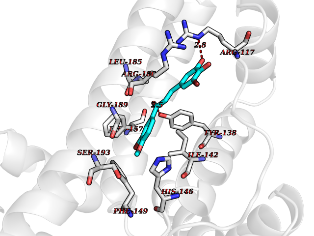 Target general information Gen name RLBP1 Organism Homo sapiens (Human) Uniprot ID TTD ID NA Synonyms CRALBP Protein family NA Biochemical class Transport protein Function 11-cis retinal binding.Retinol binding.Transporter activity. Related diseases Bothnia retinal dystrophy (BRD) [MIM:607475]: A type of retinitis punctata albescens. Affected individuals show night blindness from early childhood with features consistent with retinitis punctata albescens and macular degeneration. {ECO:0000269|PubMed:10102298}. The disease is caused by variants affecting the gene represented in this entry.; DISEASE: Rod-cone dystrophy Newfoundland (NFRCD) [MIM:607476]: A rod-cone dystrophy reminiscent of retinitis punctata albescens but with a substantially lower age at onset and more-rapid and distinctive progression. Rod-cone dystrophies results from initial loss of rod photoreceptors, later followed by cone photoreceptors loss. {ECO:0000269|PubMed:11868161}. The disease is caused by variants affecting the gene represented in this entry.; DISEASE: Retinitis punctata albescens (RPA) [MIM:136880]: A form of fleck retina disease characterized by aggregation of white flecks posteriorly in the retina, causing night blindness and delayed dark adaptation. It differs from fundus albipunctatus in being progressive and evolving to generalized atrophy of the retina. {ECO:0000269|PubMed:10102299, ECO:0000269|PubMed:11453974, ECO:0000269|PubMed:9326942}. The disease is caused by variants affecting the gene represented in this entry. Drugs (DrugBank ID) DB00162 Interacts with Q9P2G9-2 EC number NA Uniprot keywords 3D-structure; Acetylation; Cytoplasm; Disease variant; Proteomics identification; Reference proteome; Retinol-binding; Sensory transduction; Transport; Vision Protein physicochemical properties Chain ID A Molecular weight (Da) 28328.6 Length 250 Aromaticity 0.14 Instability index 52.64 Isoelectric point 4.96 Charge (pH=7) -9.87 3D Binding mode Sequence ETREEAVRELQEXVQAQAASGEELAVAVAERVQEKDSGFFLRFIRARKFNVGRAYELLRGYVNFRLQYPELFDSLSPEAVRCTIEAGYPGVLSSRDKYGRVVXLFNIENWQSQEITFDEILQAYCFILEKLLENEETQINGFCIIENFKGFTXQQAASLRTSDLRKXVDXLQDSFPAWFKAIHFIHQPWYFTTTYNVVKPFLKSKLLERVFVHGDDLSGFYQEIDENILPSDFGGTLPKYDGKAVAEQLF Hydrogen bonds contact Hydrophobic contact | ||||