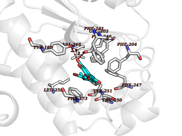 Target general information Gen name FOLR1 Organism Homo sapiens (Human) Uniprot ID TTD ID Synonyms Ovarian tumorassociated antigen MOv18; KB cells FBP; Folate receptor, adult; Folate receptor 1; FRalpha; FOLR1; Adult folatebinding protein Protein family Folate receptor family Biochemical class Folate receptor Function Binds to folate and reduced folic acid derivatives and mediates delivery of 5-methyltetrahydrofolate and folate analogs into the interior of cells. Has high affinity for folate and folic acid analogs at neutral pH. Exposure to slightly acidic pHafter receptor endocytosis triggers a conformation change that strongly reduces its affinity for folates and mediates their release. Required for normal embryonic development and normal cell proliferation. Related diseases Neurodegeneration due to cerebral folate transport deficiency (NCFTD) [MIM:613068]: An autosomal recessive neurodegenerative disorder resulting from brain-specific folate deficiency early in life. Onset is apparent in late infancy with severe developmental regression, movement disturbances, epilepsy and leukodystrophy. {ECO:0000269|PubMed:19732866}. The disease is caused by variants affecting the gene represented in this entry. Drugs (DrugBank ID) DB05595; DB00158; DB00563; DB12489; DB15413; DB05168 Interacts with Q8N357 EC number NA Uniprot keywords 3D-structure; Cell membrane; Cytoplasmic vesicle; Direct protein sequencing; Disulfide bond; Endosome; Folate-binding; Glycoprotein; GPI-anchor; Lipoprotein; Membrane; Neurodegeneration; Proteomics identification; Receptor; Reference proteome; Secreted; Signal; Transport Protein physicochemical properties Chain ID A Molecular weight (Da) 24216 Length 207 Aromaticity 0.13 Instability index 49.36 Isoelectric point 8.14 Charge (pH=7) 3.41 3D Binding mode Sequence RTELLNVCMNAKHHKEKPGPEDKLHEQCRPWRKNACCSTNTSQEAHKDVSYLYRFNWNHCGEMAPACKRHFIQDTCLYECSPNLGPWIQQVDQSWRKERVLNVPLCKEDCEQWWEDCRTSYTCKSNWHKGWNWTSGFNKCAVGAACQPFHFYFPTPTVLCNEIWTHSYKVSNYSRGSGRCIQMWFDPAQGNPNEEVARFYAAAMSGT Hydrogen bonds contact Hydrophobic contact | ||||