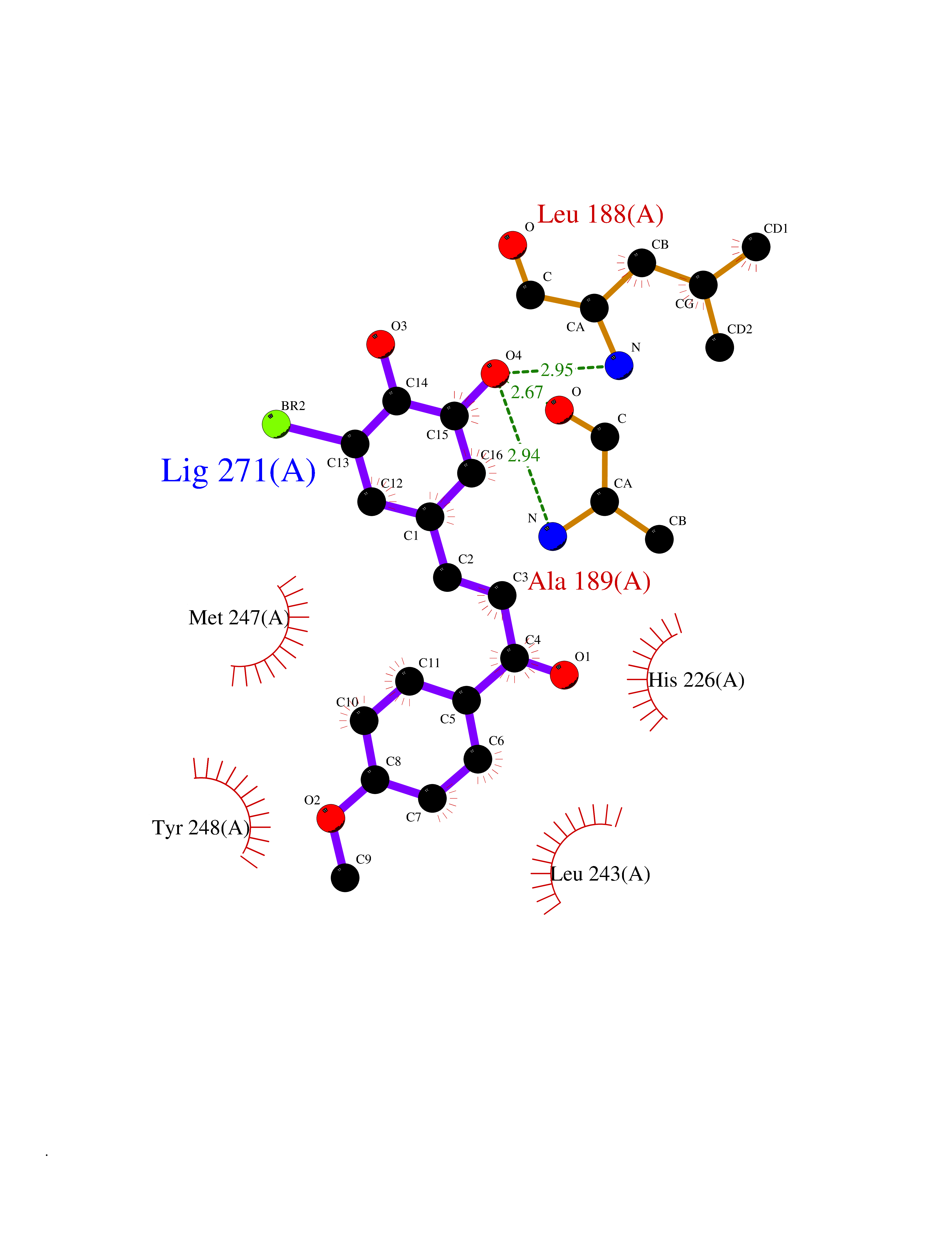 Target general information Gen name HDAC2 Organism Homo sapiens (Human) Uniprot ID TTD ID Synonyms HD2 Protein family Histone deacetylase family, HD type 1 subfamily Biochemical class Carbon-nitrogen hydrolase Function Gives a tag for epigenetic repression and plays an important role in transcriptional regulation, cell cycle progression and developmental events. Histone deacetylases act via the formation of large multiprotein complexes. Forms transcriptional repressor complexes by associating with MAD, SIN3, YY1 and N-COR. Interacts in the late S-phase of DNA-replication with DNMT1 in the other transcriptional repressor complex composed of DNMT1, DMAP1, PCNA, CAF1. Deacetylates TSHZ3 and regulates its transcriptional repressor activity. Component of a RCOR/GFI/KDM1A/HDAC complex that suppresses, via histone deacetylase (HDAC) recruitment, a number of genes implicated in multilineage blood cell development. May be involved in the transcriptional repression of circadian target genes, such as PER1, mediated by CRY1 through histone deacetylation. Involved in MTA1-mediated transcriptional corepression of TFF1 and CDKN1A. Responsible for the deacetylation of lysine residues on the N-terminal part of the core histones (H2A, H2B, H3 and H4). Related diseases Ventricular tachycardia, catecholaminergic polymorphic, 1, with or without atrial dysfunction and/or dilated cardiomyopathy (CPVT1) [MIM:604772]: An arrhythmogenic disorder characterized by stress-induced, bidirectional ventricular tachycardia that may degenerate into cardiac arrest and cause sudden death. Patients present with recurrent syncope, seizures, or sudden death after physical activity or emotional stress. CPVT1 inheritance is autosomal dominant. {ECO:0000269|PubMed:11157710, ECO:0000269|PubMed:11159936, ECO:0000269|PubMed:11208676, ECO:0000269|PubMed:12093772, ECO:0000269|PubMed:12106942, ECO:0000269|PubMed:14571276, ECO:0000269|PubMed:15046072, ECO:0000269|PubMed:15046073, ECO:0000269|PubMed:15466642, ECO:0000269|PubMed:15544015, ECO:0000269|PubMed:16188589, ECO:0000269|PubMed:24793461, ECO:0000269|PubMed:25372681, ECO:0000269|PubMed:27733687}. The disease is caused by variants affecting the gene represented in this entry.; DISEASE: Ventricular arrhythmias due to cardiac ryanodine receptor calcium release deficiency syndrome (VACRDS) [MIM:115000]: An autosomal dominant arrhythmogenic disorder characterized by syncope, cardiac arrest and/or sudden unexpected death, often in association with physical exertion or acute emotional stress. Patients who survive manifest polymorphic ventricular tachycardia and ventricular fibrillation. Unlike typical catecholaminergic ventricular tachycardia, arrhythmias are not reproducible on exercise stress testing or adrenaline challenge. {ECO:0000269|PubMed:12093772, ECO:0000269|PubMed:17984046, ECO:0000269|PubMed:33536282}. The disease is caused by variants affecting the gene represented in this entry. Drugs (DrugBank ID) DB12565; DB01223; DB01076; DB05015; DB01262; DB11841; DB01095; DB12645; DB00227; DB11830; DB01303; DB06603; DB06819; DB05223; DB00175; DB03766; DB12847; DB06176; DB00641; DB00277; DB09091; DB00313; DB02546 Interacts with Q9C0K0; Q9HCU9; P68400; Q9UER7; P51610; Q13547; Q9UIS9; Q13330; P01106; P06748; P48382; Q96ST3; O95863; Q9HD15; O43463; Q9H3M7; Q92618; Q17R98; Q2HR82; PRO_0000449623 [P0DTD1] EC number EC 3.5.1.98 Uniprot keywords 3D-structure; Acetylation; Alternative splicing; Biological rhythms; Chromatin regulator; Cytoplasm; Hydrolase; Isopeptide bond; Nucleus; Phosphoprotein; Proteomics identification; Reference proteome; Repressor; S-nitrosylation; Transcription; Transcription regulation; Ubl conjugation Protein physicochemical properties Chain ID A,B,C Molecular weight (Da) 42020.5 Length 366 Aromaticity 0.13 Instability index 29.52 Isoelectric point 6.52 Charge (pH=7) -2.16 3D Binding mode Sequence KKKVCYYYDGDIGNYYYGQGHPMKPHRIRMTHNLLLNYGLYRKMEIYRPHKATAEEMTKYHSDEYIKFLRSIRPDNMSEYSKQMQRFNVGEDCPVFDGLFEFCQLSTGGSVAGAVKLNRQQTDMAVNWAGGLHHAKKSEASGFCYVNDIVLAILELLKYHQRVLYIDIDIHHGDGVEEAFYTTDRVMTVSFHKYGEYFPGTGDLRDIGAGKGKYYAVNFPMRDGIDDESYGQIFKPIISKVMEMYQPSAVVLQCGADSLSGDRLGCFNLTVKGHAKCVEVVKTFNLPLLMLGGGGYTIRNVARCWTYETAVALDCEIPNELPYNDYFEYFGPDFKLHISPSNMTNQNTPEYMEKIKQRLFENLRML Hydrogen bonds contact Hydrophobic contact | ||||
