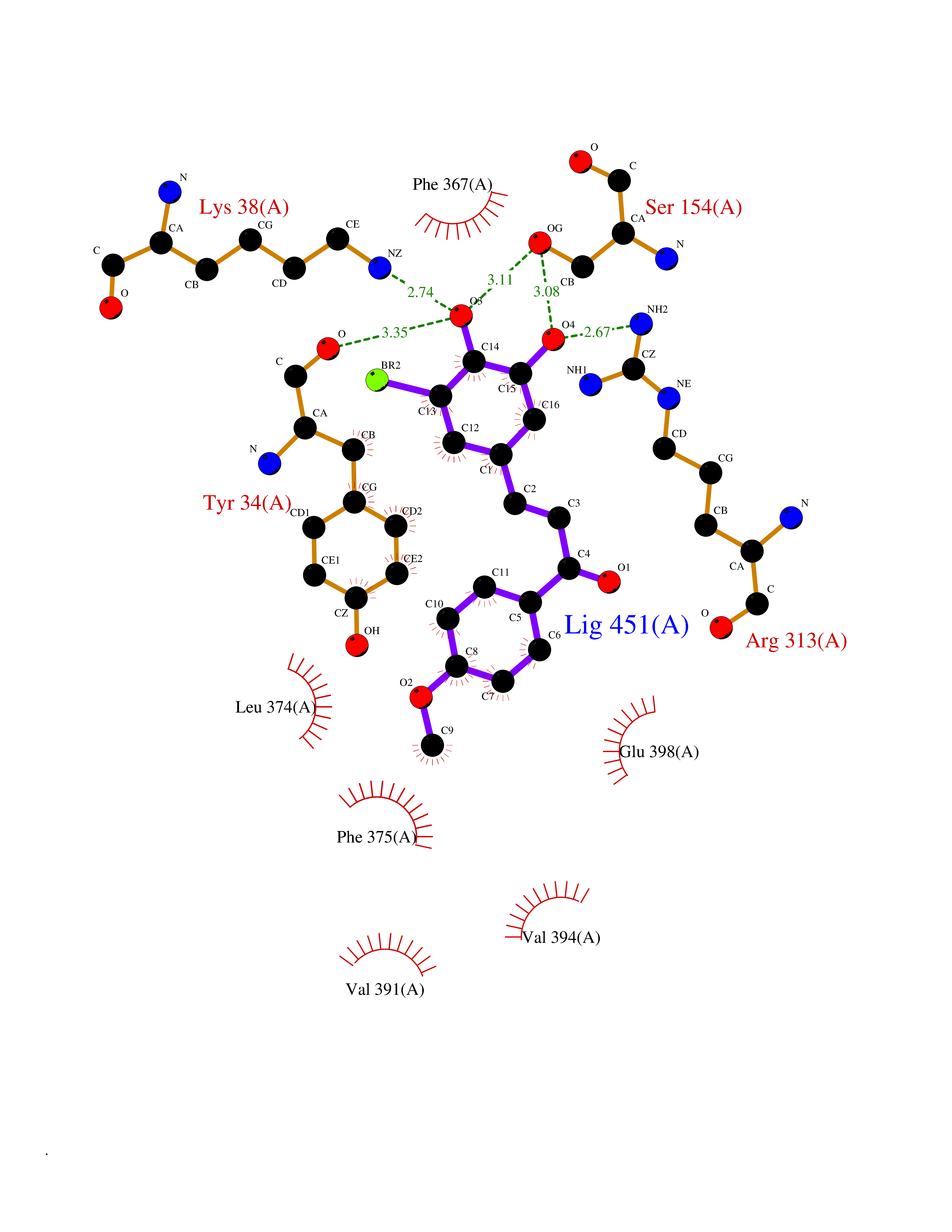 Target general information Gen name Bact fabF Organism Escherichia coli (strain K12) Uniprot ID TTD ID Synonyms KASB; KAS II; KAS 2; FabF; Condensing enzyme FabF; Beta-ketoacyl-acyl carrier protein synthase B; Beta-ketoacyl-ACP synthase II; Beta-ketoacyl-ACP synthase 2; 3-oxoacyl-[acyl-carrier-protein] synthase Protein family Thiolase-like superfamily, Beta-ketoacyl-ACP synthases family Biochemical class Acyltransferase Function Catalyzes the condensation reaction of fatty acid synthesis by the addition to an acyl acceptor of two carbons from malonyl-ACP. Has a preference for short chain acid substrates and may function to supply the octanoic substrates for lipoic acid biosynthesis. Related diseases Pigmentary disorder, reticulate, with systemic manifestations, X-linked (PDR) [MIM:301220]: An X-linked recessive disorder characterized by recurrent infections and sterile inflammation in various organs. Diffuse skin hyperpigmentation with a distinctive reticulate pattern is universally evident by early childhood. This is later followed in many patients by hypohidrosis, corneal inflammation and scarring, enterocolitis that resembles inflammatory bowel disease, and recurrent urethral strictures. Melanin and amyloid deposition is present in the dermis. Affected males also have a characteristic facies with frontally upswept hair and flared eyebrows. Female carriers have only restricted pigmentary changes along Blaschko's lines. {ECO:0000269|PubMed:27019227}. The disease is caused by variants affecting the gene represented in this entry. XLPDR is caused by a recurrent intronic mutation that results in missplicing and reduced POLA1 expression. This leads to a decrease in cytosolic RNA:DNA hybrids and constitutive activation of type I interferon responses, but has no effect on cell replication. {ECO:0000269|PubMed:27019227}.; DISEASE: Van Esch-O'Driscoll syndrome (VEODS) [MIM:301030]: An X-linked recessive syndrome characterized by different degrees of intellectual disability, moderate to severe short stature, microcephaly, hypogonadism, and variable congenital malformations. {ECO:0000269|PubMed:31006512}. The disease is caused by variants affecting the gene represented in this entry. Drugs (DrugBank ID) DB08366; DB01034; DB03017; DB08407 Interacts with P0A6Y8 EC number EC 2.3.1.179 Uniprot keywords 3D-structure; Acyltransferase; Direct protein sequencing; Fatty acid biosynthesis; Fatty acid metabolism; Lipid biosynthesis; Lipid metabolism; Reference proteome; Transferase Protein physicochemical properties Chain ID A Molecular weight (Da) 42852 Length 411 Aromaticity 0.06 Instability index 31.41 Isoelectric point 5.72 Charge (pH=7) -7.34 3D Binding mode Sequence KRRVVVTGLGMLSPVGNTVESTWKALLAGQSGISLIDHFDTSAYATKFAGLVKDFNCEDIISRKEQRKMDAFIQYGIVAGVQAMQDSGLEITEENATRIGAAIGSGIGGLGLIEENHTSLMNGGPRKISPFFVPSTIVNMVAGHLTIMYGLRGPSISIATAQTSGVHNIGHAARIIAYGDADVMVAGGAEKASTPLGVGGFGAARALSTRNDNPQAASRPWDKERDGFVLGDGAGMLVLEEYEHAKKRGAKIYAELVGFGMSSDAYHMTSPPENGAGAALAMANALRDAGIEASQIGYVNAHGTSTPAGDKAEAQAVKTIFGEAASRVLVSSTKSMTGHLLGAAGAVESIYSILALRDQAVPPTINLDNPDEGCDLDFVPHEARQVSGMEYTLCNSFGFGGTNGSLIFKKI Hydrogen bonds contact Hydrophobic contact | ||||