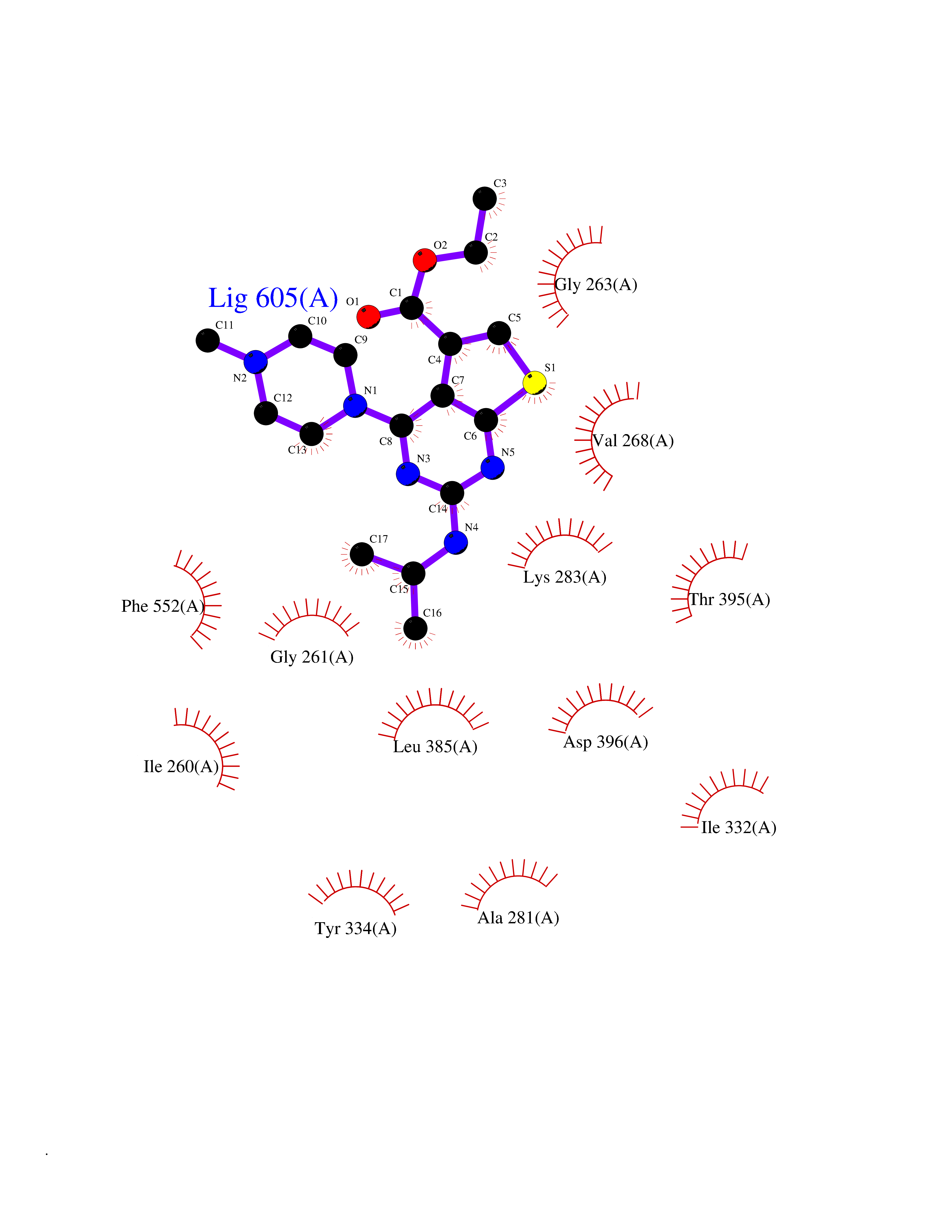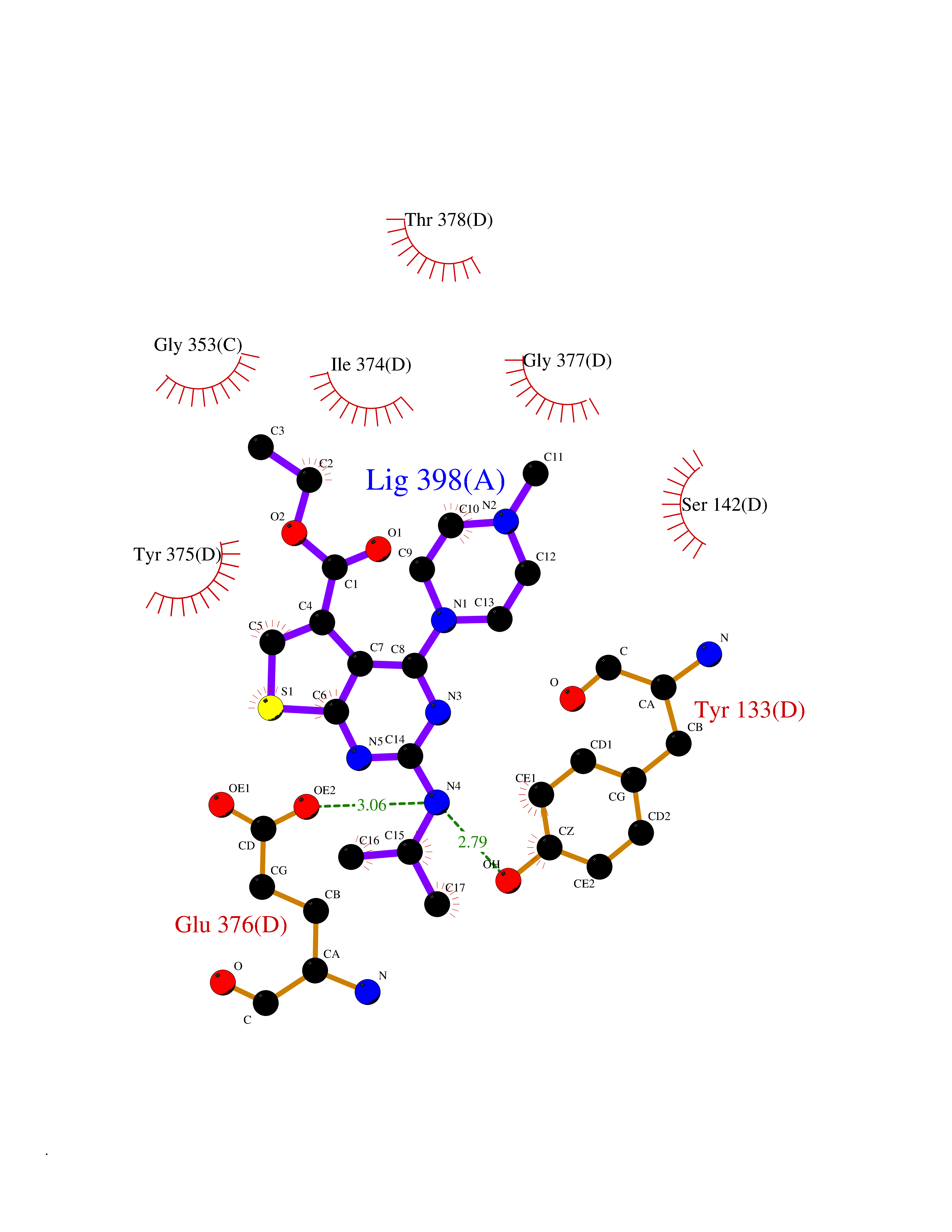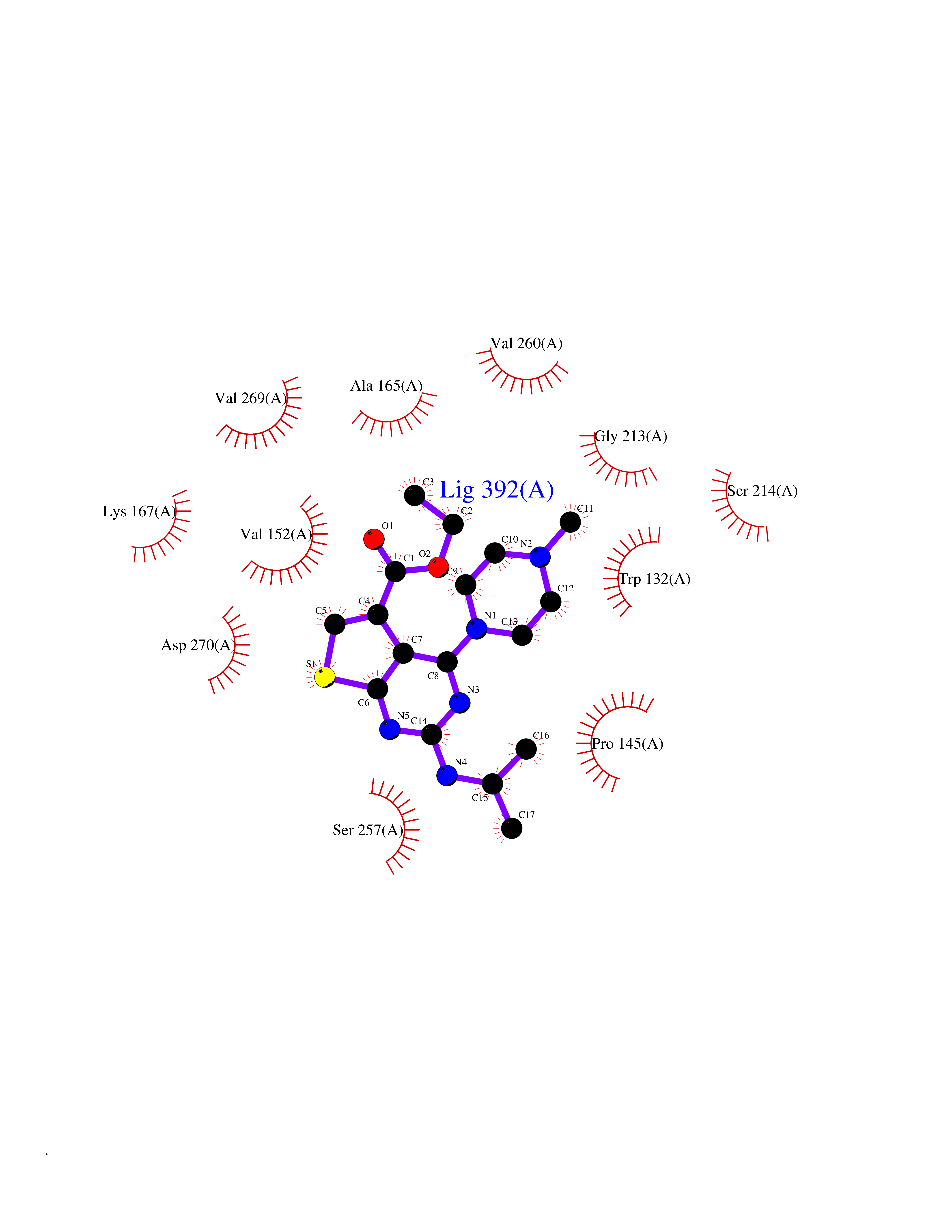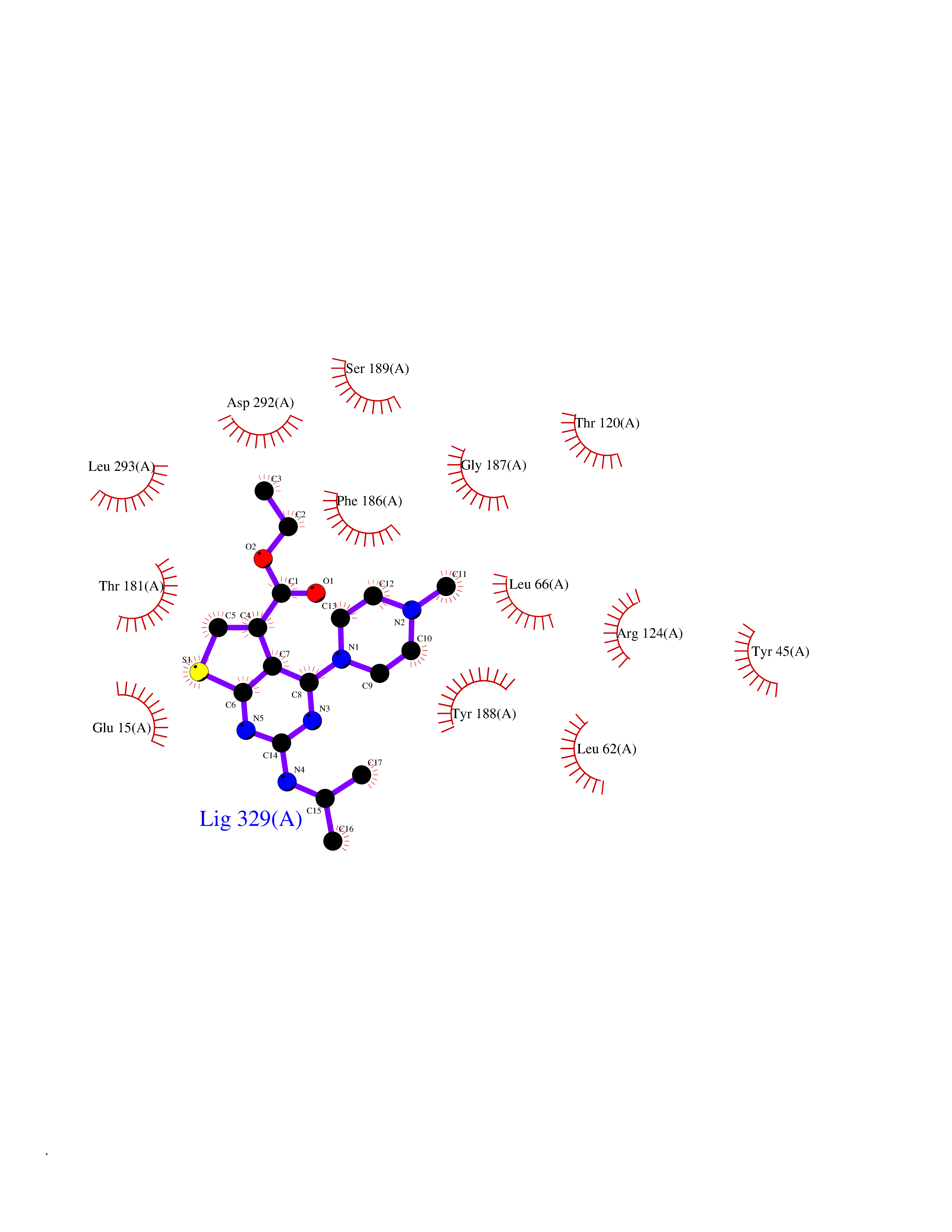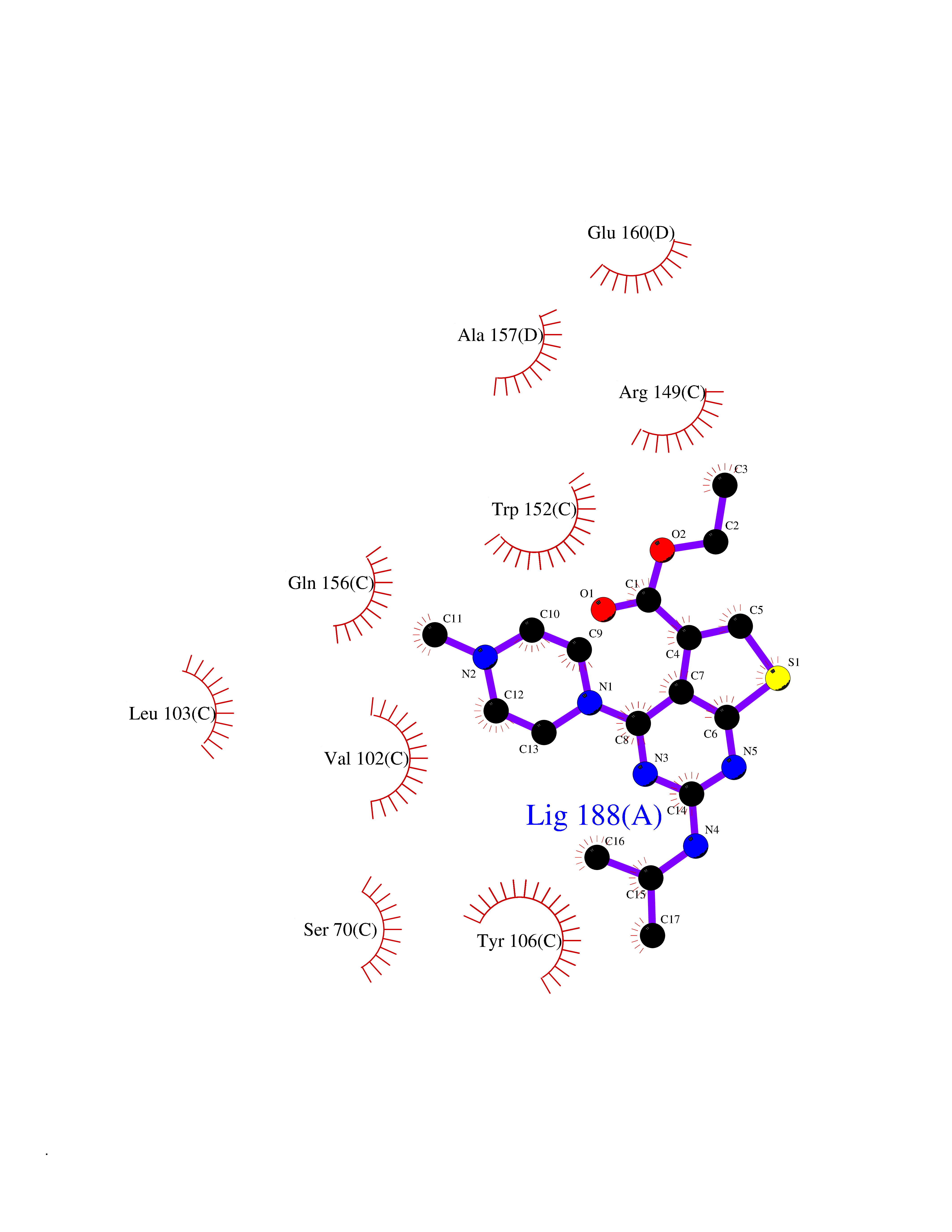 Target general information Gen name GUCY1B1 Organism Homo sapiens (Human) Uniprot ID TTD ID Synonyms Soluble guanylate cyclase small subunit; Guanylate cyclase soluble subunit beta-3; Guanylate cyclase soluble subunit beta-1; GUCY1B3; GUCSB3; GUC1B3; GCS-beta-3; GCS-beta-1 Protein family Adenylyl cyclase class-4/guanylyl cyclase family Biochemical class Phosphorus-oxygen lyase Function Mediates responses to nitric oxide (NO) by catalyzing the biosynthesis of the signaling molecule cGMP. Related diseases Neurodevelopmental disorder with seizures, hypotonia, and brain imaging abnormalities (NEDSHBA) [MIM:618922]: An autosomal recessive neurodevelopmental disorder characterized by global developmental delay, hypotonia, severe to profound intellectual disability, early-onset epilepsy, and microcephaly. Neuroimaging shows cerebral atrophy, thin corpus callosum and hypomyelination in a majority of cases. Death in childhood may occur. {ECO:0000269|PubMed:27435318, ECO:0000269|PubMed:28097321, ECO:0000269|PubMed:32286009, ECO:0000269|PubMed:33476302, ECO:0000269|PubMed:33500274}. The disease is caused by variants affecting the gene represented in this entry. Drugs (DrugBank ID) DB09401; DB15456 Interacts with Q02108; Q02108-1 EC number EC 4.6.1.2 Uniprot keywords 3D-structure; Alternative splicing; cGMP biosynthesis; Cytoplasm; Direct protein sequencing; GTP-binding; Heme; Iron; Lyase; Metal-binding; Nucleotide-binding; Proteomics identification; Reference proteome Protein physicochemical properties Chain ID A,B Molecular weight (Da) 121177 Length 1071 Aromaticity 0.09 Instability index 42.35 Isoelectric point 6.18 Charge (pH=7) -11.86 3D Binding mode Sequence SRVYLHTLAESICKLIFPEFERLNVALQRTLAKHKFEKTIAEQAVAAGVPVEVIKESLGEEVFKICYEEDENILGVVGGTLKDFLNSFSTLLKQASILCLLHVYYFTTSLILPGIIKAAAHVLYETEVEVSLYLLYSVHSLVIPTSLFCKTFPFHFMFDKDMTILQFGNGIRRLMNRRDKPNFEEYFEILTPKINQTFSGIMTMLNMQFVVRVRRVMDLKGQMIYIVESSAILFLGSPCVLYLSDIPIHNALRDVVLIGEQARAQDGLKKRLGKLKATLEQAHQALEEEKKKTVDLLCSIFPCEVAQQLWQGQVVQAKKFSNVTMLFSDIVGFTAICSQCSPLQVITMLNALYTRFDQQCGELDVYKVETIGDAYCVAGGLHKESDTHAVQIALMAVKMMELSDEVMSPHGEPIKMRIGLHSGSVFAGVVGVKMPRYCLFGNNVTLANKFESCSVPRKINVSPTTYRLLKDCPGFVFTPRSREELPPNFPSEIPGICHFLDAMYGFVNHALELLVIRNYGPEVWEDIKKEAQLDEEGQFLVRIIYDDSKTYDLVAAASKVLNLNAGEILQMFGKMFFVFCQESGYDTILRVLGSNVREFLQNLDALHDHLATIYPGMRAPSFRCTDAEKGKGLILHYYSEREGLQDIVIGIIKTVAQQIHGTEIDMKVIQQRNEECDHTQFLIEEKEESRISPYTFCKAFPFHIIFDRDLVVTQCGNAIYRVLPQLQPGNCSLLSVFSLVRPHIDISFHGILSHINTVFVLRSKEGLLDSCLRLKGQMIYLPEADSILFLCSPSVMNLDDLTRRGLYLSDIPLHDATRDLVLLGEQFREEYKLTQELEILTDRLQLTLRALEDEKKKTDTLLYSVLPPSVANELRHKRPVPAKRYDNVTILFSGIVGFNAFCSKHAGAMKIVNLLNDLYTRFDTLTDSRKNPFVYKVETVGDKYMTVSGLPEPCIHHARSICHLALDMMEIAGQVQVDGESVQITIGIHTGEVVTGVIGQRMPRYCLFGNTVNLTSRTETTGEKGKINVSEYTYRCLMSPENSDPQFHLEHRGPVSMKGKKEPMQVWFLSR Hydrogen bonds contact Hydrophobic contact | ||||
