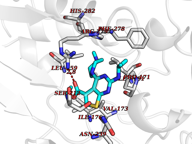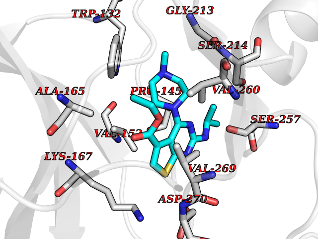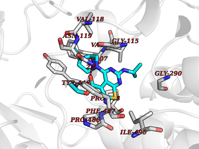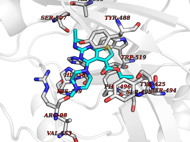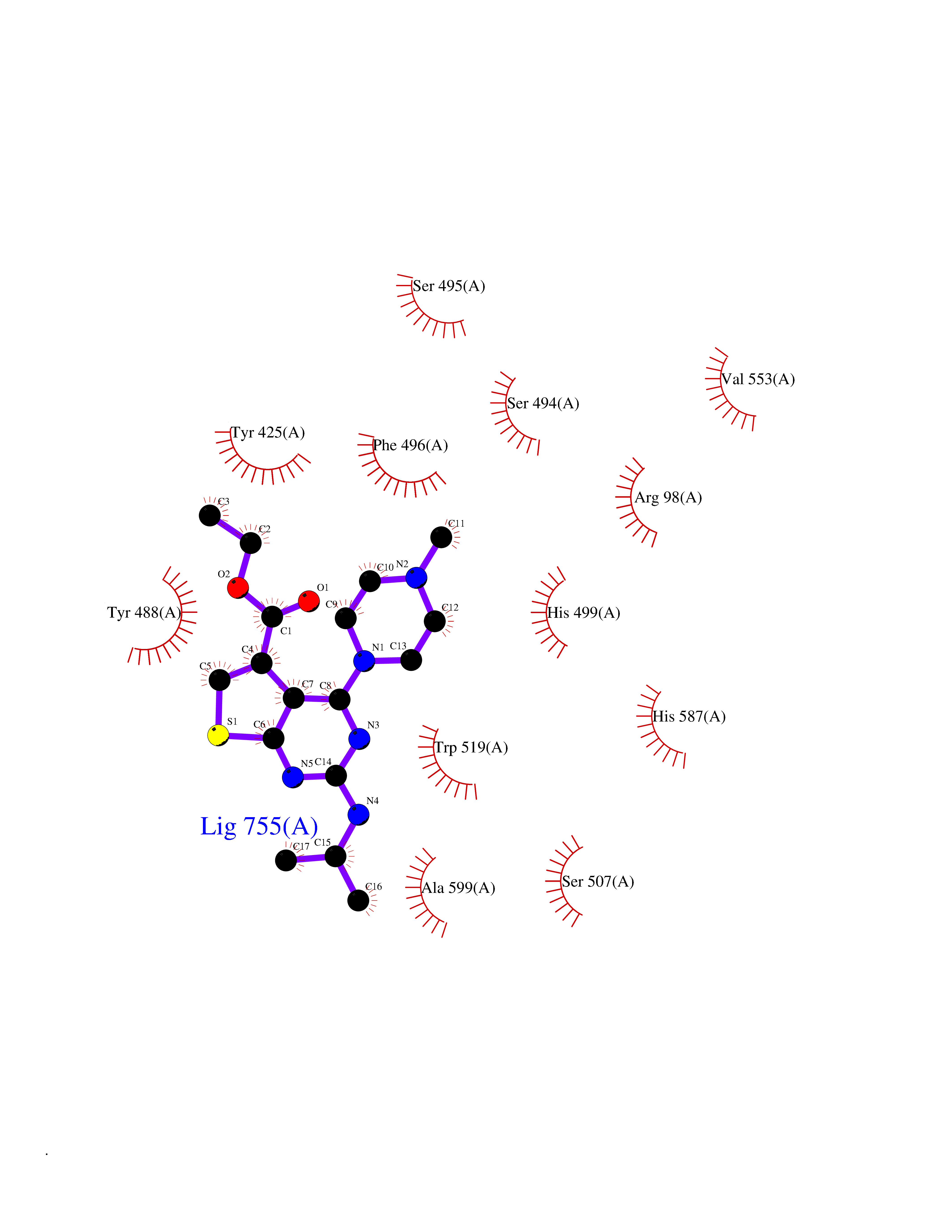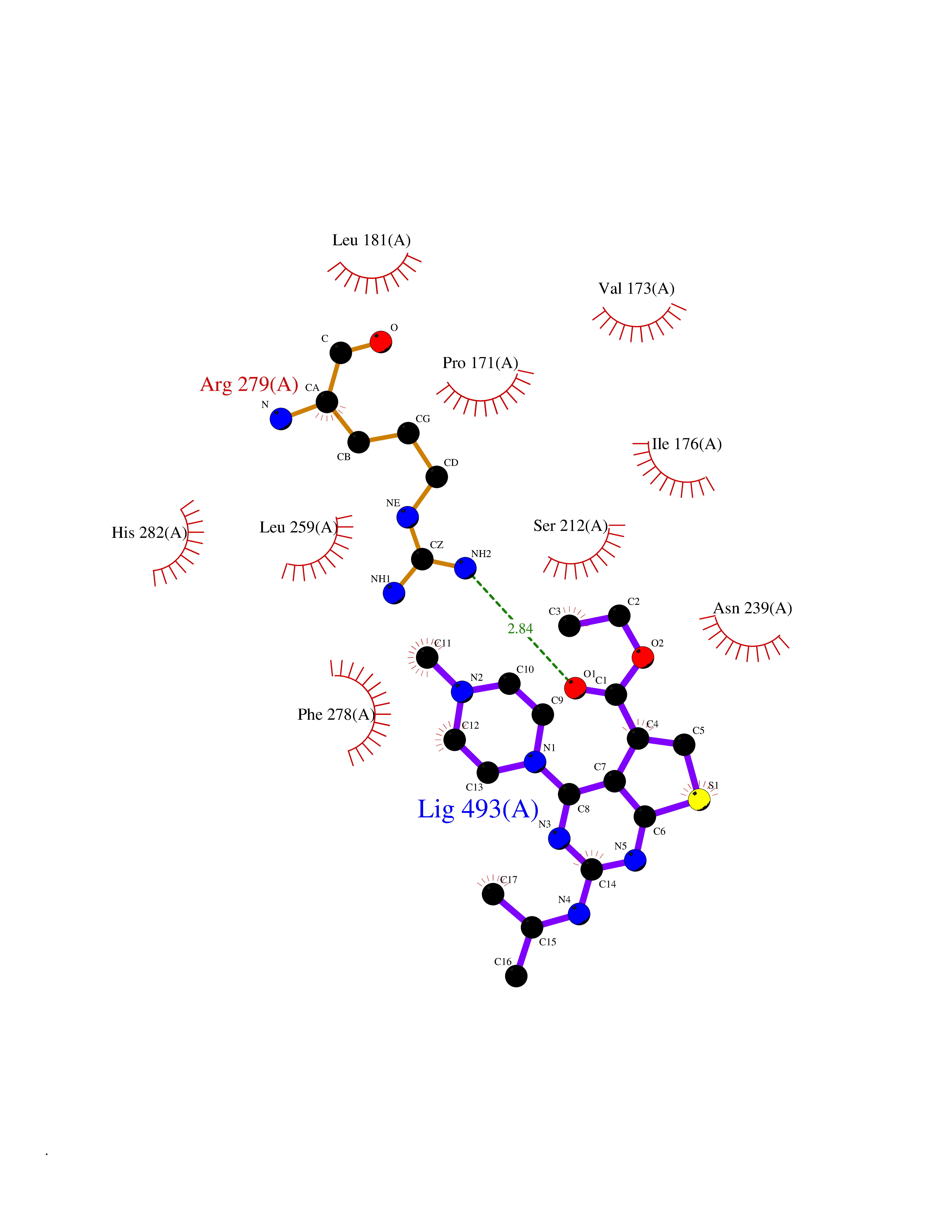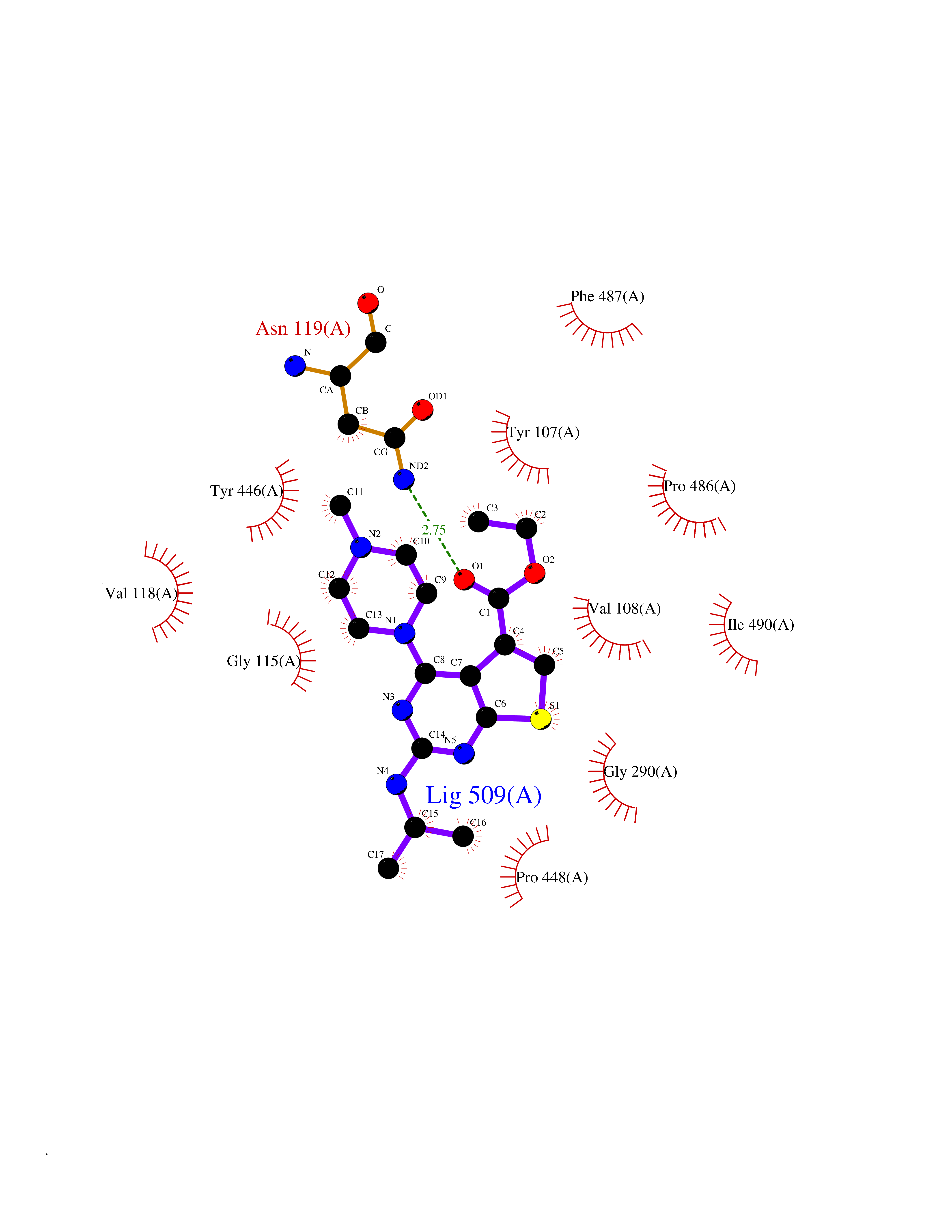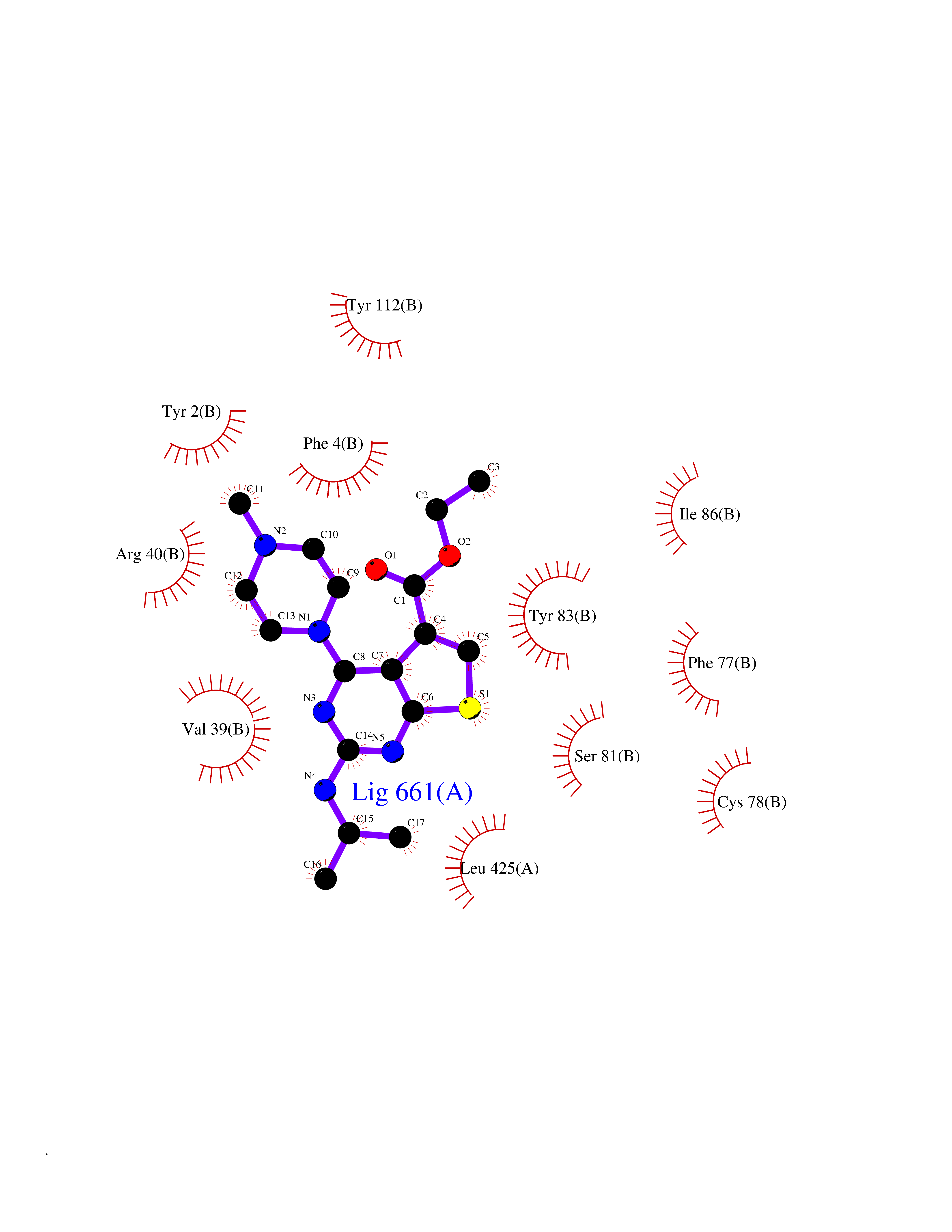 Target general information Gen name GUCY1B1 Organism Homo sapiens (Human) Uniprot ID TTD ID Synonyms Soluble guanylate cyclase small subunit; Guanylate cyclase soluble subunit beta-3; Guanylate cyclase soluble subunit beta-1; GUCY1B3; GUCSB3; GUC1B3; GCS-beta-3; GCS-beta-1 Protein family Adenylyl cyclase class-4/guanylyl cyclase family Biochemical class Phosphorus-oxygen lyase Function Mediates responses to nitric oxide (NO) by catalyzing the biosynthesis of the signaling molecule cGMP. Related diseases Neurodevelopmental disorder with seizures, hypotonia, and brain imaging abnormalities (NEDSHBA) [MIM:618922]: An autosomal recessive neurodevelopmental disorder characterized by global developmental delay, hypotonia, severe to profound intellectual disability, early-onset epilepsy, and microcephaly. Neuroimaging shows cerebral atrophy, thin corpus callosum and hypomyelination in a majority of cases. Death in childhood may occur. {ECO:0000269|PubMed:27435318, ECO:0000269|PubMed:28097321, ECO:0000269|PubMed:32286009, ECO:0000269|PubMed:33476302, ECO:0000269|PubMed:33500274}. The disease is caused by variants affecting the gene represented in this entry. Drugs (DrugBank ID) DB09401; DB15456 Interacts with Q02108; Q02108-1 EC number EC 4.6.1.2 Uniprot keywords 3D-structure; Alternative splicing; cGMP biosynthesis; Cytoplasm; Direct protein sequencing; GTP-binding; Heme; Iron; Lyase; Metal-binding; Nucleotide-binding; Proteomics identification; Reference proteome Protein physicochemical properties Chain ID A,B Molecular weight (Da) 121177 Length 1071 Aromaticity 0.09 Instability index 42.35 Isoelectric point 6.18 Charge (pH=7) -11.86 3D Binding mode Sequence SRVYLHTLAESICKLIFPEFERLNVALQRTLAKHKFEKTIAEQAVAAGVPVEVIKESLGEEVFKICYEEDENILGVVGGTLKDFLNSFSTLLKQASILCLLHVYYFTTSLILPGIIKAAAHVLYETEVEVSLYLLYSVHSLVIPTSLFCKTFPFHFMFDKDMTILQFGNGIRRLMNRRDKPNFEEYFEILTPKINQTFSGIMTMLNMQFVVRVRRVMDLKGQMIYIVESSAILFLGSPCVLYLSDIPIHNALRDVVLIGEQARAQDGLKKRLGKLKATLEQAHQALEEEKKKTVDLLCSIFPCEVAQQLWQGQVVQAKKFSNVTMLFSDIVGFTAICSQCSPLQVITMLNALYTRFDQQCGELDVYKVETIGDAYCVAGGLHKESDTHAVQIALMAVKMMELSDEVMSPHGEPIKMRIGLHSGSVFAGVVGVKMPRYCLFGNNVTLANKFESCSVPRKINVSPTTYRLLKDCPGFVFTPRSREELPPNFPSEIPGICHFLDAMYGFVNHALELLVIRNYGPEVWEDIKKEAQLDEEGQFLVRIIYDDSKTYDLVAAASKVLNLNAGEILQMFGKMFFVFCQESGYDTILRVLGSNVREFLQNLDALHDHLATIYPGMRAPSFRCTDAEKGKGLILHYYSEREGLQDIVIGIIKTVAQQIHGTEIDMKVIQQRNEECDHTQFLIEEKEESRISPYTFCKAFPFHIIFDRDLVVTQCGNAIYRVLPQLQPGNCSLLSVFSLVRPHIDISFHGILSHINTVFVLRSKEGLLDSCLRLKGQMIYLPEADSILFLCSPSVMNLDDLTRRGLYLSDIPLHDATRDLVLLGEQFREEYKLTQELEILTDRLQLTLRALEDEKKKTDTLLYSVLPPSVANELRHKRPVPAKRYDNVTILFSGIVGFNAFCSKHAGAMKIVNLLNDLYTRFDTLTDSRKNPFVYKVETVGDKYMTVSGLPEPCIHHARSICHLALDMMEIAGQVQVDGESVQITIGIHTGEVVTGVIGQRMPRYCLFGNTVNLTSRTETTGEKGKINVSEYTYRCLMSPENSDPQFHLEHRGPVSMKGKKEPMQVWFLSR Hydrogen bonds contact Hydrophobic contact | ||||