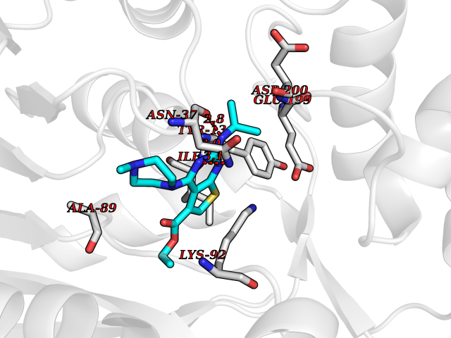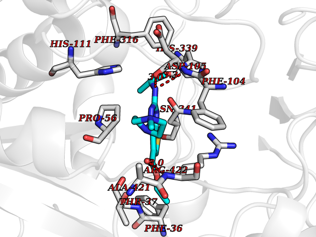 Target general information Gen name Bact metC Organism Escherichia coli (strain K12) Uniprot ID TTD ID Synonyms Cysteine-S-conjugate beta-lyase MetC; Cysteine lyase MetC; Cysteine desulfhydrase MetC; Cystathionine beta-lyase MetC; CL; CBL; Beta-cystathionase MetC; Bacterial CD Protein family Trans-sulfuration enzymes family Biochemical class Carbon-sulfur lyases Function Primarily catalyzes the cleavage of cystathionine to homocysteine, pyruvate and ammonia during methionine biosynthesis. Also exhibits cysteine desulfhydrase activity, producing sulfide from cysteine. In addition, under certain growth conditions, exhibits significant alanine racemase coactivity. Related diseases Coronary artery disease, autosomal dominant, 2 (ADCAD2) [MIM:610947]: A common heart disease characterized by reduced or absent blood flow in one or more of the arteries that encircle and supply the heart. Its most important complication is acute myocardial infarction. {ECO:0000269|PubMed:17332414, ECO:0000269|PubMed:23703864}. The disease is caused by variants affecting the gene represented in this entry.; DISEASE: Tooth agenesis, selective, 7 (STHAG7) [MIM:616724]: An autosomal dominant form of selective tooth agenesis, a common anomaly characterized by the congenital absence of one or more teeth. Selective tooth agenesis without associated systemic disorders has sometimes been divided into 2 types: oligodontia, defined as agenesis of 6 or more permanent teeth, and hypodontia, defined as agenesis of less than 6 teeth. The number in both cases does not include absence of third molars (wisdom teeth). {ECO:0000269|PubMed:26387593}. The disease is caused by variants affecting the gene represented in this entry. Drugs (DrugBank ID) NA Interacts with NA EC number EC 4.4.1.13 Uniprot keywords 3D-structure; Amino-acid biosynthesis; Cytoplasm; Direct protein sequencing; Lyase; Methionine biosynthesis; Pyridoxal phosphate; Reference proteome Protein physicochemical properties Chain ID A Molecular weight (Da) 42756.3 Length 391 Aromaticity 0.08 Instability index 27.11 Isoelectric point 6.01 Charge (pH=7) -6.11 3D Binding mode Sequence KLDTQLVNAGRSKKYTLGAVNSVIQRASSLVFDSVEAKKHATRNRANGELFYGRRGTLTHFSLQQAMCELEGGAGCVLFPCGAAAVANSILAFIEQGDHVLMTNTAYESSQDFCSKILSKLGVTTSWFDPLIGADIVKHLQPNTKIVFLESPGSITMEVHDVPAIVAAVRSVVPDAIIMIDNTWAAGVLFKALDFGIDVSIQAATKYLVGHSDAMIGTAVCNARCWEQLRENAYLMGQMVDADTAYITSRGLRTLGVRLRQHHESSLKVAEWLAEHPQVARVNHPALPGSKGHEFWKRDFTGSSGLFSFVLKKKLNNEELANYLDNFSLFSMAYSWGGYESLILANQPEHIAAIRPQGEIDFSGTLIRLHIGLEDVDDLIADLDAGFARIV Hydrogen bonds contact Hydrophobic contact | ||||