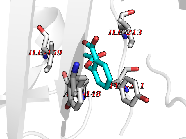 Target general information Gen name CYP2B6 Organism Homo sapiens (Human) Uniprot ID TTD ID Synonyms Cytochrome P450 IIB1; CYPIIB6; 1,4-cineole 2-exo-monooxygenase Protein family Cytochrome P450 family Biochemical class Paired donor oxygen oxidoreductase Function In liver microsomes, this enzyme is involved in an NADPH-dependent electron transport pathway. It oxidizes a variety of structurally unrelated compounds, including steroids, fatty acids, and xenobiotics. Acts as a 1,4-cineole 2-exo-monooxygenase. Cytochromes P450 are a group of heme-thiolate monooxygenases. Related diseases Aromatic L-amino-acid decarboxylase deficiency (AADCD) [MIM:608643]: An inborn error in neurotransmitter metabolism that leads to combined serotonin and catecholamine deficiency. It causes developmental and psychomotor delay, poor feeding, lethargy, ptosis, intermittent hypothermia, gastrointestinal disturbances. The onset is early in infancy and inheritance is autosomal recessive. {ECO:0000269|PubMed:14991824, ECO:0000269|PubMed:15079002, ECO:0000269|Ref.12}. The disease is caused by variants affecting the gene represented in this entry. Drugs (DrugBank ID) DB08369; DB02974; DB11932; DB12001; DB14973; DB15568; DB00321; DB00381; DB00701; DB01435; DB00714; DB06413; DB06697; DB13132; DB11586; DB01076; DB15011; DB00972; DB08822; DB13997; DB04975; DB01086; DB00865; DB00443; DB04794; DB12151; DB01194; DB05541; DB01222; DB01156; DB09061; DB14737; DB00564; DB06119; DB00439; DB00568; DB00604; DB00515; DB12499; DB00349; DB06470; DB00758; DB01559; DB00257; DB01394; DB05219; DB08865; DB11672; DB14635; DB04664; DB00531; DB08912; DB01151; DB16650; DB01234; DB14649; DB04856; DB00514; DB00829; DB00586; DB01184; DB00997; DB00470; DB00476; DB00625; DB15444; DB13874; DB11718; DB08899; DB00751; DB11823; DB00655; DB00898; DB01466; DB00574; DB12265; DB01544; DB00472; DB01095; DB00176; DB01320; DB05087; DB00986; DB01159; DB00956; DB00741; DB09054; DB01181; DB00458; DB00762; DB11633; DB06636; DB00753; DB11757; DB01167; DB14568; DB09570; DB01221; DB06738; DB01026; DB11951; DB09078; DB12070; DB05667; DB00281; DB00836; DB01601; DB00455; DB04871; DB12130; DB09280; DB00772; DB09238; DB14921; DB14009; DB01043; DB00170; DB00454; DB00532; DB04817; DB00333; DB00763; DB01028; DB09241; DB00849; DB00959; DB06710; DB00379; DB06148; DB01110; DB06595; DB16236; DB00745; DB11763; DB00220; DB00238; DB00622; DB00184; DB01115; DB04868; DB12005; DB00435; DB00957; DB09074; DB16267; DB11632; DB01173; DB11837; DB04938; DB05467; DB00715; DB08883; DB01074; DB04930; DB12978; DB03575; DB01174; DB00252; DB13941; DB17472; DB11642; DB06209; DB14631; DB00635; DB01069; DB00818; DB00908; DB00481; DB08896; DB11853; DB16826; DB02709; DB00615; DB01045; DB11753; DB01201; DB08864; DB00503; DB06176; DB00296; DB00412; DB00778; DB01037; DB06739; DB01104; DB01236; DB00641; DB00398; DB15569; DB12548; DB09118; DB06729; DB01138; DB00675; DB12020; DB12095; DB00231; DB00624; DB13943; DB13944; DB13946; DB11712; DB01041; DB09499; DB04572; DB08816; DB00208; DB06137; DB00193; DB00755; DB12245; DB12808; DB00197; DB12255; DB00313; DB11613; DB08881; DB00661; DB09185; DB11739; DB00582; DB09068; DB14975; DB15035 Interacts with NA EC number EC 1.14.13.- Uniprot keywords 3D-structure; Alternative splicing; Endoplasmic reticulum; Heme; Iron; Lipid metabolism; Membrane; Metal-binding; Microsome; Monooxygenase; NADP; Oxidoreductase; Phosphoprotein; Proteomics identification; Reference proteome Protein physicochemical properties Chain ID A Molecular weight (Da) 53293 Length 465 Aromaticity 0.12 Instability index 38.79 Isoelectric point 8.63 Charge (pH=7) 5.35 3D Binding mode Sequence GKLPPGPRPLPLLGNLLQMDRRGLLKSFLRFREKYGDVFTVHLGPRPVVMLCGVEAIREALVDKAEAFSGRGKIAMVDPFFRGYGVIFANGNRWKVLRRFSVTTMRDFGMGKRSVEERIQEEAQCLIEELRKSKGALMDPTFLFQSITANIICSIVFGKRFHYQDQEFLKMLNLFYQTFSLISSVFGQLFELFSGFLKHFPGAHRQVYKNLQEINAYIGHSVEKHRETLDPSAPRDLIDTYLLHMEKEKSNAHSEFSHQNLNLNTLSLFFAGTETTSTTLRYGFLLMLKYPHVAERVYREIEQVIGPHRPPELHDRAKMPYTEAVIYEIQRFSDLLPMGVPHIVTQHTSFRGYIIPKDTEVFLILSTALHDPHYFEKPDAFNPDHFLDANGALKKTEAFIPFSLGKRICLGEGIARAELFLFFTTILQNFSMASPVAPEDIDLTPQECGVGKIPPTYQIRFLPRH Hydrogen bonds contact Hydrophobic contact | ||||