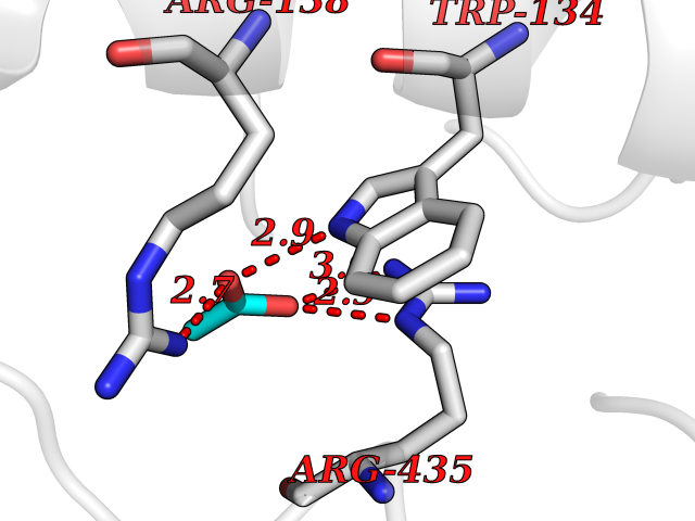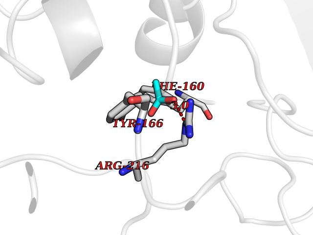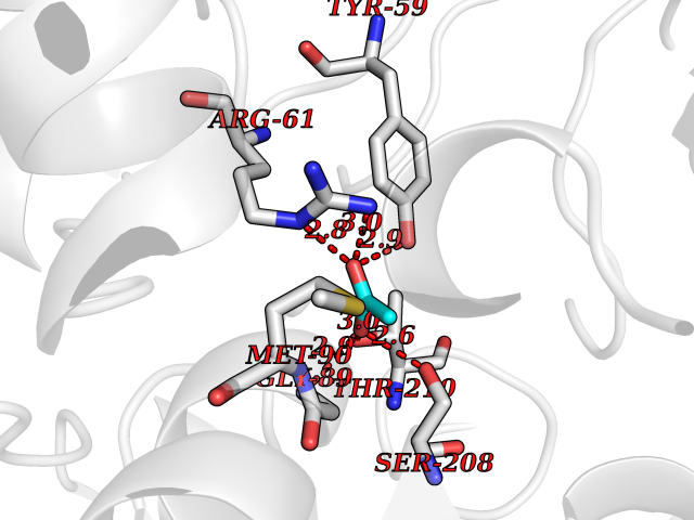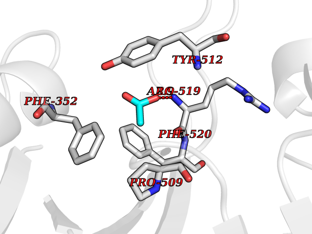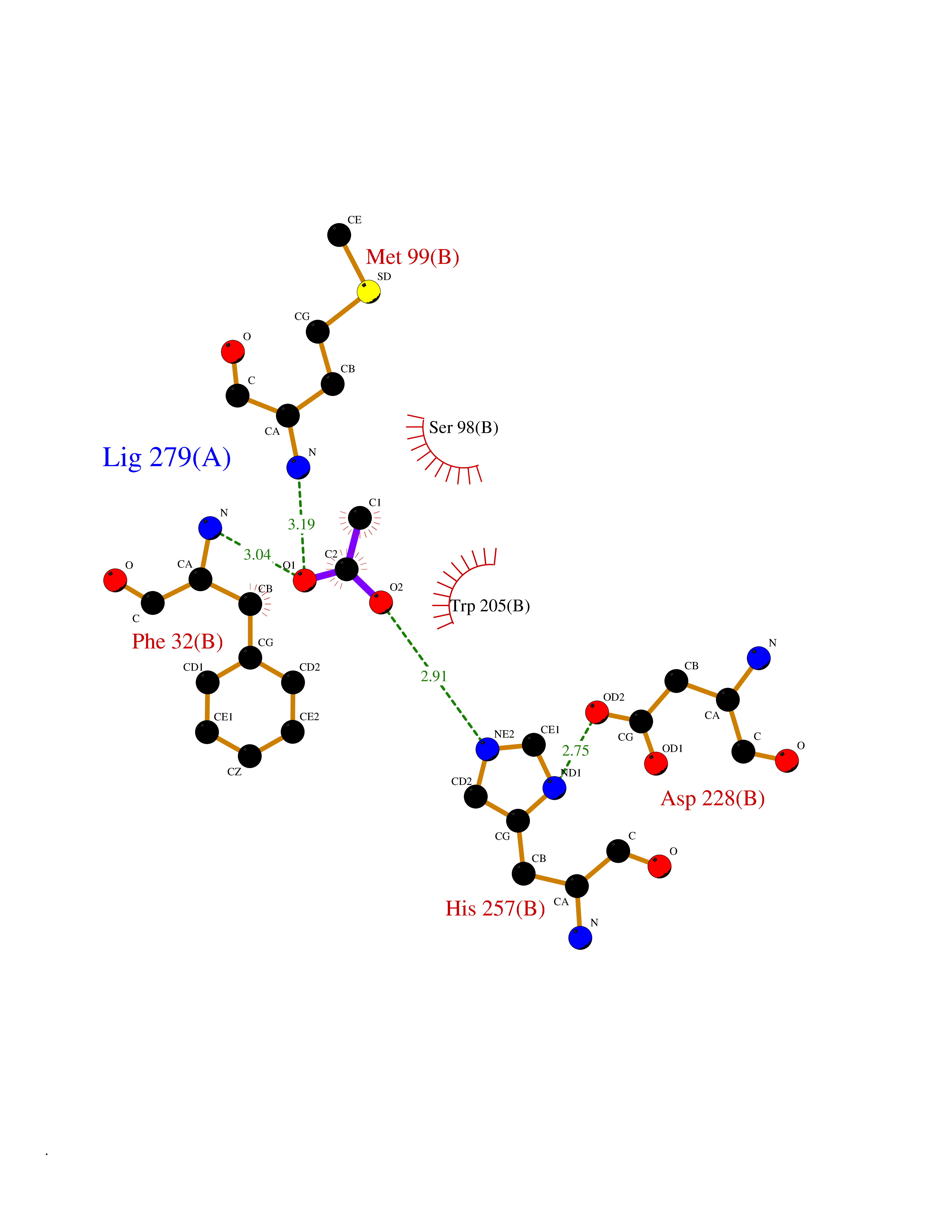 Target general information Gen name cpo Organism Kitasatospora aureofaciens (Streptomyces aureofaciens) Uniprot ID TTD ID NA Synonyms cpoT Protein family AB hydrolase superfamily, Bacterial non-heme haloperoxidase / perhydrolase family Biochemical class Haloperoxidase Function Chloride peroxidase activity. Related diseases Hypervalinemia and hyperleucine-isoleucinemia (HVLI) [MIM:618850]: An autosomal recessive metabolic disorder characterized by highly elevated plasma concentrations of valine and leucine/isoleucine. Affected individuals suffer from headache and mild memory impairment. {ECO:0000269|PubMed:25653144}. The disease is caused by variants affecting the gene represented in this entry. A patient with hypervalinemia and hyperleucine-isoleucinemia was identified as compound heterozygote for Gln-170 (inherited from his father) and Lys-264 (inherited from his mother), both variants reduced the catalytic activity of the enzyme. After treatment with vitamin B6, a precursor of pyridoxal 5'-phosphate, a BCAT2 cofactor, the blood levels of branched chain amino acids, especially valine, were decreased and brain lesions were improved. {ECO:0000269|PubMed:25653144}. Drugs (DrugBank ID) DB03793 Interacts with NA EC number 1.11.1.- Uniprot keywords 3D-structure; Chloride; Oxidoreductase; Peroxidase Protein physicochemical properties Chain ID A,B Molecular weight (Da) 60428.4 Length 554 Aromaticity 0.13 Instability index 31.26 Isoelectric point 4.65 Charge (pH=7) -32.72 3D Binding mode Sequence PFITVGQENSTSIDLYYEDHGAGQPVVLIHGFPLSGHSWERQSAALLDAGYRVITYDRRGFGQSSQPTTGYDYDTFAADLNTVLETLDLQDAVLVGFSMGTGEVARYVSSYGTARIAKVAFLASLEPFLLKTDDNPDGAAPKEFFDGIVAAVKADRYAFYTGFFNDFYNLDENLGTRISEEAVRNSWNTAASGGFFAAAAAPTTWYTDFRADIPRIDVPALILHGTGDRTLPIENTARVFHKALPSAEYVEVEGAPHGLLWTHAEEVNTALLAFLAKPFITVGQENSTSIDLYYEDHGAGQPVVLIHGFPLSGHSWERQSAALLDAGYRVITYDRRGFGQSSQPTTGYDYDTFAADLNTVLETLDLQDAVLVGFSMGTGEVARYVSSYGTARIAKVAFLASLEPFLLKTDDNPDGAAPKEFFDGIVAAVKADRYAFYTGFFNDFYNLDENLGTRISEEAVRNSWNTAASGGFFAAAAAPTTWYTDFRADIPRIDVPALILHGTGDRTLPIENTARVFHKALPSAEYVEVEGAPHGLLWTHAEEVNTALLAFLAK Hydrogen bonds contact Hydrophobic contact | ||||