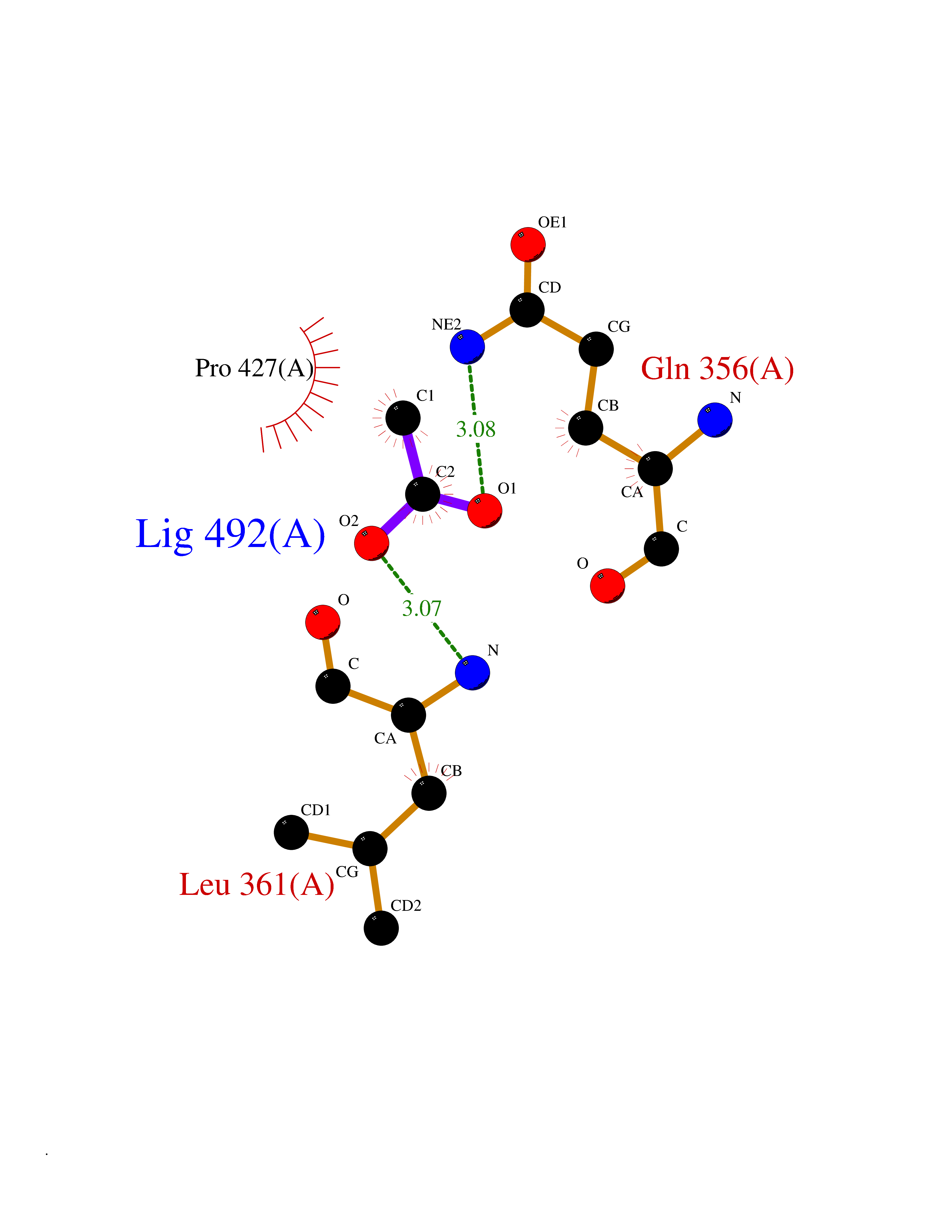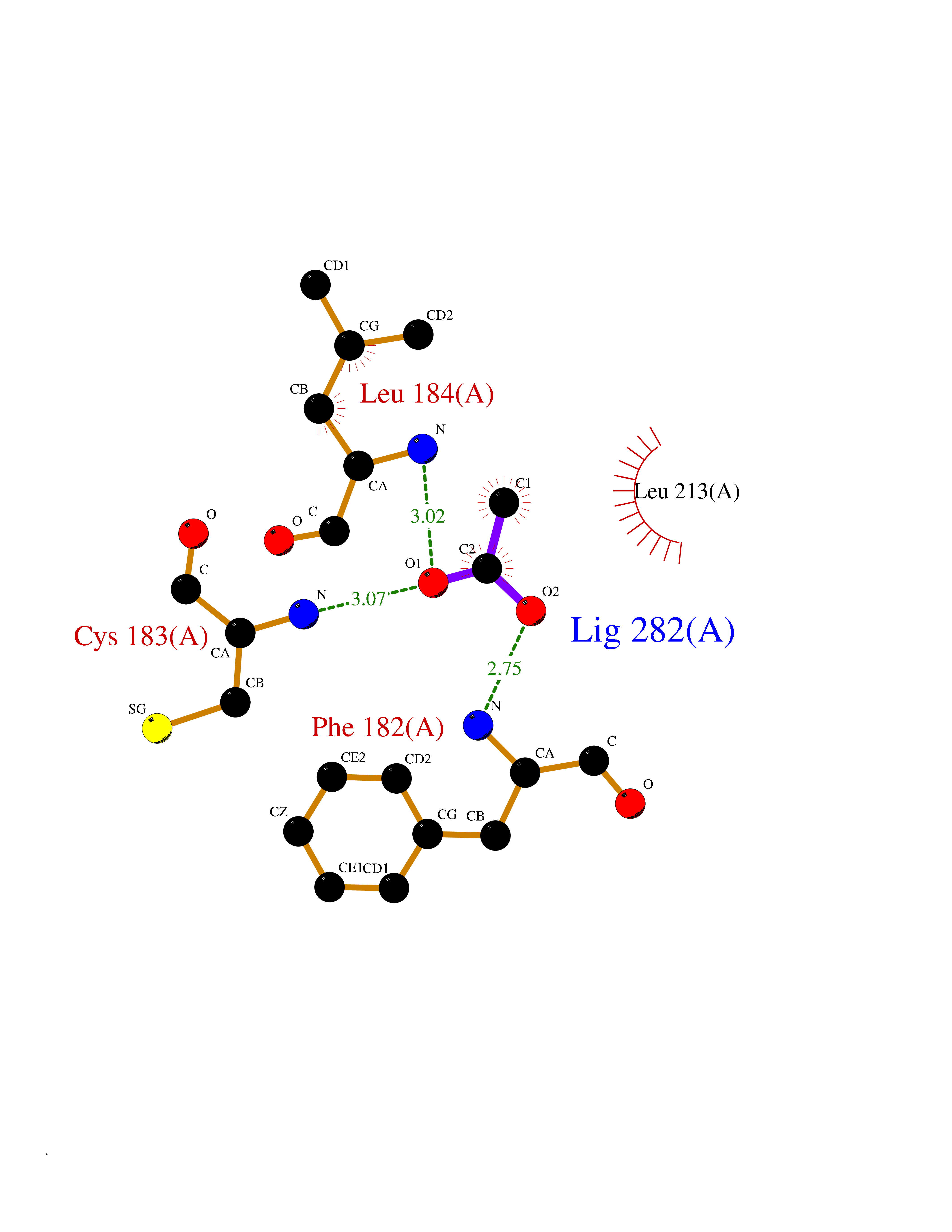 Target general information Gen name ACACA Organism Homo sapiens (Human) Uniprot ID TTD ID NA Synonyms ACAC;ACCA;ACC1 Protein family NA Biochemical class Ligase Function Acetyl-CoA carboxylase activity.ATP binding.Biotin carboxylase activity.Identical protein binding.Metal ion binding. Related diseases Acetyl-CoA carboxylase-alpha deficiency (ACACAD) [MIM:613933]: An autosomal recessive inborn error of de novo fatty acid synthesis associated with severe brain damage, persistent myopathy and poor growth. {ECO:0000269|PubMed:6114432}. The disease is caused by variants affecting the gene represented in this entry. Drugs (DrugBank ID) DB00121 Interacts with Q13085; O60218; P38398; Q96EB6; Q9CQ20; P02654; Q92915-2; Q6NTF9-3 EC number 6.4.1.2 Uniprot keywords 3D-structure; Acetylation; Allosteric enzyme; Alternative promoter usage; ATP-binding; Biotin; Cytoplasm; Direct protein sequencing; Fatty acid biosynthesis; Fatty acid metabolism; Ligase; Lipid biosynthesis; Lipid metabolism; Magnesium; Manganese; Metal-binding; Multifunctional enzyme; Nucleotide-binding; Phosphoprotein; Proteomics identification; Reference proteome Protein physicochemical properties Chain ID A,B Molecular weight (Da) 54237.7 Length 486 Aromaticity 0.09 Instability index 39.18 Isoelectric point 6.37 Charge (pH=7) -2.46 3D Binding mode Sequence VASPAEFVTRFGGNKVIEKVLIANNGIAAVKCMRSIRRWSYEMFRNERAIRFVVMVTPEDLKANAEYIKMADHYVPVPGGPNNNNYANVELILDIAKRIPVQAVWAGWGHASENPKLPELLLKNGIAFMGPPSQAMWALGDKIASSIVAQTAGIPTLPWSGSGLRVDWSKRILNVPQELYEKGYVKDVDDGLQAAEEVGYPVMIKASEGGGGKGIRKVNNADDFPNLFRQVQAEVPGSPIFVMRLAKQSRHLEVQILADQYGNAISLFGRDCSVQRRHQKIIEEAPATIATPAVFEHMEQCAVKLAKMVGYVSAGTVEYLYSQDGSFYFLELNPRLQVEHPCTEMVADVNLPAAQLQIAMGIPLYRIKDIRMMYGVSPWGDSPIDFEDSAHVPCPRGHVIAARITGTVQELNFRSNKNVWGYFSVQFGHCFSWGENREEAISNMVVALKELSIRGDFRTTVEYLIKLLETESFQMNRIDTGWLDRL Hydrogen bonds contact Hydrophobic contact | ||||