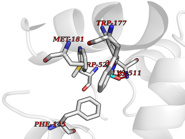 Target general information Gen name FOL1 Organism Saccharomyces cerevisiae (strain ATCC 204508 / S288c) (Baker's yeast) Uniprot ID TTD ID NA Synonyms N0848;YNL256W Protein family DHNA family; HPPK family; DHPS family Biochemical class Transferase Function 2-amino-4-hydroxy-6-hydroxymethyldihydropteridine diphosphokinase activity.7,8-dihydromonapterin aldolase activity.ATP binding.Dihydroneopterin aldolase activity.Dihydropteroate synthase activity.Kinase activity.Metal ion binding. Related diseases LIMK1 is located in the Williams-Beuren syndrome (WBS) critical region. WBS results from a hemizygous deletion of several genes on chromosome 7q11.23, thought to arise as a consequence of unequal crossing over between highly homologous low-copy repeat sequences flanking the deleted region. Drugs (DrugBank ID) DB00634 Interacts with NA EC number 2.5.1.15; 2.7.6.3; 4.1.2.25 Uniprot keywords 3D-structure; Acetylation; ATP-binding; Folate biosynthesis; Kinase; Lyase; Magnesium; Membrane; Metal-binding; Mitochondrion; Multifunctional enzyme; Nucleotide-binding; Phosphoprotein; Reference proteome; Transferase Protein physicochemical properties Chain ID A Molecular weight (Da) 58205.2 Length 513 Aromaticity 0.08 Instability index 42.41 Isoelectric point 5.92 Charge (pH=7) -8.31 3D Binding mode Sequence SWKRAFLAFGSNIGDRFKHIQMALQLLSREKTVKLRNISSIFESEPMYFKDQTPFMNGCVEVETLLTPSELLKLCKKIEYEELQRTIDLDIVMFLNSAGEDIIVNEPDLNIPHPRMLERTFVLEPLCELISPVHLHPVTAEPIVDHLKQLYDKQHDEDTLWKLVPLPYRSGVEPRFLKFKTATKTNRITVSPTYIMAIFNATPDSFSDGGEHFADIESQLNDIIKLCKDALYLHESVIIDVGGCSTRPNSIQASEEEEIRRSIPLIKAIRESTELPQDKVILSIDTYRSNVAKEAIKVGVDIINDISGGLFDSNMFAVIAENPEICYILSHTRGDISTMNRLAHYENFALGDSIQQEFVHNTDIQQLDDLKDKTVLIRNVGQEIGERYIKAIDNGVKRWQILIDPGLGFAKTWKQNLQIIRHIPILKNYSFTMNSNNSQVYVNLRNMPVLLGPSRKKFIGHITKDVDAKQRDFATGAVVASCIGFGSDMVRVHDVKNCSKSIKLADAIYKGLE Hydrogen bonds contact Hydrophobic contact | ||||