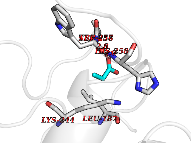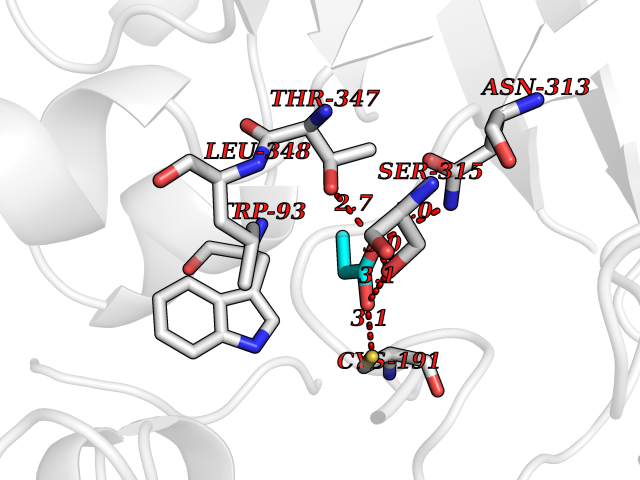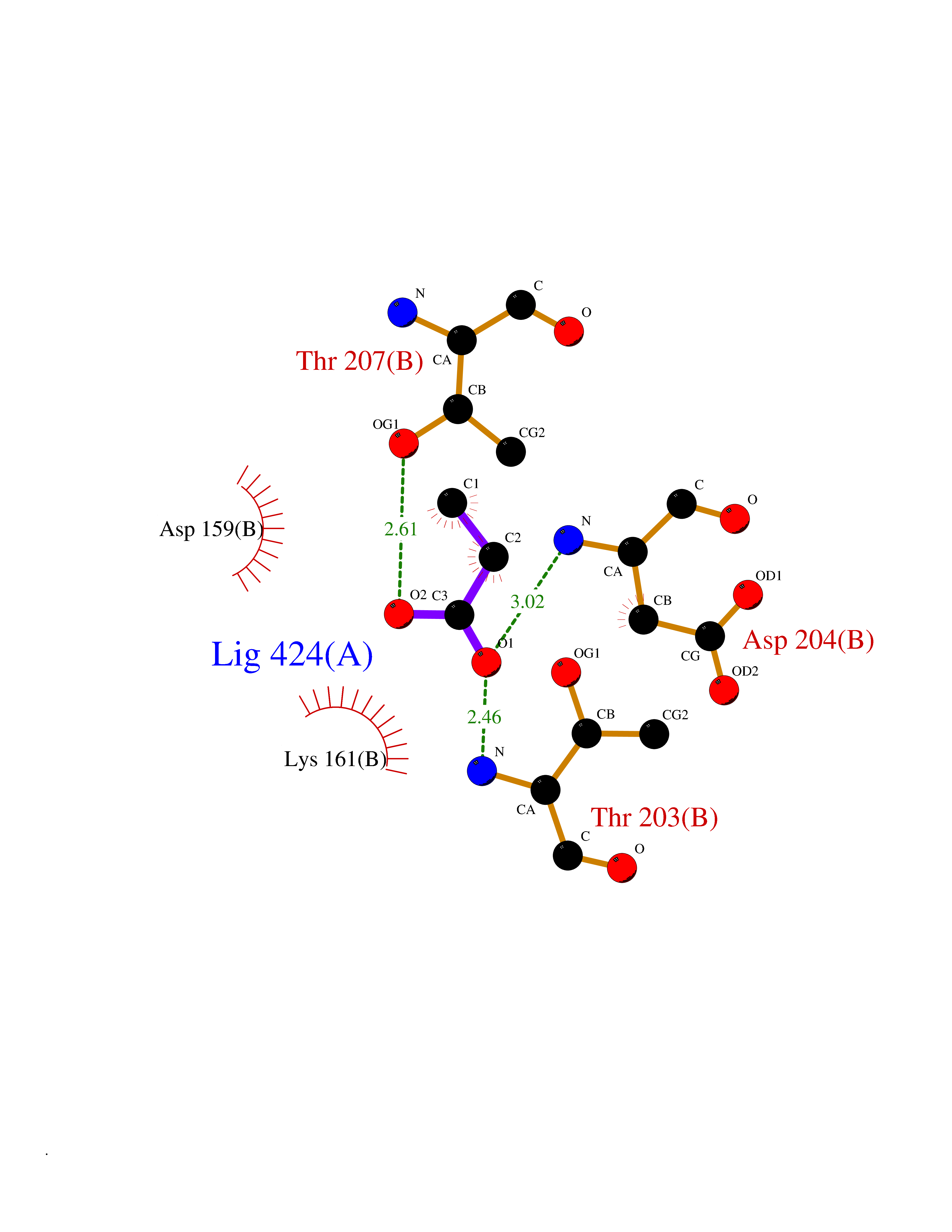 Target general information Gen name MycB icl Organism Mycobacterium tuberculosis (strain ATCC 25618 / H37Rv) Uniprot ID TTD ID Synonyms Isocitratase; Isocitrase; ICL Protein family Isocitrate lyase/PEP mutase superfamily, Isocitrate lyase family Biochemical class Carbon-carbon lyase Function Catalyzes the formation of succinate and glyoxylate from isocitrate, a key step of the glyoxylate cycle. May be involved in the assimilation of one-carbon compounds via the isocitrate lyase- positive serine pathway. Related diseases Intellectual developmental disorder, autosomal recessive 80, with variant lissencephaly (MRT80) [MIM:620653]: An autosomal recessive disorder characterized by global developmental delay, mildly to moderately impaired intellectual development, attention deficit-hyperactivity disorder, hypotonia, seizure, poor social skills, and autistic traits. Brain imaging shows fronto-temporal lissencephaly and pachygyria. {ECO:0000269|PubMed:37880421}. The disease is caused by variants affecting the gene represented in this entry. Drugs (DrugBank ID) DB04343 Interacts with NA EC number EC 4.1.3.1 Uniprot keywords 3D-structure; Glyoxylate bypass; Isopeptide bond; Lyase; Magnesium; Manganese; Metal-binding; Reference proteome; Tricarboxylic acid cycle; Ubl conjugation Protein physicochemical properties Chain ID A,B Molecular weight (Da) 93759.5 Length 854 Aromaticity 0.09 Instability index 28.02 Isoelectric point 4.98 Charge (pH=7) -34.53 3D Binding mode Sequence ASVVGTPKSAEQIQQEWDTNPRWKDVTRTYSAEDVVALQGSVVEEHTLARRGAEVLWEQLHDLEWVNALGALTGNMAVQQVRAGLKAIYLSGWQVAGDANLSGHTYPDQSLYPANSVPQVVRRINNALQRADQIAKIEGDTSVENWLAPIVADGEAGFGGALNVYELQKALIAAGVAGSHWEDQLASEKKCGHLGGKVLIPTQQHIRTLTSARLAADVADVPTVVIARTDAEAATLITSDVDERDQPFITGERTREGFYRTKNGIEPCIARAKAYAPFADLIWMETGTPDLEAARQFSEAVKAEYPDQMLAYNCSPSFNWKKHLDDATIAKFQKELAAMGFKFQFITLAGFHALNYSMFDLAYGYAQNQMSAYVELQEREFAAEERGYTATKHQREVGAGYFDRIATTVDPNSSTTALTGSTEEGQFASVVGTPKSAEQIQQEWDTNPRWKDVTRTYSAEDVVALQGSVVEEHTLARRGAEVLWEQLHDLEWVNALGALTGNMAVQQVRAGLKAIYLSGWQVAGDANLSGHTYPDQSLYPANSVPQVVRRINNALQRADQIAKIEGDTSVENWLAPIVADGEAGFGGALNVYELQKALIAAGVAGSHWEDQLASEKKCGHLGGKVLIPTQQHIRTLTSARLAADVADVPTVVIARTDAEAATLITSDVDERDQPFITGERTREGFYRTKNGIEPCIARAKAYAPFADLIWMETGTPDLEAARQFSEAVKAEYPDQMLAYNCSPSFNWKKHLDDATIAKFQKELAAMGFKFQFITLAGFHALNYSMFDLAYGYAQNQMSAYVELQEREFAAEERGYTATKHQREVGAGYFDRIATTVDPNSSTTALTGSTEEGQF Hydrogen bonds contact Hydrophobic contact | ||||