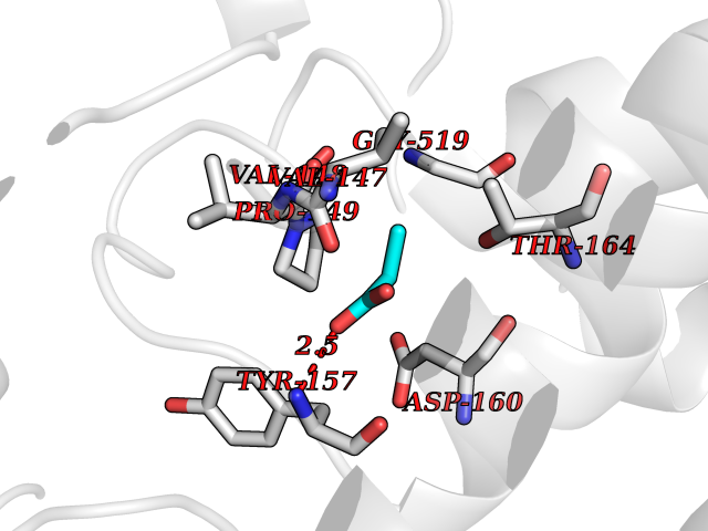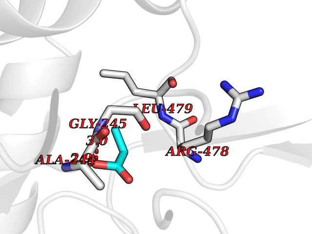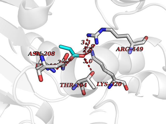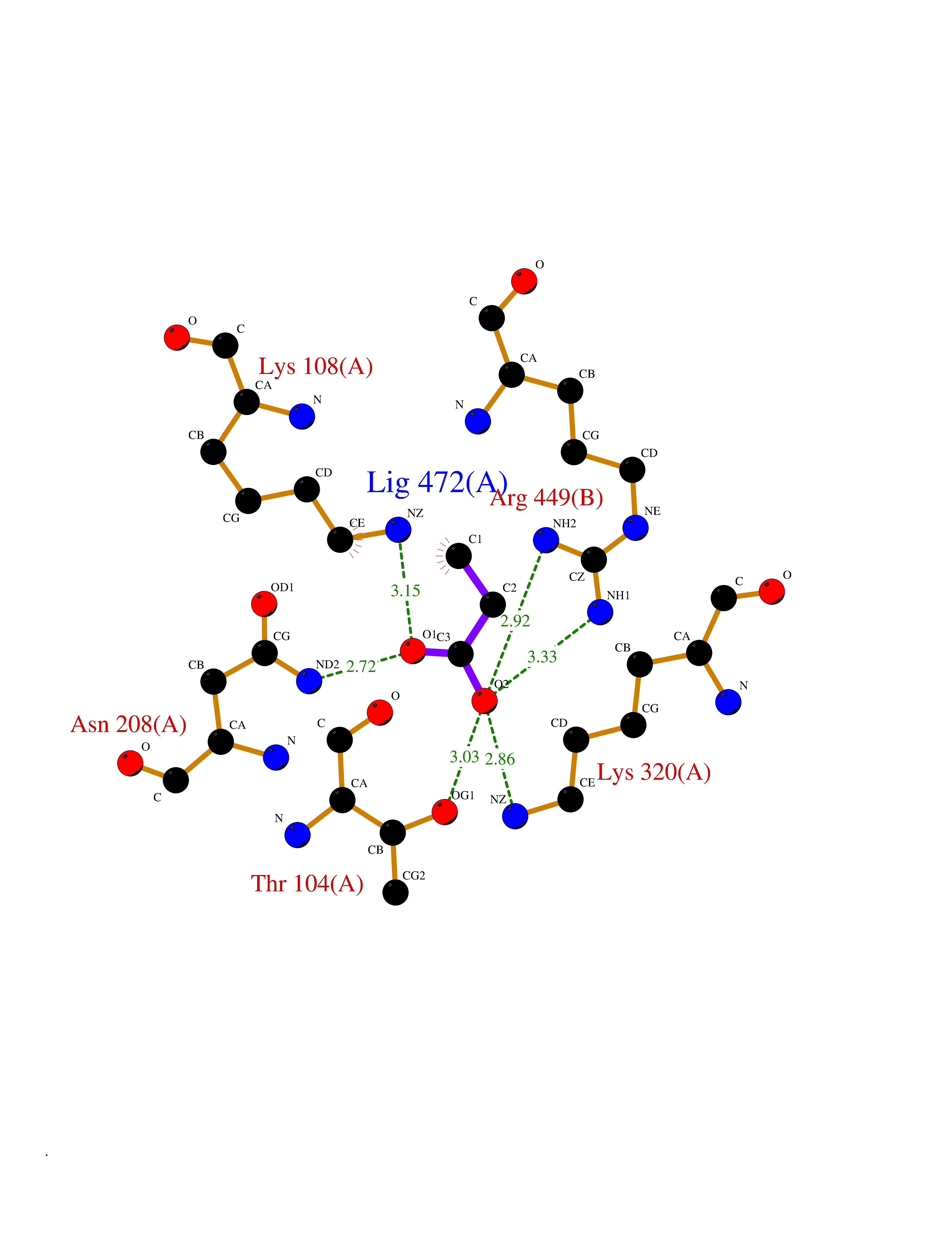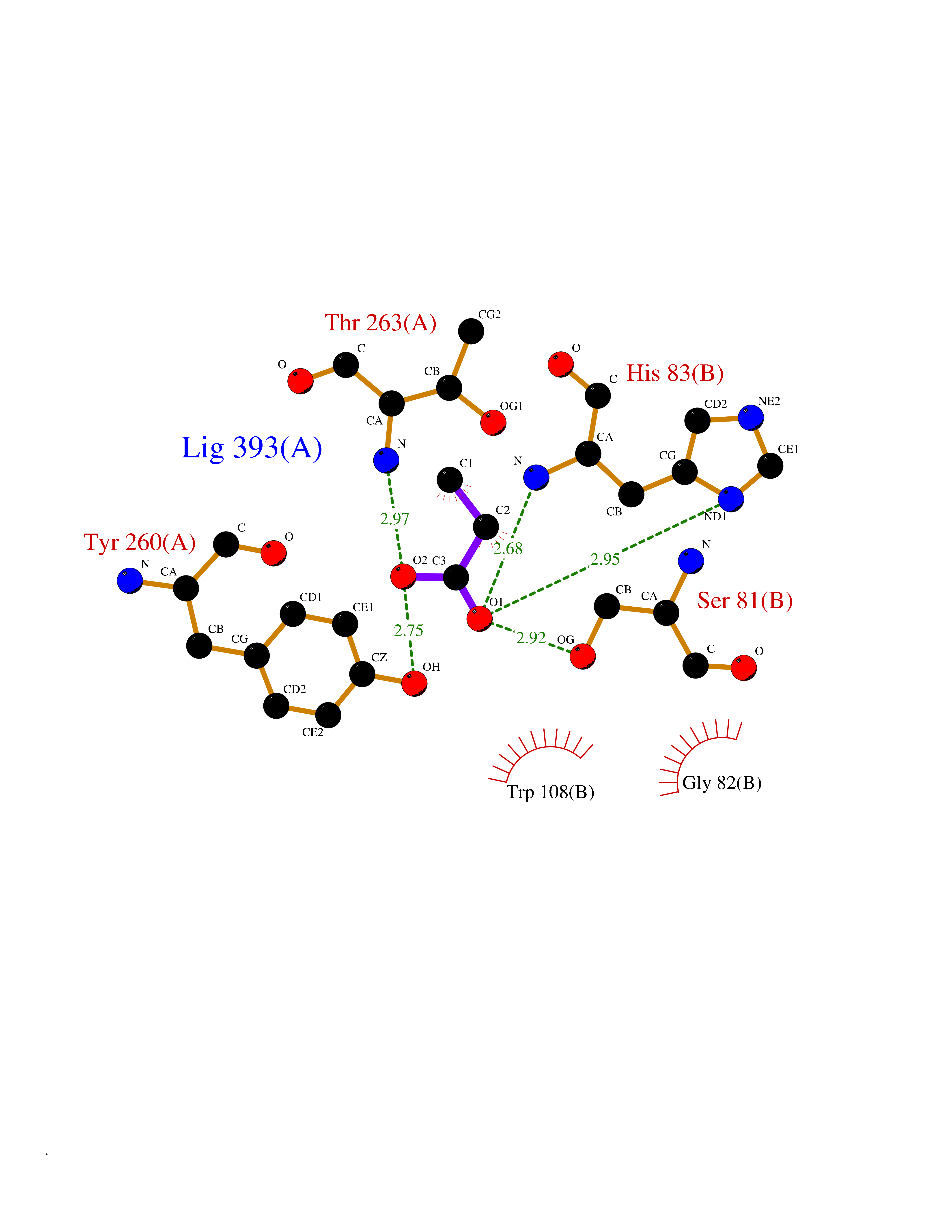 Target general information Gen name AGXT Organism Homo sapiens (Human) Uniprot ID TTD ID NA Synonyms AGT1;SPAT Protein family Class-V pyridoxal-phosphate-dependent aminotransferase family Biochemical class Transferase Function Alanine-glyoxylate transaminase activity.Amino acid binding.Identical protein binding.Protein homodimerization activity.Protein self-association.Pyridoxal phosphate binding.Receptor binding.Serine-pyruvate transaminase activity.Transaminase activity. Related diseases Hyperoxaluria primary 1 (HP1) [MIM:259900]: An inborn error of glyoxylate metabolism characterized by increased excretion of oxalate and glycolate, and progressive tissue accumulation of insoluble calcium oxalate. Affected individuals are at risk for nephrolithiasis, nephrocalcinosis and early onset end-stage renal disease. {ECO:0000269|PubMed:10394939, ECO:0000269|PubMed:10453743, ECO:0000269|PubMed:10541294, ECO:0000269|PubMed:10862087, ECO:0000269|PubMed:10960483, ECO:0000269|PubMed:12559847, ECO:0000269|PubMed:12777626, ECO:0000269|PubMed:1301173, ECO:0000269|PubMed:1349575, ECO:0000269|PubMed:15253729, ECO:0000269|PubMed:15849466, ECO:0000269|PubMed:15961946, ECO:0000269|PubMed:15963748, ECO:0000269|PubMed:16971151, ECO:0000269|PubMed:1703535, ECO:0000269|PubMed:17495019, ECO:0000269|PubMed:2039493, ECO:0000269|PubMed:23229545, ECO:0000269|PubMed:24055001, ECO:0000269|PubMed:24934730, ECO:0000269|PubMed:26149463, ECO:0000269|PubMed:8101040, ECO:0000269|PubMed:9192270, ECO:0000269|PubMed:9604803}. The disease is caused by variants affecting the gene represented in this entry. Drugs (DrugBank ID) DB08060; DB00160; DB02079; DB00145; DB04083; DB00114; DB00133 Interacts with Q5BKX5-3; P21549; P0C7T5; Q9NR55; Q9H5F2; Q9UKJ5; A8MQ03; O43281-2; A1KXE4-2; Q5TD97; P49356; P53539; P49639; Q15323; O76011; O76014; Q6A162; Q07627; P60328; Q9BYR8; Q3LI67; Q8IUC2; Q9BYQ4; O60711; Q99750; Q5VZ52; P0DPK4; O43482; P50542-1; O15496; Q6ZR37; Q9NQX0; Q8HWS3; Q5W111-2; Q8WVR3; Q6DKK2 EC number 2.6.1.44; 2.6.1.51 Uniprot keywords 3D-structure; Acetylation; Aminotransferase; Disease variant; Peroxisome; Phosphoprotein; Proteomics identification; Pyridoxal phosphate; Reference proteome; Transferase Protein physicochemical properties Chain ID A,B Molecular weight (Da) 84537 Length 771 Aromaticity 0.07 Instability index 36.81 Isoelectric point 8.42 Charge (pH=7) 6.81 3D Binding mode Sequence LLVTPPKALLKPLSIPNQLLLGPGPSNLPPRIMAAGGLQMIGSMSKDMYQIMDEIKEGIQYVFQTRNPLTLVISGSGHCALEAALVNVLEPGDSFLVGANGIWGQRAVDIGERIGARVHPMTKDPGGHYTLQEVEEGLAQHKPVLLFLTHGESSTGVLQPLDGFGELCHRYKCLLLVDSVASLGGTPLYMDRQGIDILYSGSQKALNAPPGTSLISFSDKAKKKMYSRKTKPFSFYLDIKWLANFWGCDDQPRMYHHTIPVISLYSLRESLALIAEQGLENSWRQHREAAAYLHGRLQALGLQLFVKDPALRLPTVTTVAVPAGYDWRDIVSYVIDHFDIEIMGGLGPSTGKVLRIGLLGCNATRENVDRVTEALRAALQHCPKKLLVTPPKALLKPLSIPNQLLLGPGPSNLPPRIMAAGGLQMIGSMSKDMYQIMDEIKEGIQYVFQTRNPLTLVISGSGHCALEAALVNVLEPGDSFLVGANGIWGQRAVDIGERIGARVHPMTKDPGGHYTLQEVEEGLAQHKPVLLFLTHGESSTGVLQPLDGFGELCHRYKCLLLVDSVASLGGTPLYMDRQGIDILYSGSQKALNAPPGTSLISFSDKAKKKMYSRKTKPFSFYLDIKWLANFWGCDDQPRMYHHTIPVISLYSLRESLALIAEQGLENSWRQHREAAAYLHGRLQALGLQLFVKDPALRLPTVTTVAVPAGYDWRDIVSYVIDHFDIEIMGGLGPSTGKVLRIGLLGCNATRENVDRVTEALRAALQHCPKKK Hydrogen bonds contact Hydrophobic contact | ||||