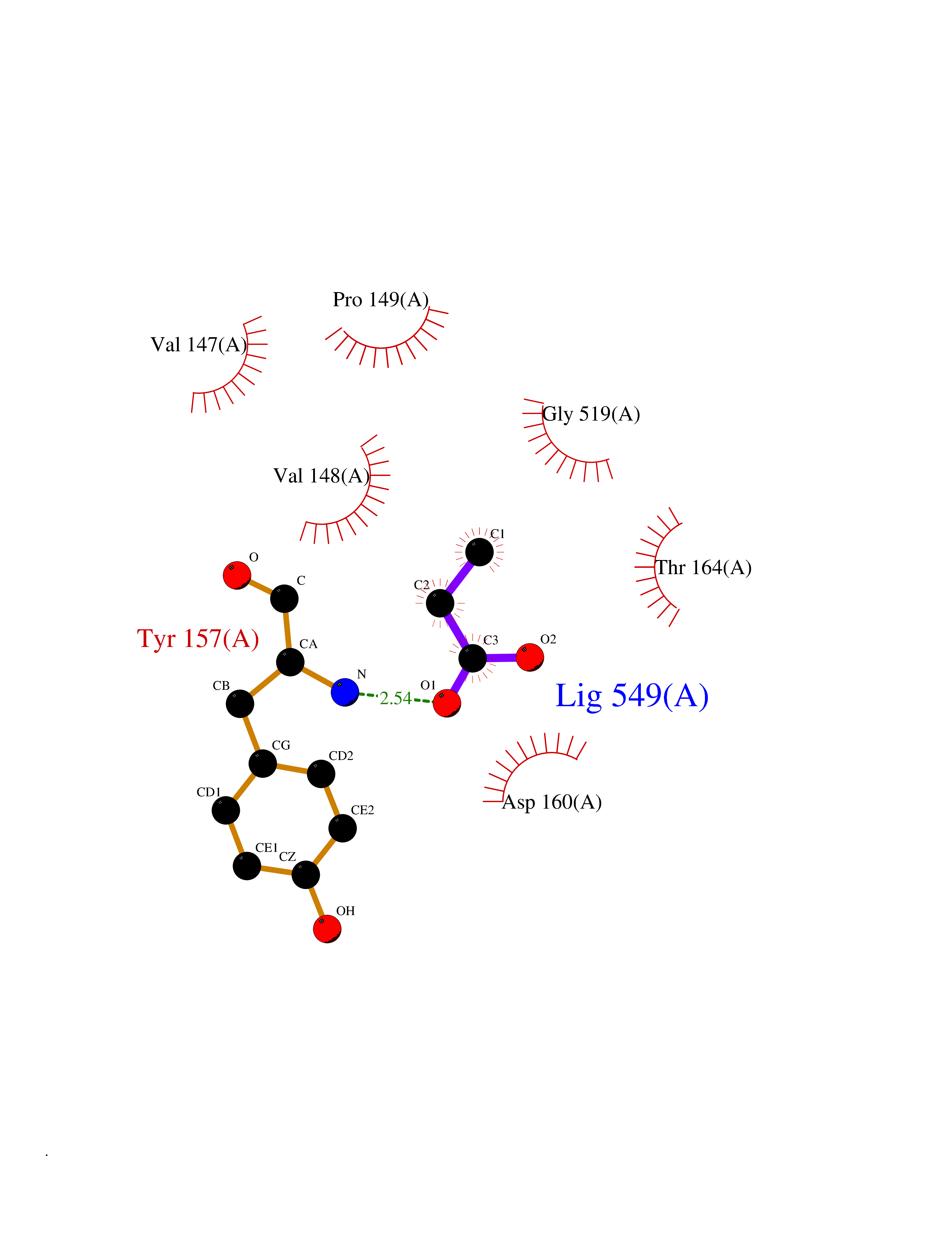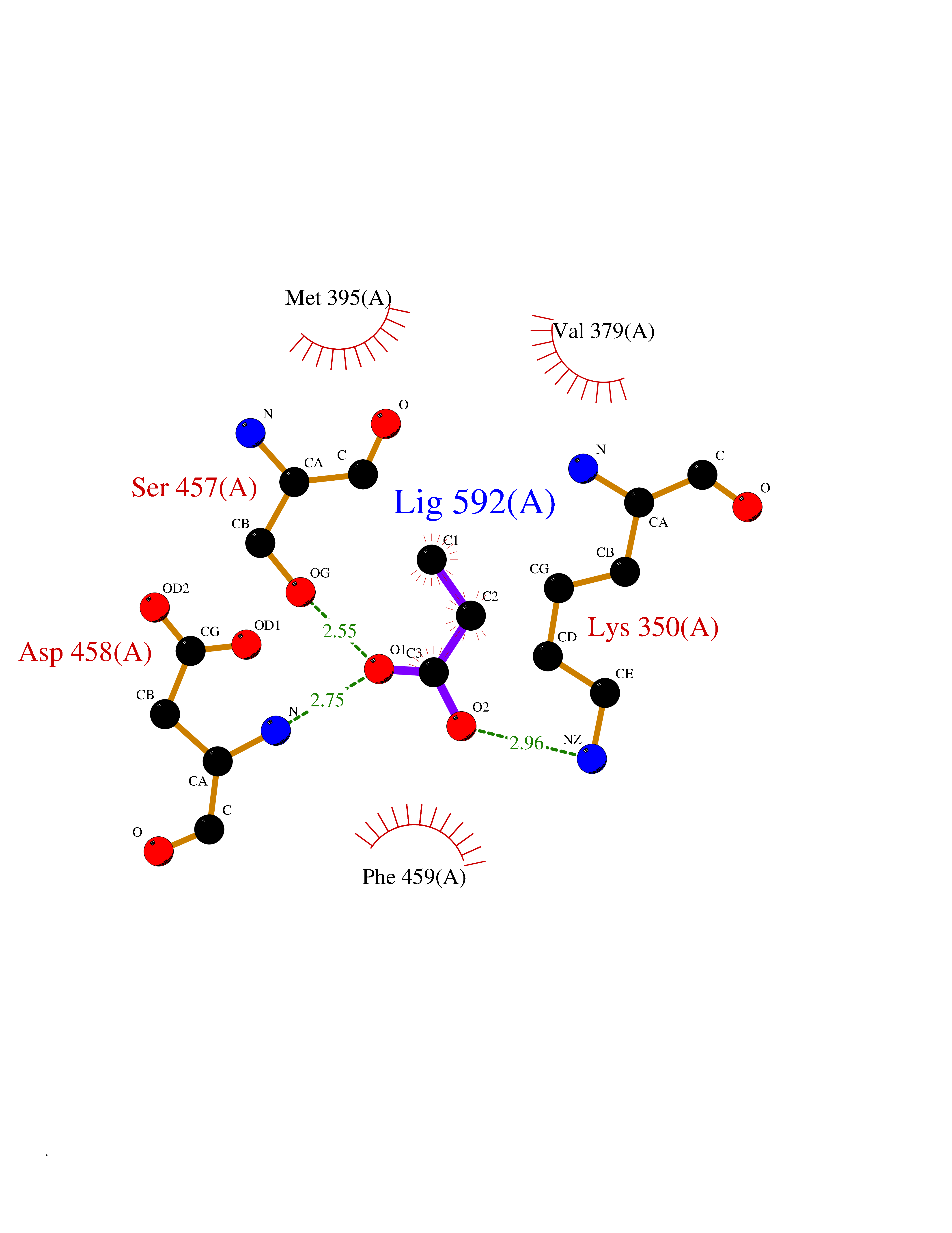 Target general information Gen name ACACA Organism Homo sapiens (Human) Uniprot ID TTD ID NA Synonyms ACAC;ACCA;ACC1 Protein family NA Biochemical class Ligase Function Acetyl-CoA carboxylase activity.ATP binding.Biotin carboxylase activity.Identical protein binding.Metal ion binding. Related diseases Acetyl-CoA carboxylase-alpha deficiency (ACACAD) [MIM:613933]: An autosomal recessive inborn error of de novo fatty acid synthesis associated with severe brain damage, persistent myopathy and poor growth. {ECO:0000269|PubMed:6114432}. The disease is caused by variants affecting the gene represented in this entry. Drugs (DrugBank ID) DB00121 Interacts with Q13085; O60218; P38398; Q96EB6; Q9CQ20; P02654; Q92915-2; Q6NTF9-3 EC number 6.4.1.2 Uniprot keywords 3D-structure; Acetylation; Allosteric enzyme; Alternative promoter usage; ATP-binding; Biotin; Cytoplasm; Direct protein sequencing; Fatty acid biosynthesis; Fatty acid metabolism; Ligase; Lipid biosynthesis; Lipid metabolism; Magnesium; Manganese; Metal-binding; Multifunctional enzyme; Nucleotide-binding; Phosphoprotein; Proteomics identification; Reference proteome Protein physicochemical properties Chain ID A,B Molecular weight (Da) 54237.7 Length 486 Aromaticity 0.09 Instability index 39.18 Isoelectric point 6.37 Charge (pH=7) -2.46 3D Binding mode Sequence VASPAEFVTRFGGNKVIEKVLIANNGIAAVKCMRSIRRWSYEMFRNERAIRFVVMVTPEDLKANAEYIKMADHYVPVPGGPNNNNYANVELILDIAKRIPVQAVWAGWGHASENPKLPELLLKNGIAFMGPPSQAMWALGDKIASSIVAQTAGIPTLPWSGSGLRVDWSKRILNVPQELYEKGYVKDVDDGLQAAEEVGYPVMIKASEGGGGKGIRKVNNADDFPNLFRQVQAEVPGSPIFVMRLAKQSRHLEVQILADQYGNAISLFGRDCSVQRRHQKIIEEAPATIATPAVFEHMEQCAVKLAKMVGYVSAGTVEYLYSQDGSFYFLELNPRLQVEHPCTEMVADVNLPAAQLQIAMGIPLYRIKDIRMMYGVSPWGDSPIDFEDSAHVPCPRGHVIAARITGTVQELNFRSNKNVWGYFSVQFGHCFSWGENREEAISNMVVALKELSIRGDFRTTVEYLIKLLETESFQMNRIDTGWLDRL Hydrogen bonds contact Hydrophobic contact | ||||