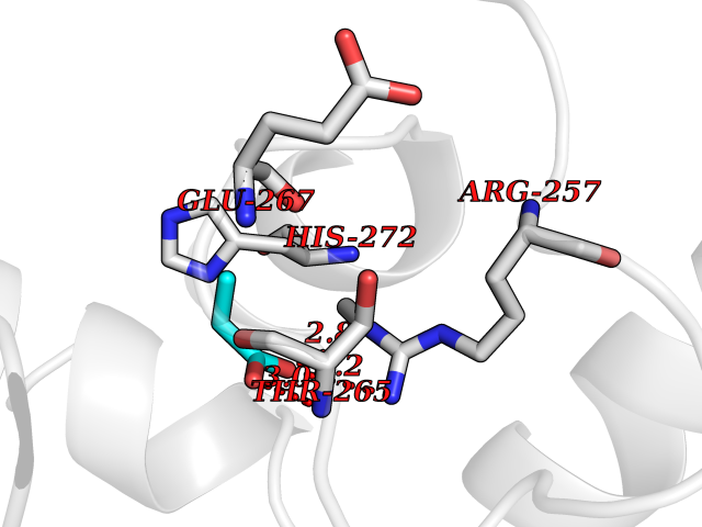 Target general information Gen name TPH1 Organism Homo sapiens (Human) Uniprot ID TTD ID Synonyms Tryptophan 5-monooxygenase 1; TRPH; TPRH Protein family Biopterin-dependent aromatic amino acid hydroxylase family Biochemical class Paired donor oxygen oxidoreductase Function Responsible for addition of the -HO group (hydroxylation) to the 5 position to form the amino acid 5-hydroxytryptophan (5-HTP), which is the initial and rate-limiting step in the synthesis of the neurotransmitter serotonin. Related diseases Tyrosinemia 2 (TYRSN2) [MIM:276600]: An inborn error of metabolism characterized by elevations of tyrosine in the blood and urine, and oculocutaneous manifestations. Typical features include palmoplantar keratosis, painful corneal ulcers, and intellectual disability. {ECO:0000269|PubMed:1357662}. The disease is caused by variants affecting the gene represented in this entry. Drugs (DrugBank ID) DB05199; DB00360; DB12095; DB00150 Interacts with Q14457; Q96IK1-2; Q9UKB3; Q9H8Y8; O43586; O95789-4 EC number EC 1.14.16.4 Uniprot keywords 3D-structure; Alternative splicing; Iron; Metal-binding; Monooxygenase; Oxidoreductase; Phosphoprotein; Proteomics identification; Reference proteome; Serotonin biosynthesis; Ubl conjugation Protein physicochemical properties Chain ID A Molecular weight (Da) 31138.2 Length 271 Aromaticity 0.13 Instability index 43.43 Isoelectric point 6.73 Charge (pH=7) -0.86 3D Binding mode Sequence TVPWFPKKISDLDHCNVYRKRRKYFADLAMNYKHGDPIPKVEFTEEEIKTWGTVFQELNKLYPTHACREYLKNLPLLSKYCGYREDNIPQLEDVSNFLKERTGFSIRPVAGYLSPRDFLSGLAFRVFHCTQYVRHSSDPFYTPEPDTCHELLGHVPLLAEPSFAQFSQEIGLASLGASEEAVQKLATCYFFTVEFGLCKQDGQLRVFGAGLLSSISELKHALSGHAKVKPFDPKITCKQECLITTFQDVYFVSESFEDAKEKMREFTKTIK Hydrogen bonds contact Hydrophobic contact | ||||