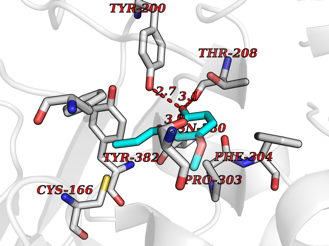 Target general information Gen name CYP2B6 Organism Homo sapiens (Human) Uniprot ID TTD ID Synonyms Cytochrome P450 IIB1; CYPIIB6; 1,4-cineole 2-exo-monooxygenase Protein family Cytochrome P450 family Biochemical class Paired donor oxygen oxidoreductase Function In liver microsomes, this enzyme is involved in an NADPH-dependent electron transport pathway. It oxidizes a variety of structurally unrelated compounds, including steroids, fatty acids, and xenobiotics. Acts as a 1,4-cineole 2-exo-monooxygenase. Cytochromes P450 are a group of heme-thiolate monooxygenases. Related diseases Aromatic L-amino-acid decarboxylase deficiency (AADCD) [MIM:608643]: An inborn error in neurotransmitter metabolism that leads to combined serotonin and catecholamine deficiency. It causes developmental and psychomotor delay, poor feeding, lethargy, ptosis, intermittent hypothermia, gastrointestinal disturbances. The onset is early in infancy and inheritance is autosomal recessive. {ECO:0000269|PubMed:14991824, ECO:0000269|PubMed:15079002, ECO:0000269|Ref.12}. The disease is caused by variants affecting the gene represented in this entry. Drugs (DrugBank ID) DB08369; DB02974; DB11932; DB12001; DB14973; DB15568; DB00321; DB00381; DB00701; DB01435; DB00714; DB06413; DB06697; DB13132; DB11586; DB01076; DB15011; DB00972; DB08822; DB13997; DB04975; DB01086; DB00865; DB00443; DB04794; DB12151; DB01194; DB05541; DB01222; DB01156; DB09061; DB14737; DB00564; DB06119; DB00439; DB00568; DB00604; DB00515; DB12499; DB00349; DB06470; DB00758; DB01559; DB00257; DB01394; DB05219; DB08865; DB11672; DB14635; DB04664; DB00531; DB08912; DB01151; DB16650; DB01234; DB14649; DB04856; DB00514; DB00829; DB00586; DB01184; DB00997; DB00470; DB00476; DB00625; DB15444; DB13874; DB11718; DB08899; DB00751; DB11823; DB00655; DB00898; DB01466; DB00574; DB12265; DB01544; DB00472; DB01095; DB00176; DB01320; DB05087; DB00986; DB01159; DB00956; DB00741; DB09054; DB01181; DB00458; DB00762; DB11633; DB06636; DB00753; DB11757; DB01167; DB14568; DB09570; DB01221; DB06738; DB01026; DB11951; DB09078; DB12070; DB05667; DB00281; DB00836; DB01601; DB00455; DB04871; DB12130; DB09280; DB00772; DB09238; DB14921; DB14009; DB01043; DB00170; DB00454; DB00532; DB04817; DB00333; DB00763; DB01028; DB09241; DB00849; DB00959; DB06710; DB00379; DB06148; DB01110; DB06595; DB16236; DB00745; DB11763; DB00220; DB00238; DB00622; DB00184; DB01115; DB04868; DB12005; DB00435; DB00957; DB09074; DB16267; DB11632; DB01173; DB11837; DB04938; DB05467; DB00715; DB08883; DB01074; DB04930; DB12978; DB03575; DB01174; DB00252; DB13941; DB17472; DB11642; DB06209; DB14631; DB00635; DB01069; DB00818; DB00908; DB00481; DB08896; DB11853; DB16826; DB02709; DB00615; DB01045; DB11753; DB01201; DB08864; DB00503; DB06176; DB00296; DB00412; DB00778; DB01037; DB06739; DB01104; DB01236; DB00641; DB00398; DB15569; DB12548; DB09118; DB06729; DB01138; DB00675; DB12020; DB12095; DB00231; DB00624; DB13943; DB13944; DB13946; DB11712; DB01041; DB09499; DB04572; DB08816; DB00208; DB06137; DB00193; DB00755; DB12245; DB12808; DB00197; DB12255; DB00313; DB11613; DB08881; DB00661; DB09185; DB11739; DB00582; DB09068; DB14975; DB15035 Interacts with NA EC number EC 1.14.13.- Uniprot keywords 3D-structure; Alternative splicing; Endoplasmic reticulum; Heme; Iron; Lipid metabolism; Membrane; Metal-binding; Microsome; Monooxygenase; NADP; Oxidoreductase; Phosphoprotein; Proteomics identification; Reference proteome Protein physicochemical properties Chain ID A Molecular weight (Da) 53293 Length 465 Aromaticity 0.12 Instability index 38.79 Isoelectric point 8.63 Charge (pH=7) 5.35 3D Binding mode Sequence GKLPPGPRPLPLLGNLLQMDRRGLLKSFLRFREKYGDVFTVHLGPRPVVMLCGVEAIREALVDKAEAFSGRGKIAMVDPFFRGYGVIFANGNRWKVLRRFSVTTMRDFGMGKRSVEERIQEEAQCLIEELRKSKGALMDPTFLFQSITANIICSIVFGKRFHYQDQEFLKMLNLFYQTFSLISSVFGQLFELFSGFLKHFPGAHRQVYKNLQEINAYIGHSVEKHRETLDPSAPRDLIDTYLLHMEKEKSNAHSEFSHQNLNLNTLSLFFAGTETTSTTLRYGFLLMLKYPHVAERVYREIEQVIGPHRPPELHDRAKMPYTEAVIYEIQRFSDLLPMGVPHIVTQHTSFRGYIIPKDTEVFLILSTALHDPHYFEKPDAFNPDHFLDANGALKKTEAFIPFSLGKRICLGEGIARAELFLFFTTILQNFSMASPVAPEDIDLTPQECGVGKIPPTYQIRFLPRH Hydrogen bonds contact Hydrophobic contact | ||||